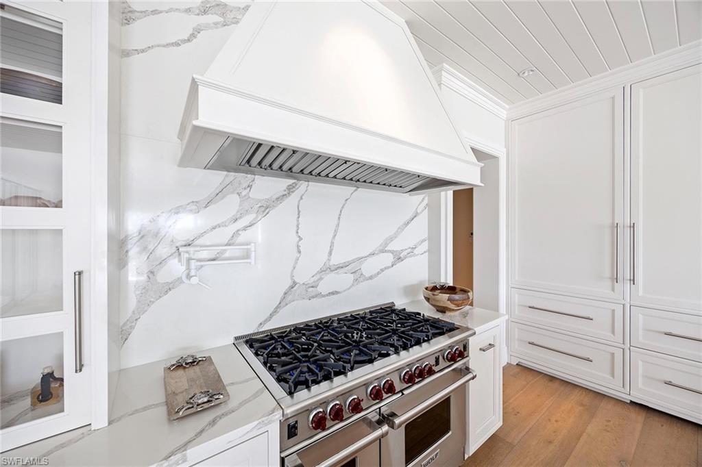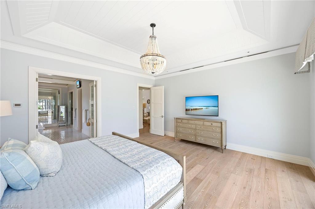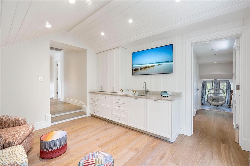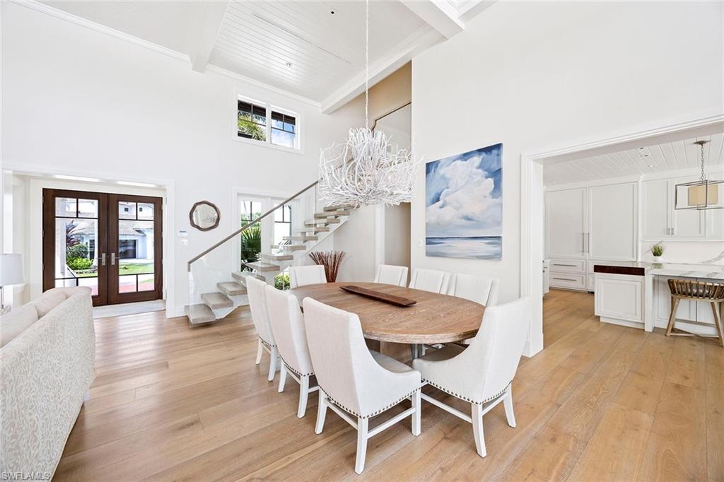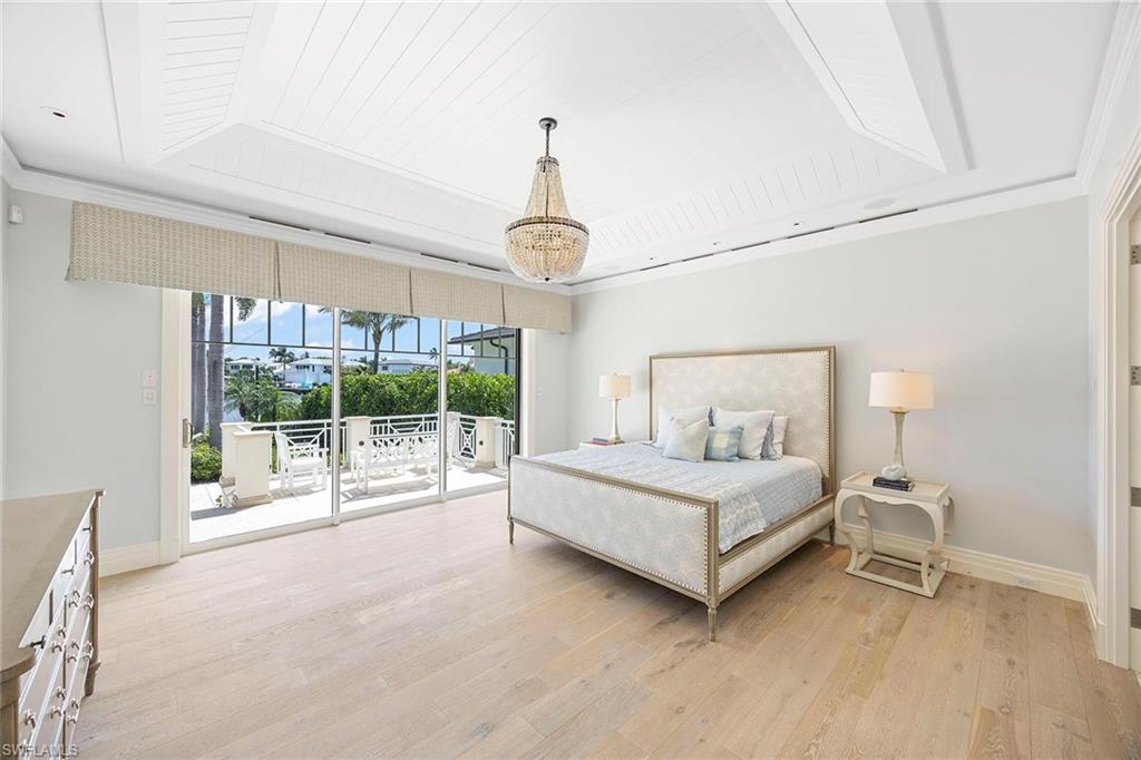 Blending timeless West Indies charm with modern luxury, this exquisitely reimagined Aqualane Shores residence was updated in 2021 by Kurtz Homes with Stofft Cooney Architects. A thoughtfully designed second-floor addition introduces two spacious guest suites and a custom eight-bed bunk room, ideal for family and friends. Set on a lush lot with serene long-water views across Aqua Cove’s deepwater basin, the home offers a rare combination of privacy and direct Gulf access. The main level features a light-filled open layout, a grand great room and study. Finishes include wide-plank oak floors, tongue-and-groove ceilings and custom millwork. The kitchen boasts a large island, quartz countertops, a Wolf eight-burner gas range, dual dishwashers and handcrafted cabinetry. Impact-rated Nano doors open to a refinished marble pool deck. An IPE wood deck with floating dock and platform lift completes this waterfront retreat. For peace of mind, the home includes a generator. Just across from 21st Avenue beach access and moments from 3rd Street S, this residence defines Naples waterfront living.