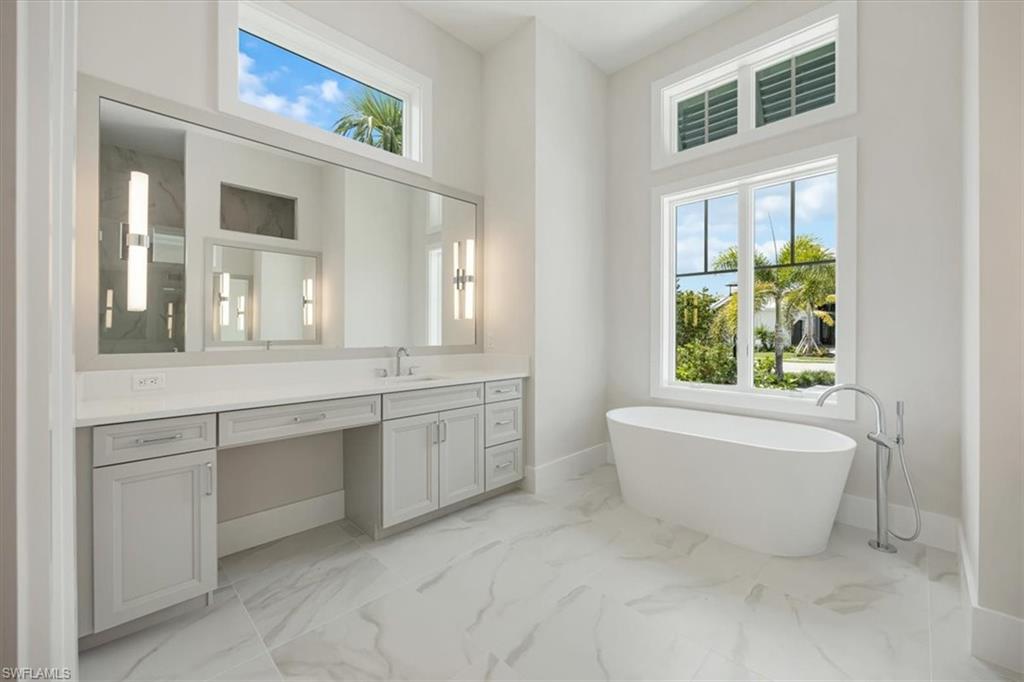 **This is a pre-construction purchase agreement for the construction of a customized 3-car garage Bay plan in Coconut Landing. Coconut Landing is 75% Sold with Pre-construction & Move-in ready options still available!** // WEST OF US-41, ELEVATED to "X" FLOOD ZONE! // Welcome to Coconut Landing, a new construction community west of US41 in Estero. This community consists of just 25 coastal contemporary single family homes, each with standing seam metal roofing, impact windows & doors throughout, and in the X flood zone! 4566 Seagrove Landing Way will be a customized 3-car garage Bay plan featuring 12' ceilings throughout the main living areas, office, and primary suite (14' vaulted great room ceiling), 10' pocket sliders, walk-in pantry, and an open concept main living area leading to a light and bright office, powder bath, two en-suite guest suites, and a generous primary suite. Material features will include Pompeii quartz countertops, Legno Bastone La Famiglia engineered white oak floors, SKS Natural gas appliance suite with 42" refrigerator, and custom tile and cabinet selections. Outside, the shellstone pool deck and large covered living area lead to the outdoor covered living with outdoor fireplace and spacious seating area overlooking the heated salt swimming pool and spa surrounded by a landscaped back and side yard for privacy and relaxation. The outdoor kitchen will feature a 36" natural gas Coyote grill with SS Kraus sink & Franke faucet // AMENITIES & MEMBERSHIP: The following amenities listed are at the Hyatt Regency Coconut Point and Spa approximately 1/4 mile from Coconut Landing: lap pool, adult pool, lazy river, restaurants, fitness, spa, sauna. Coconut Landing residents enjoy a free one year membership to the Regency Hyatt Coconut Point Resort and Spa, with the option to renew thereafter (no obligation; membership is $8,500/year for up to 5 household members; see supplements, subject to change). This membership does not include access to the private Pelican Landing beach park. HOA DUES of $2,166/quarter include common area landscape, fenced pet play area, high speed 980mbps CenturyLink (Quantum) internet, keypad gated community entry, street lighting PLUS weekly cleaning and chemical balance of homeowner swimming pool and spa, weekly homeowner landscape maintenance, lawn irrigation, exterior landscape pest control.