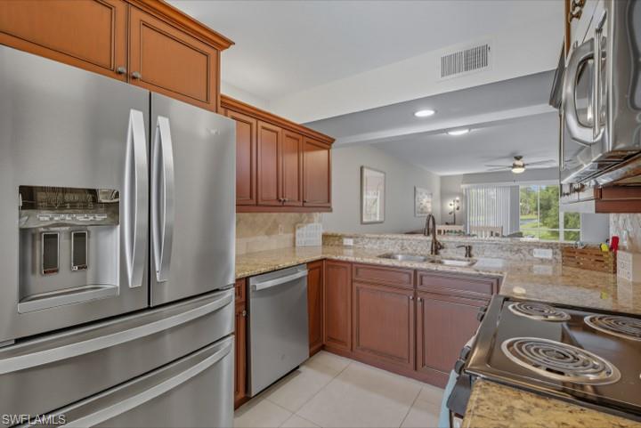 Welcome home to this first-floor end unit condo in the sought-after community of Sherwood, Naples. From the moment you walk in, you’re greeted by an expansive long lake view—one of the most beautiful in the neighborhood. Whether you’re enjoying your morning coffee while bird watching or winding down on your screened lanai as the sun sets over the water, this home was designed to bring the outdoors in. The interior is bright and open, with extra windows only an end unit can offer. The two-bedroom plus den floor plan provides flexibility, with French glass doors making the den perfect for a home office, guest space, or third bedroom. The updated kitchen is a central gathering place, featuring wood cabinetry with crown trim, granite countertops, stainless steel appliances, and a tumbled stone backsplash. It opens to the living and dining areas, creating a seamless flow for entertaining. Tile floors run throughout the home, with no carpet, and updated details give the condo a refreshed, move-in-ready feel. Both bathrooms have been beautifully renovated with granite counters and modern finishes. The primary suite offers a walk-in closet, plantation shutters, dual sinks, and a frameless glass shower. A custom laundry area with extra storage, along with a one-car garage and attic space, provide everyday convenience. Set on a quiet street, Sherwood offers resort-style amenities including two community pools, a fitness center, tennis, and pickleball. The location is just as appealing, with quick access to I-75, downtown Naples, world-class dining and shopping, pristine Gulf beaches, and attractions like the Paradise Coast Sports Complex and Great Wolf Lodge. This condo is being sold unfurnished and meticulously maintained, offering a rare opportunity to enjoy a move-in-ready home with one of the best views in the community.
