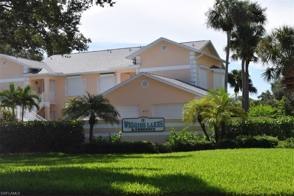 Seller Financing offered. No water intrusion into condo living space from Hurricane Ian. Welcome to your dream home in the vibrant Wiggins Lakes & Preserves community of North Naples! Perfectly located just west of US 41, this stunning coach home puts you only minutes away from exquisite beaches, lush parks, and a diverse array of dining and shopping options, ensuring the best of coastal living at your fingertips. Step inside this meticulously renovated ground-floor unit, and you’ll be immediately captivated by the serene lakefront views, where gentle fountain sounds create a peaceful ambiance. The screened and glassed rear lanai, complete with electric blinds, offers an idyllic space to relax and enjoy the beautiful surroundings year-round. The bright and airy interior showcases high-quality finishes and exceptional attention to detail throughout. Culinary enthusiasts will love the updated kitchen, which features luxurious quartzite countertops, sleek new wood cabinetry, an efficient Bosch dishwasher, and premium stainless steel GE Profile appliances. It’s a functional space that invites both creativity and comfort. Throughout the home, enjoy the elegance of hardwood flooring, classic crown molding, and beautifully remodeled bathrooms, including the spa-like primary bath with a dual-sink vanity and a stunning frameless glass shower. This lovely residence also comes equipped with modern conveniences, including a new A/C system (2022), water heater (2020), impact-resistant windows, and a one-car garage for added ease. To top it off, it’s being offered turnkey furnished, making your transition effortless and stress-free. No water into living space from any hurricane. As a resident, indulge in fantastic community amenities, including a welcoming clubhouse, tennis and pickleball courts, and two sparkling pools perfect for relaxation and socializing. Plus, don’t miss the chance to elevate your lifestyle with an optional membership at the nearby Tarpon Cove Yacht Club, providing access to additional recreational activities and social events. This exceptional home is a rare find—embrace the North Naples lifestyle you’ve always dreamed of!