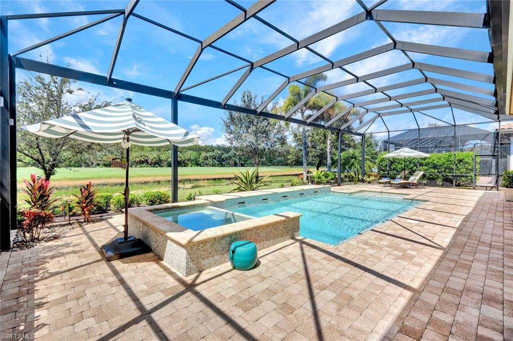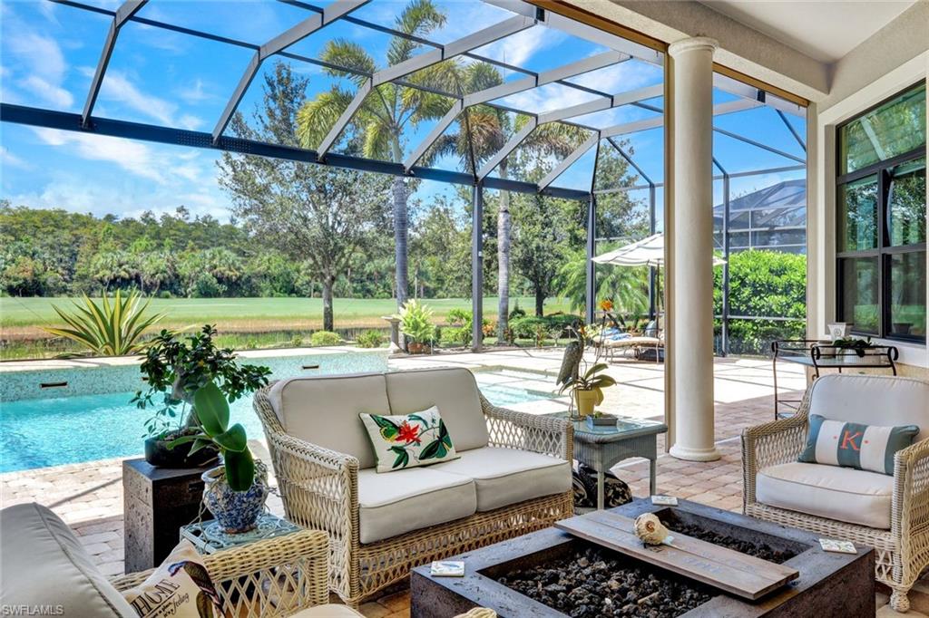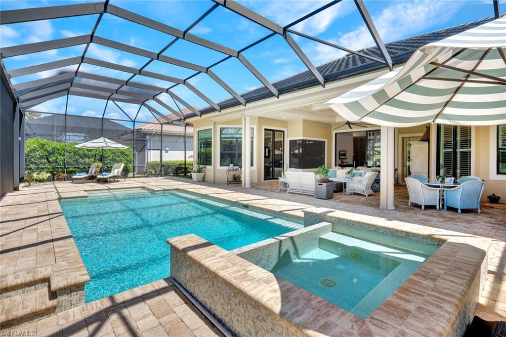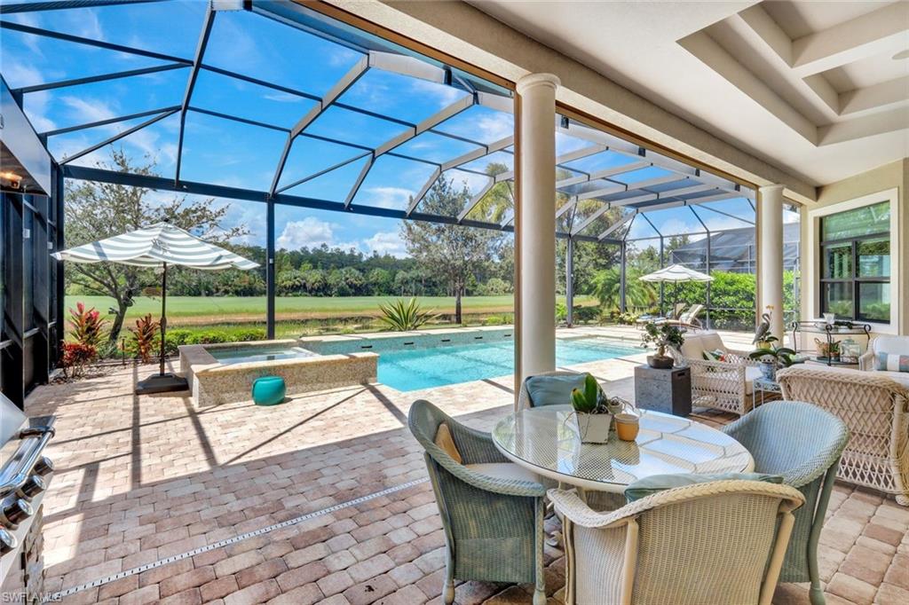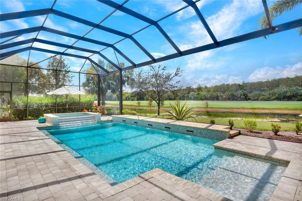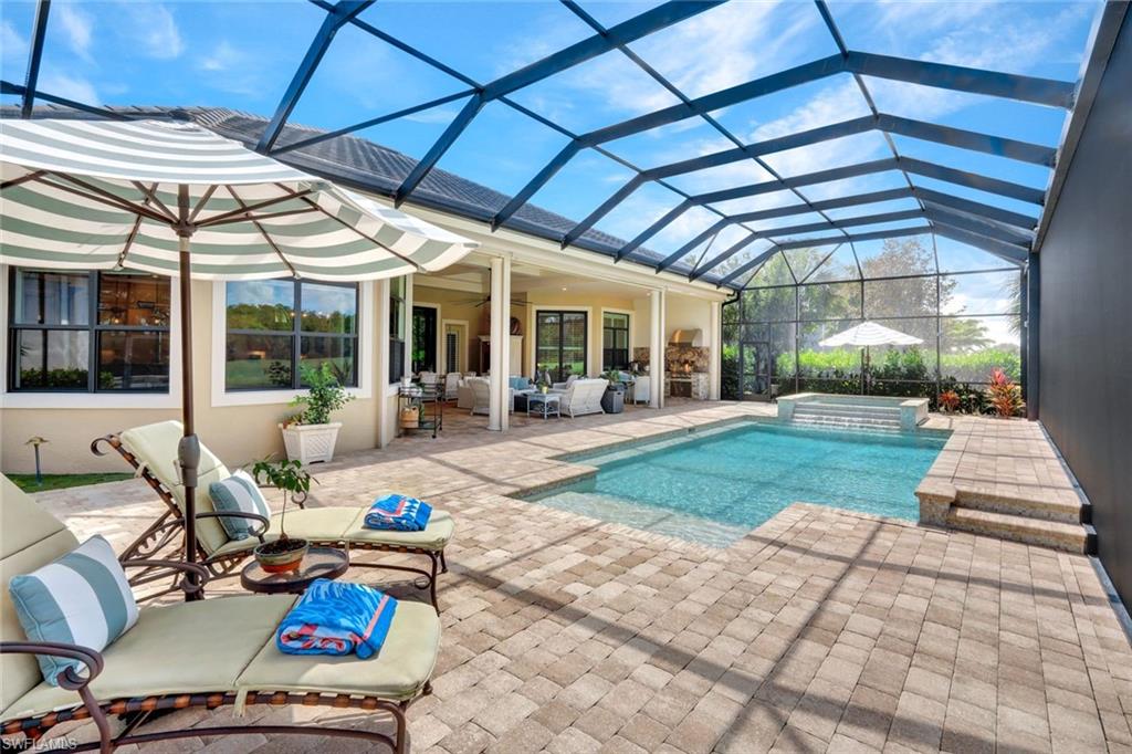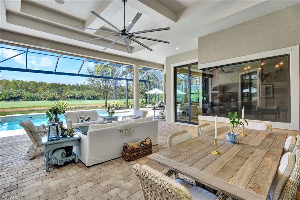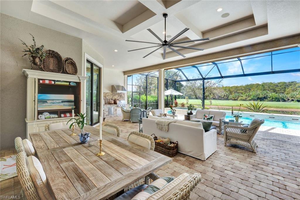 Immediate GOLF! Experience the perfect blend of elegance and comfort in this exceptional three-bedroom, four-bathroom residence with den, living and family rooms, and a thoughtfully designed gourmet kitchen with quartzite counters, Top Zero sink, Bosch appliances, and a spacious breakfast nook. Soaring 14-foot ceilings, impact glass windows and doors, crown molding, plantation shutters, and custom cabinetry showcase timeless craftsmanship. Each bathroom is beautifully upgraded with premium vanities, quartzite finishes, and sleek shower enclosures. The expansive lanai offers a private outdoor oasis with a sparkling pool and spa, complete with a 24-inch raised wall with scuppers, sun shelf, extended bench, picture window screening, upgraded lighting, and a new spa pump. The enlarged outdoor kitchen is fully equipped for entertaining, featuring a 2025 refrigerator, upgraded countertops and with unobstructed lake and golf course views.Additional highlights include a laundry room, insulated and air-conditioned 3car garage with remote-controlled ceiling storage. Every detail has been meticulously upgraded to deliver refined living at its best.all of this Plus a GOLF MEMBERSHIP! Twin Eagles offers 36 holes of championship Golf, tennis, Pickleball, bocce, Tiki bar, and a state of the art fitness center. You won’t be disappointed!