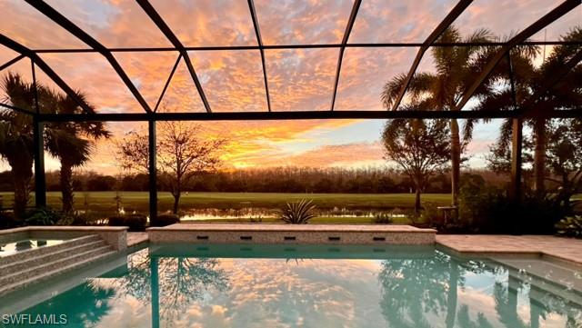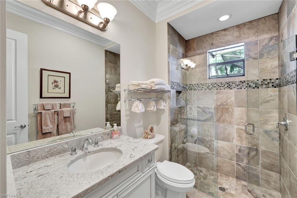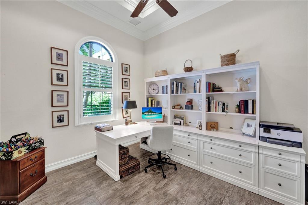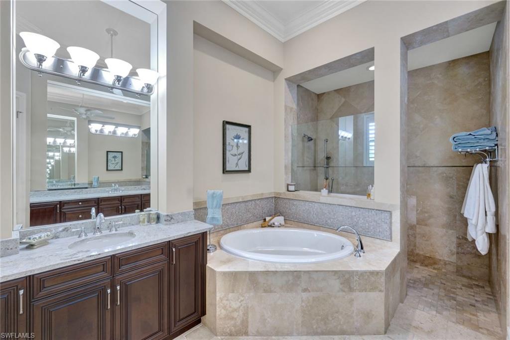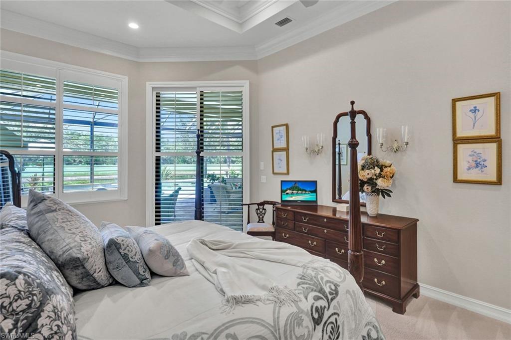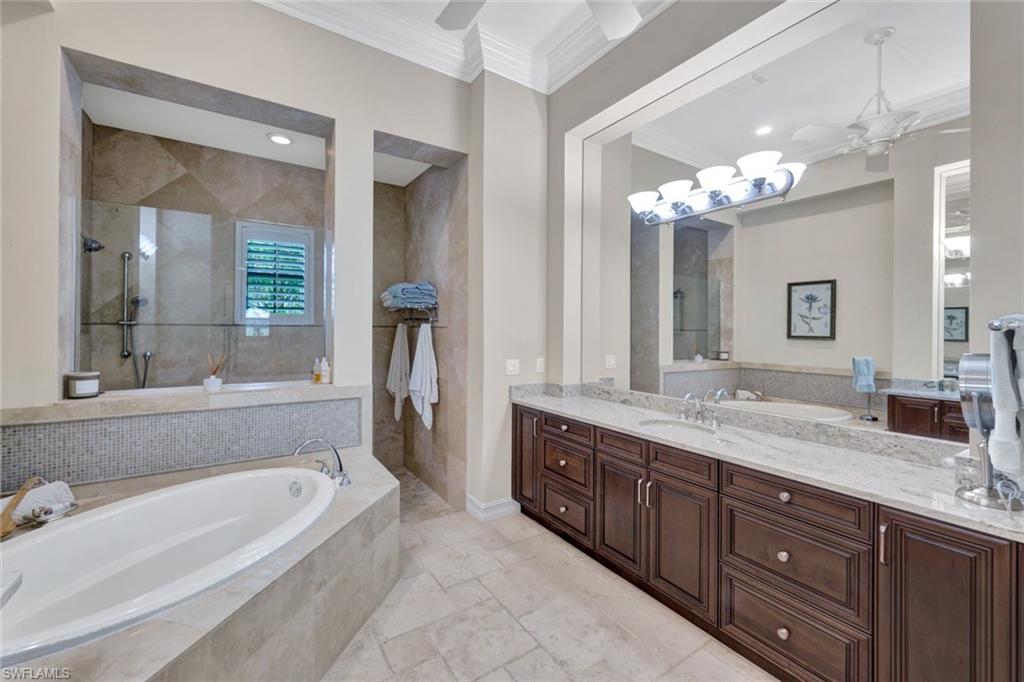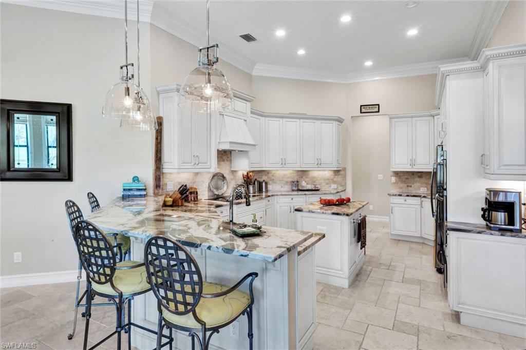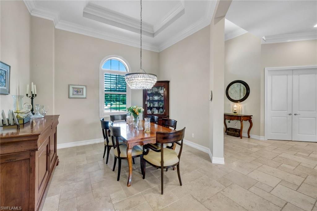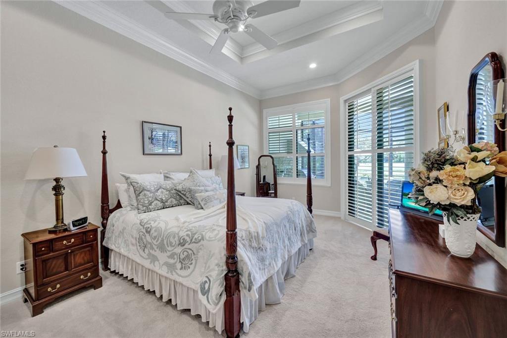Immediate GOLF! Experience the perfect blend of elegance and comfort in this exceptional three-bedroom, four-bathroom residence with den, living and family rooms, and a thoughtfully designed gourmet kitchen with quartzite counters, Top Zero sink, Bosch appliances, and a spacious breakfast nook. Soaring 14-foot ceilings, impact glass windows and doors, crown molding, plantation shutters, and custom cabinetry showcase timeless craftsmanship. Each bathroom is beautifully upgraded with premium vanities, quartzite finishes, and sleek shower enclosures. The expansive lanai offers a private outdoor oasis with a sparkling pool and spa, complete with a 24-inch raised wall with scuppers, sun shelf, extended bench, picture window screening, upgraded lighting, and a new spa pump. The enlarged outdoor kitchen is fully equipped for entertaining, featuring a 2025 refrigerator, upgraded countertops and with unobstructed lake and golf course views.Additional highlights include a laundry room, insulated and air-conditioned 3car garage with remote-controlled ceiling storage. Every detail has been meticulously upgraded to deliver refined living at its best.all of this Plus a GOLF MEMBERSHIP! Twin Eagles offers 36 holes of championship Golf, tennis, Pickleball, bocce, Tiki bar, and a state of the art fitness center. You won’t be disappointed!