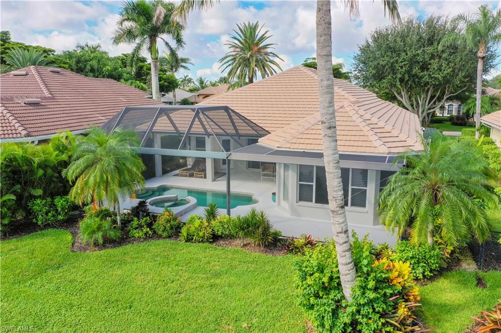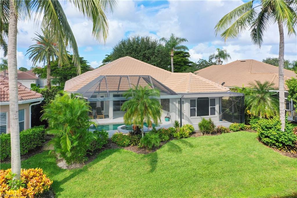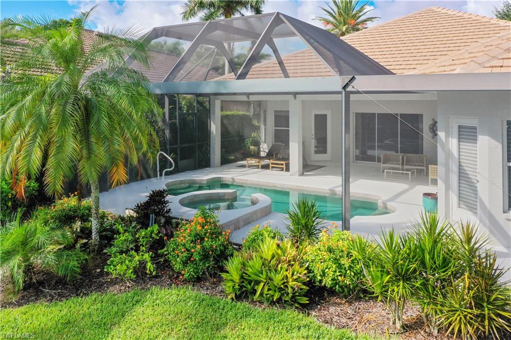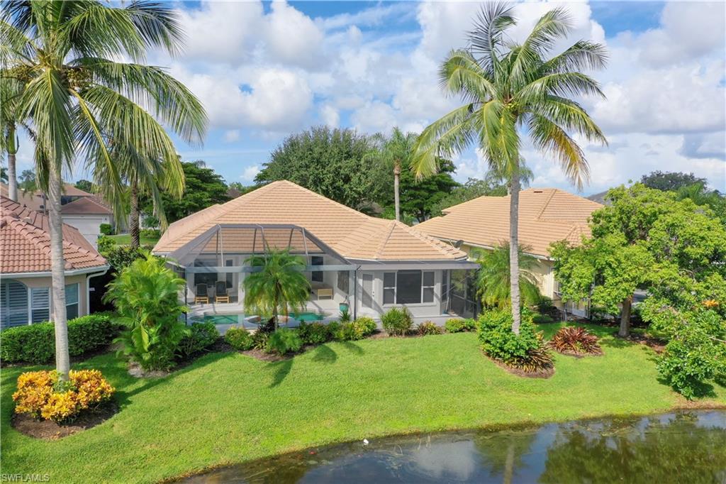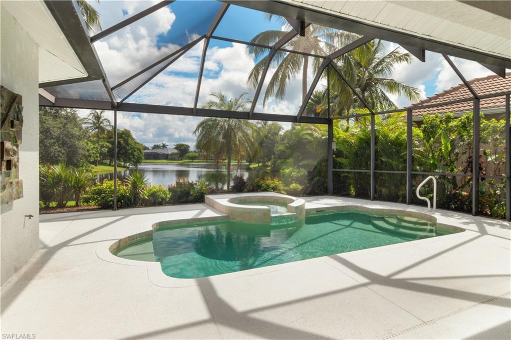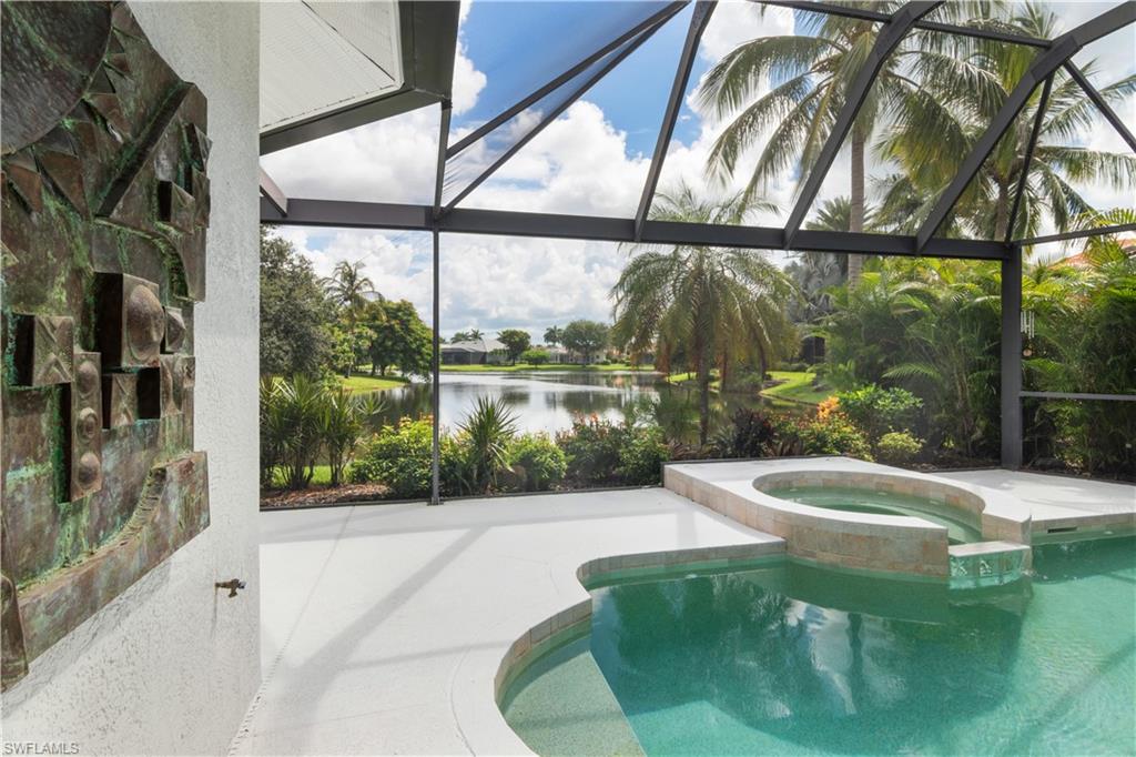Discover this stunning luxury home, boasting some of the most captivating water views in the highly sought-after Chatham Pointe enclave of Tiger Island Estates at Lely Resort. Nestled among towering banyan trees, this hidden gem features three bedrooms and two baths. Nearly every room offers breathtaking panoramic lake vistas, creating a serene and picturesque setting. The spacious, open floor plan is perfect for entertaining and comfortable living, while the thoughtful split-bedroom design provides privacy—the front two bedrooms and bath are ideal for guests, leaving the luxurious master suite to enjoy stunning lake and sunrise views. The master suite features direct access to the rear lanai and pool, a walk-in closet, and a lavish bathroom with a large walk-in tile shower with double shower heads. The gourmet kitchen is equipped with newer stainless steel appliances and ample cabinetry, making it a chef’s dream. Step outside to the expansive lanai with a pool and spa—an entertainer’s paradise and the ideal spot to relax, watch the sunrise, or host evening gatherings while soaking in some of the best lake views in Lely Resort. Recent updates include a roof (2019), A/C unit (2020), Front Door (2022), pool cage (2019), exterior paint (2024), and interior paint (2024). Conveniently located just minutes from Marco Island’s pristine beaches, Naples’ premier shopping and dining on Fifth Avenue, and endless outdoor activities. Lely Resort elevates luxury living with optional membership to the Players Club and Spa, offering three resort-style pools, a state-of-the-art gym, Har-Tru tennis courts, pickleball, bocce, and multiple dining options, including a Tiki Bar & Grill. Golf enthusiasts will also enjoy three championship courses right within the community.