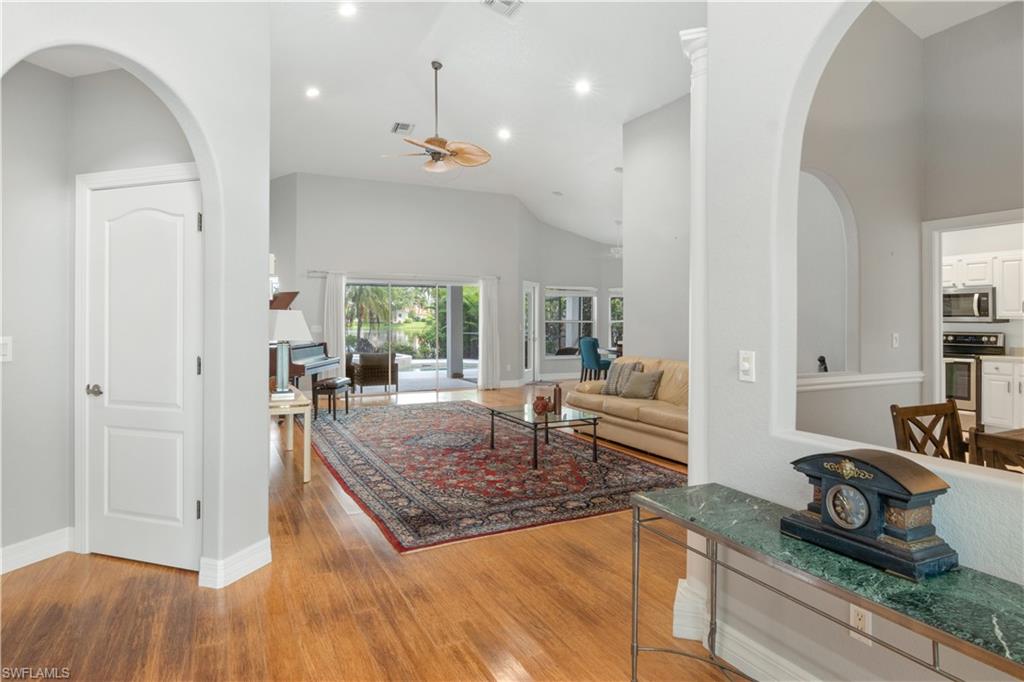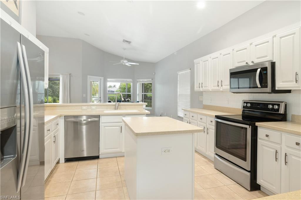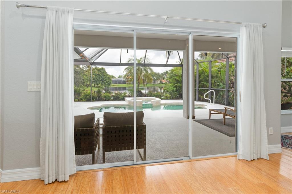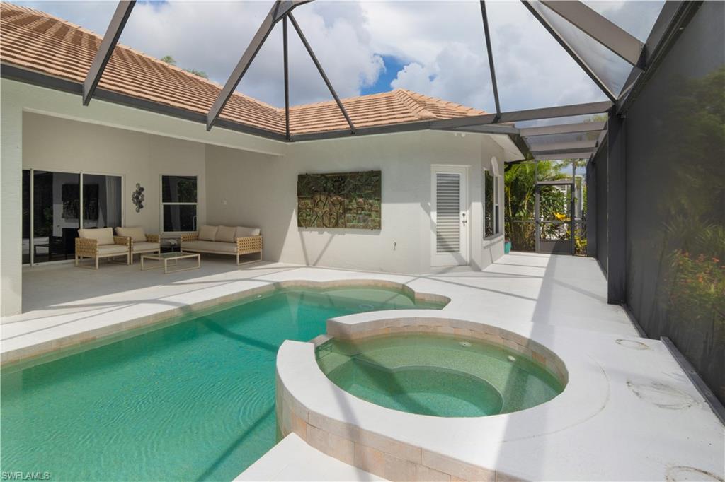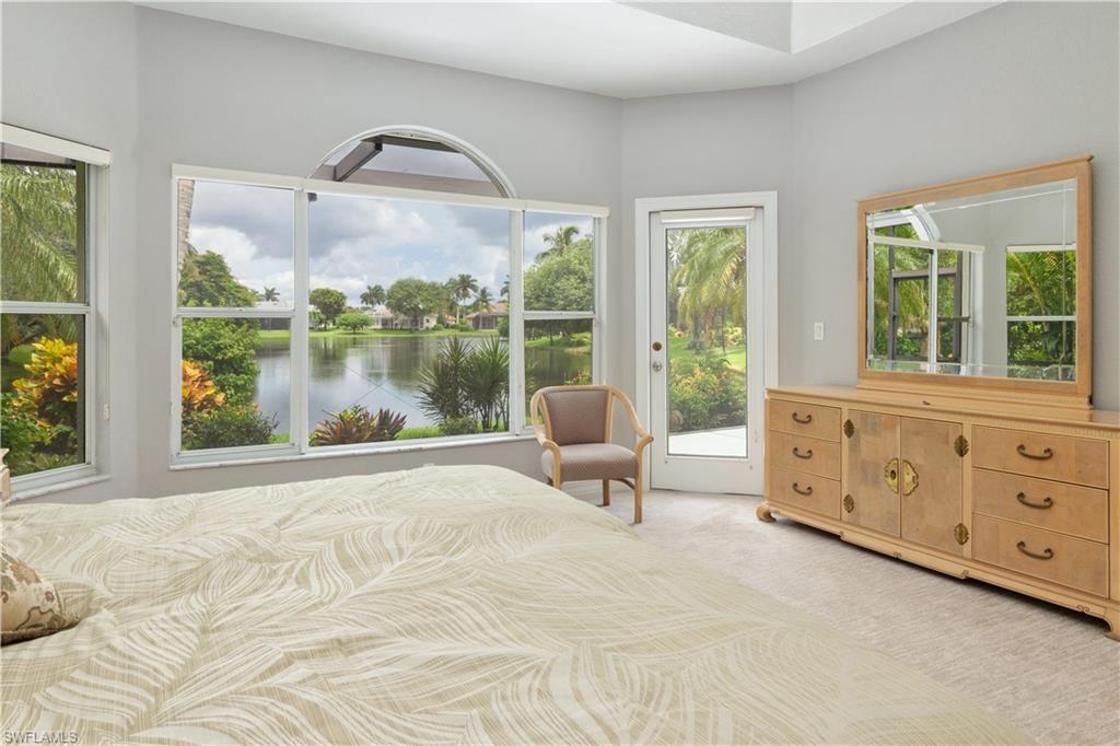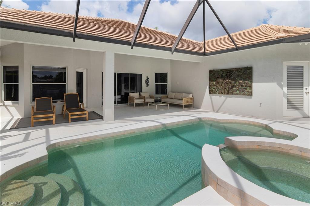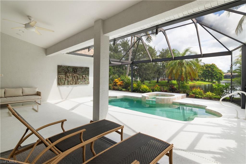 Discover this stunning luxury home, boasting some of the most captivating water views in the highly sought-after Chatham Pointe enclave of Tiger Island Estates at Lely Resort. Nestled among towering banyan trees, this hidden gem features three bedrooms and two baths. Nearly every room offers breathtaking panoramic lake vistas, creating a serene and picturesque setting. The spacious, open floor plan is perfect for entertaining and comfortable living, while the thoughtful split-bedroom design provides privacy—the front two bedrooms and bath are ideal for guests, leaving the luxurious master suite to enjoy stunning lake and sunrise views. The master suite features direct access to the rear lanai and pool, a walk-in closet, and a lavish bathroom with a large walk-in tile shower with double shower heads. The gourmet kitchen is equipped with newer stainless steel appliances and ample cabinetry, making it a chef’s dream. Step outside to the expansive lanai with a pool and spa—an entertainer’s paradise and the ideal spot to relax, watch the sunrise, or host evening gatherings while soaking in some of the best lake views in Lely Resort. Recent updates include a roof (2019), A/C unit (2020), Front Door (2022), pool cage (2019), exterior paint (2024), and interior paint (2024). Conveniently located just minutes from Marco Island’s pristine beaches, Naples’ premier shopping and dining on Fifth Avenue, and endless outdoor activities. Lely Resort elevates luxury living with optional membership to the Players Club and Spa, offering three resort-style pools, a state-of-the-art gym, Har-Tru tennis courts, pickleball, bocce, and multiple dining options, including a Tiki Bar & Grill. Golf enthusiasts will also enjoy three championship courses right within the community.