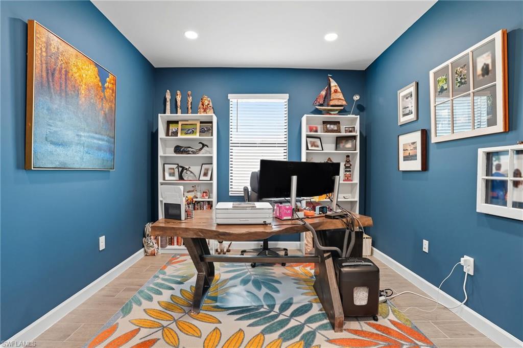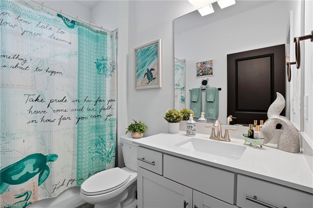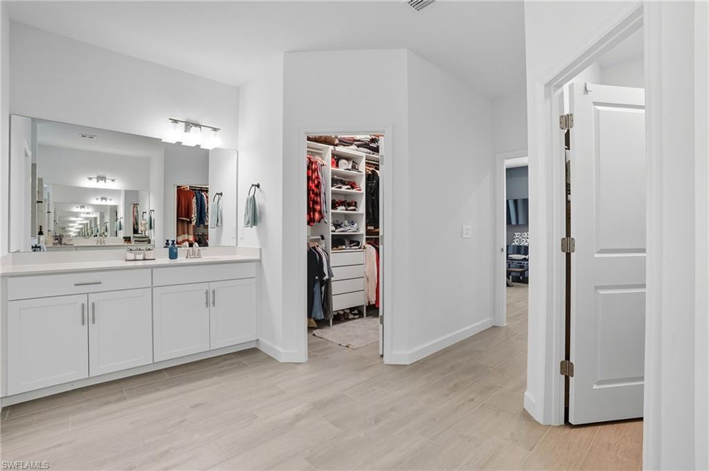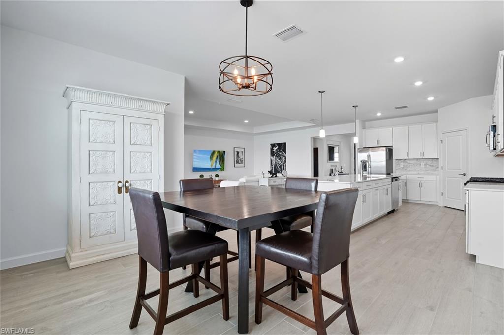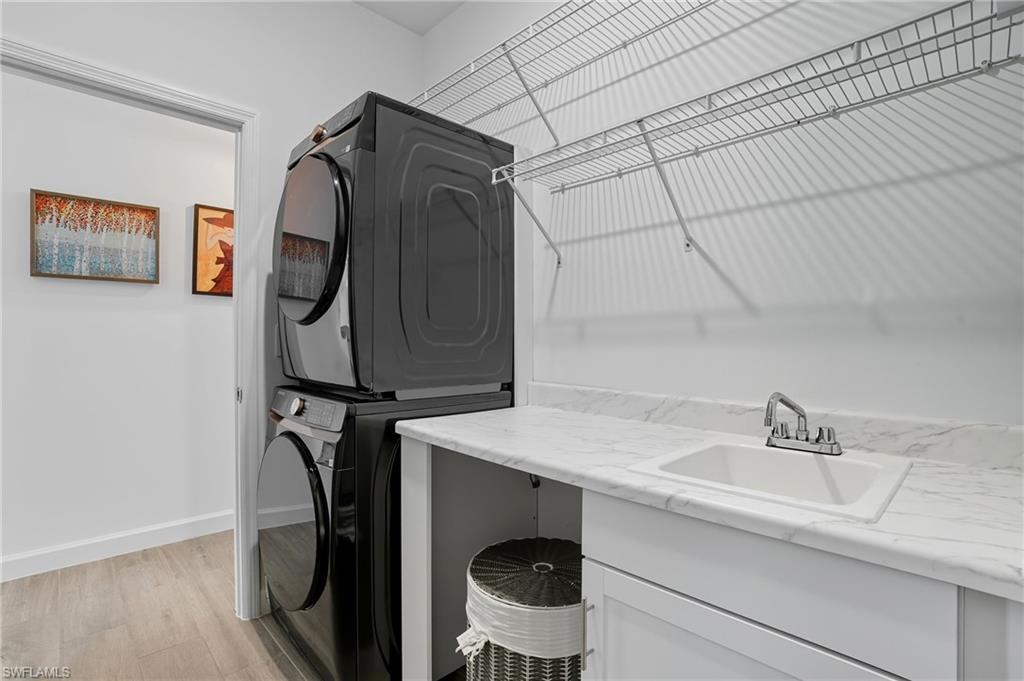 Stunning lakefront Summerville floor plan in Verdana Village featuring 3 bedrooms plus den, 3 full bathrooms, and a spacious 3-car garage. This open-concept home welcomes you with elegant double glass door entry and offers breathtaking western sunset views over one of the largest lakes in the community. Inside, you'll find thoughtful upgrades throughout, including a full gutter system around the entire roof, sealed driveway and lanai with two coats of paver seal, and custom built-in shelving in the primary closets. The laundry room is fully upgraded with a Samsung stacked washer and dryer, utility sink, countertop, and added shelving for storage. Recessed lighting with dimmer switches enhances the ambiance in all bedrooms and the living room, while wall outlets are pre-wired for mounted TVs in each bedroom and the main living area. The kitchen features a stylish backsplash, and the lanai includes a ceiling fan for added comfort. The garage is finished with epoxy flooring and wall-mounted shelving for optimal organization. This home is located in a natural gas community and includes a gas stove and oven as well as an on-demand tankless hot water heater for energy-efficient living. Living in Verdana Village means access to unmatched amenities for every lifestyle. Enjoy 4 indoor and 14 outdoor pickleball courts, 2 indoor and 6 outdoor tennis courts, and indoor sports facilities designed for players of all levels. Stay active in the state-of-the-art fitness center or unwind at the resort-style pool and poolside bar. On-site dining is available at the Drift Restaurant & Craft Lounge. The community also features a kid’s playground, dog park, and convenient golf cart access to nearby retail including Publix, Dunkin’, UPS Store, Fifth Third Bank, and New York Pizza & Pasta. All of this, just a short drive from Southwest Florida’s finest beaches, shopping, dining, and RSW International Airport. This is your opportunity to enjoy the Florida lifestyle in a move-in ready, beautifully upgraded home where every day feels like a vacation. Schedule your private showing today!