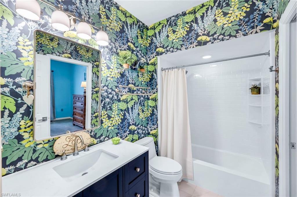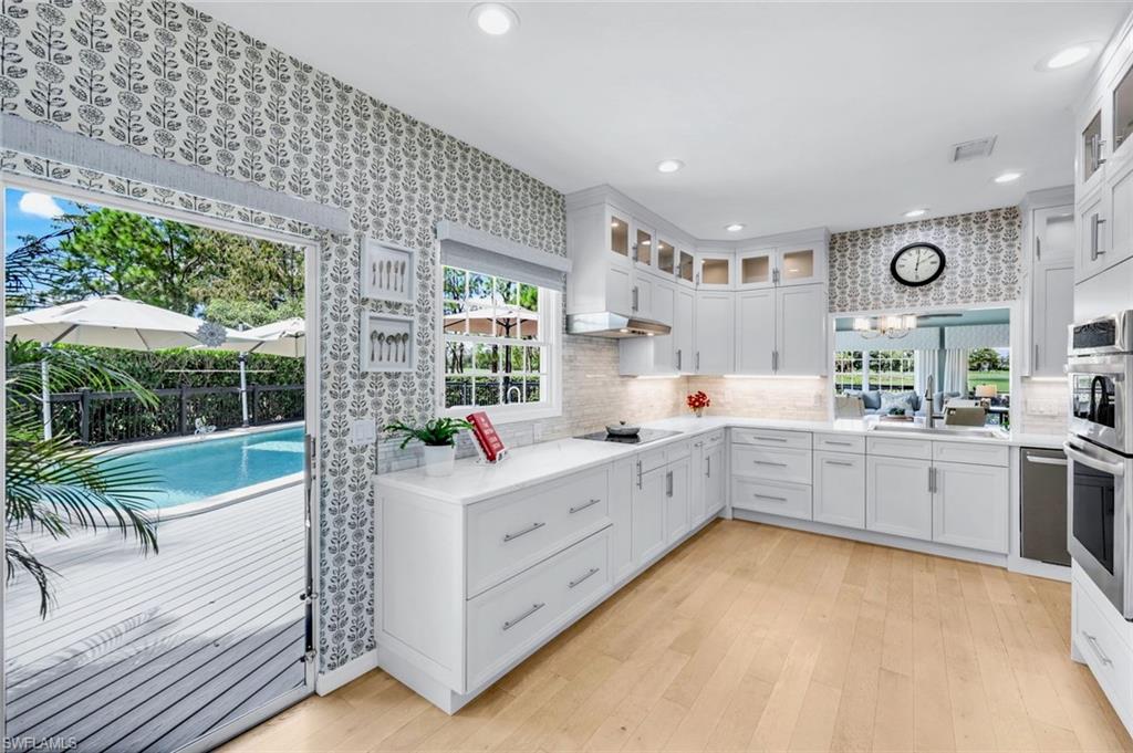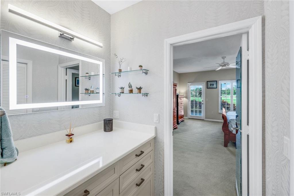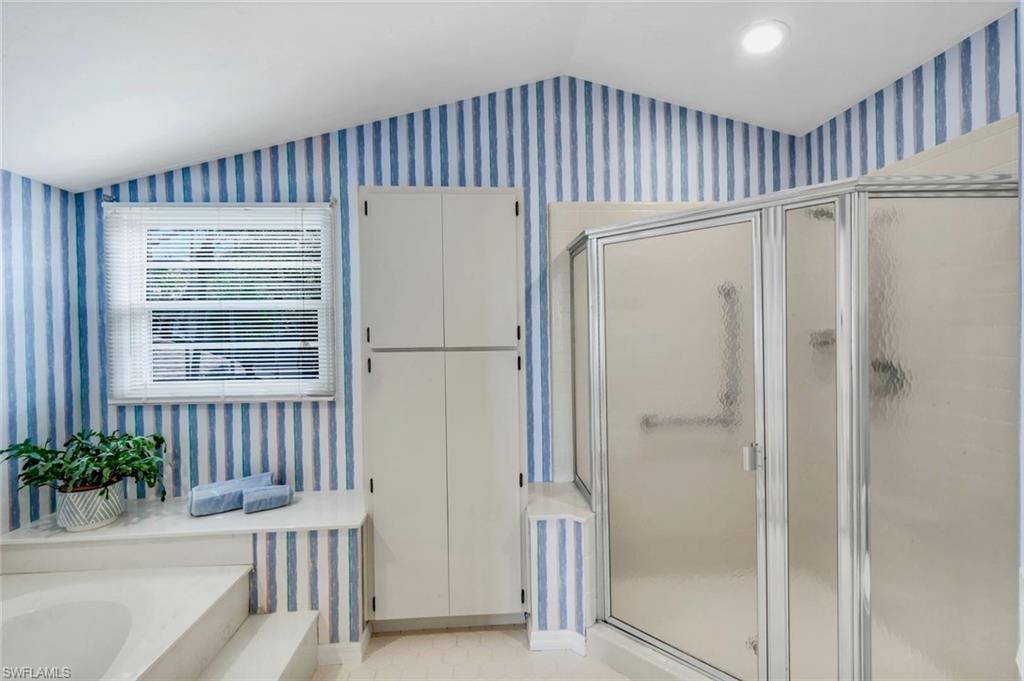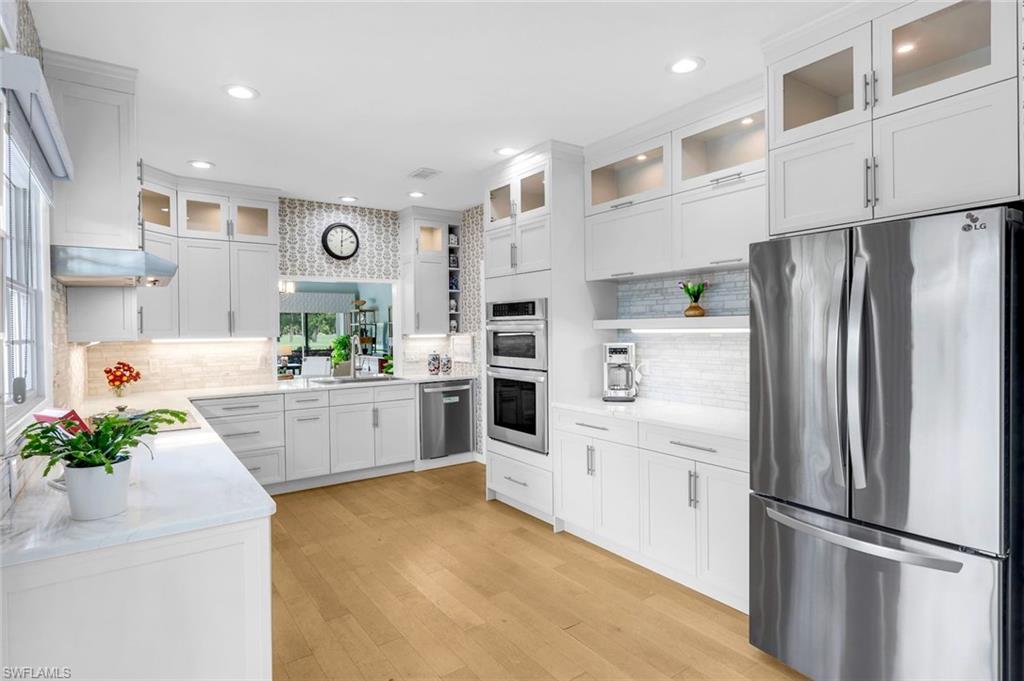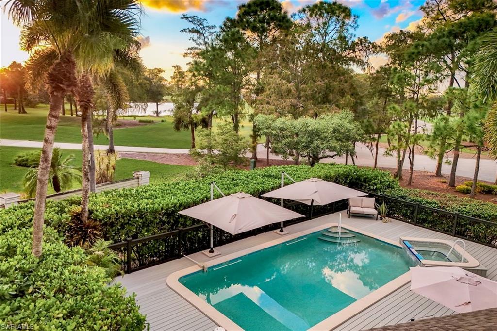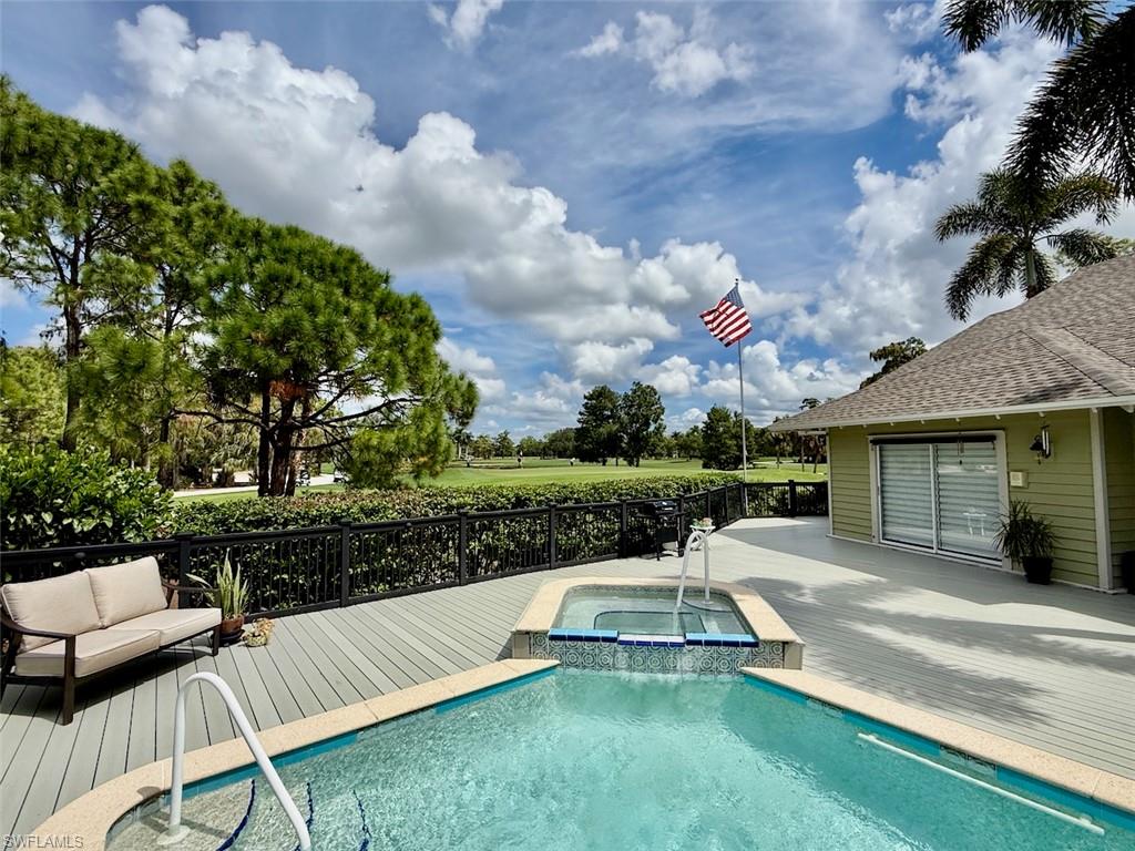 Outstanding location, views and light are the definition of this beautifully updated 3br/3ba single family home in sought after Golf Cottages of Wyndemere. Welcome to 28 Golf Cottage Drive, ideally situated at the end of a lovely tree-lined cul-de-sac, on one of the largest and most private lots in the neighborhood with sweeping 180 degree views creating an exceptional backdrop of light and scenery from sunrise to sunset. Inside, the home has been extensively renovated for style and comfort. The newly updated kitchen features quartz countertops, modern cabinetry, and an induction cooktop—perfect for everyday living and entertaining. The ground-floor primary suite includes a new spa-like bathroom with dual vanities and an oversized walk-in shower, creating a serene retreat. A second bedroom and renovated bathroom on the main level provide flexible living options, while an additional upstairs guest suite—with its own long-range views—provides comfort and privacy for visitors. The main living area boasts soaring vaulted ceilings and abundant natural light, complemented by a built-in bar/drinks /coffee station perfect for entertaining. Ample storage is thoughtfully integrated throughout, including in the garage. Outdoor living is equally impressive. A sunny pool with integrated spa and tranquil water feature is framed by a newer nearly 2,000 sq. ft. composite deck—ideal for entertaining or relaxing in the Florida sunshine. A fenced yard ensures privacy, while the screened lanai and inviting front porch offer additional serene spaces. Recent major updates include a new roof (2024), new A/C (2025), and a whole-house generator with a 500-gallon tank for peace of mind. Wyndemere Country Club is one of Naples’ premier gated communities, offering 27 holes of Arthur Hills–designed championship golf, a newly renovated clubhouse, resort-style infinity pool, state-of-the-art fitness and spa center, 10 Har-Tru tennis courts, pickleball, bocce, croquet, and a vibrant social calendar. HOA fees cover grounds maintenance and irrigation for low-maintenance living. Just minutes from downtown Naples, Gulf beaches, and the airport, this home combines luxury, lifestyle, and location. Move right in and enjoy the best of country club living at Wyndemere.
