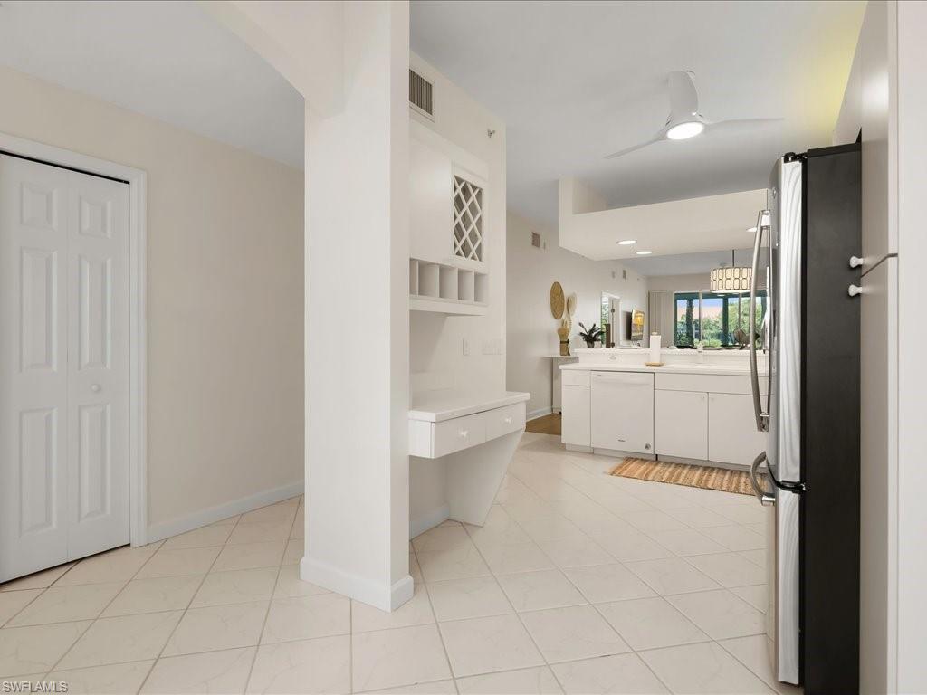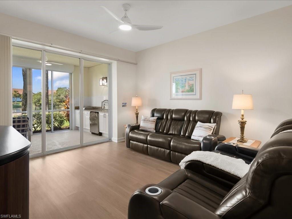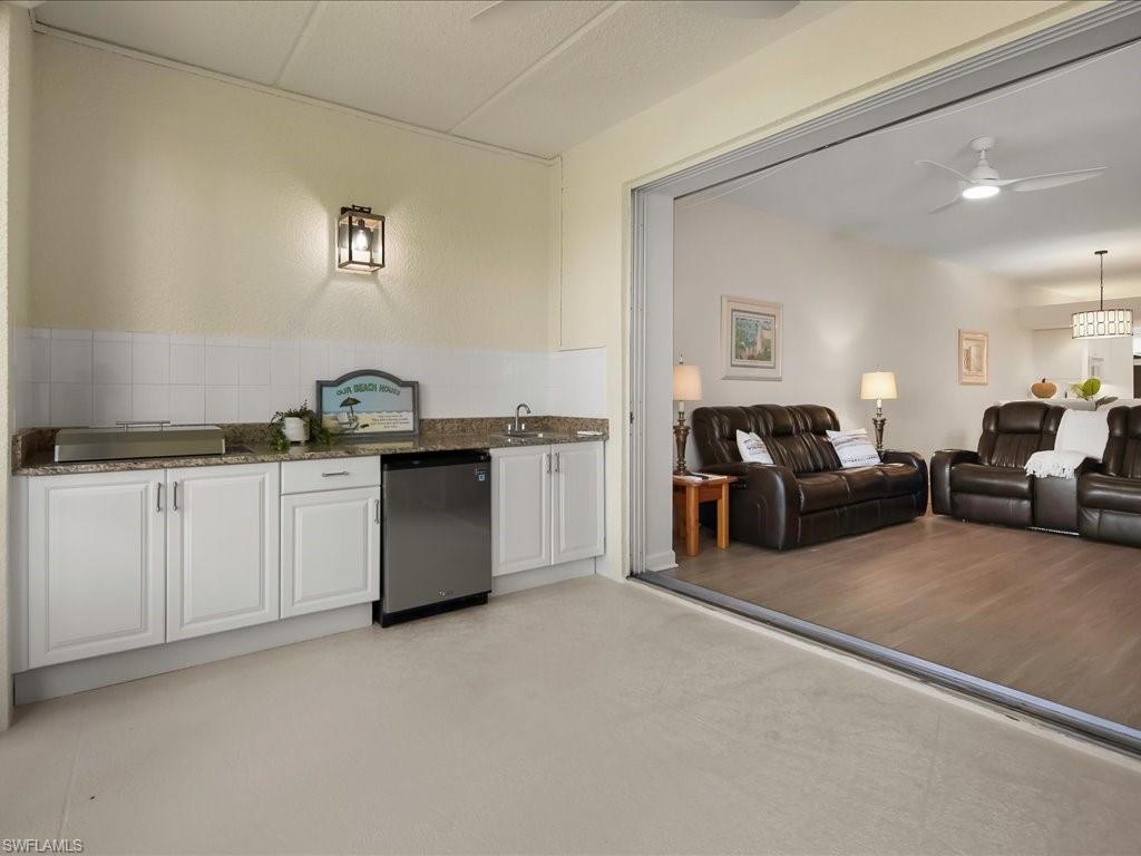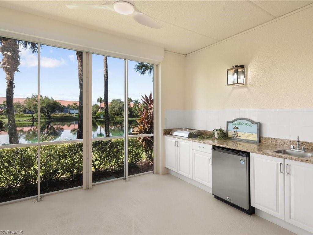 Welcome to this light and bright two bedroom two bathroom condo in Falling Water Beach Resort Community featuring a lazy river, pickleball, tennis courts and bocce ball to enjoy. The owner just completed many updates to this charming condo which is being sold turnkey. The property has been freshly painted top to bottom including walls, ceilings, closets, lanai walls, floor, lanai cabinetry and garage floor. New lighting and fans added to kitchen, dining room, living room and lanai. Master bedroom has brand new carpet. Enjoy the large lanai overlooking the water and water feature. The lanai has also been equipped with a new electric grill and beverage refrigerator and new no-see-um screens. This property is also equipped with electric storm protection shutters. Centrally located between Marco Island and downtown Naples.