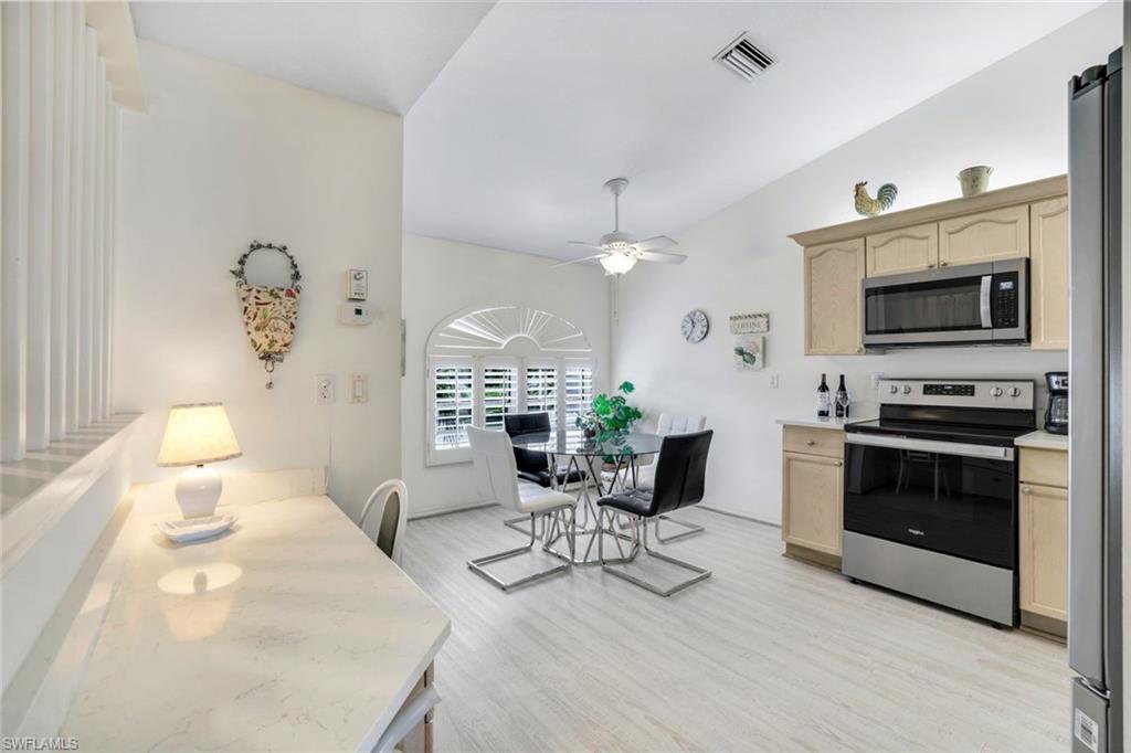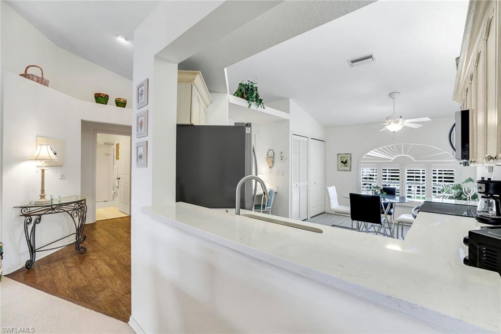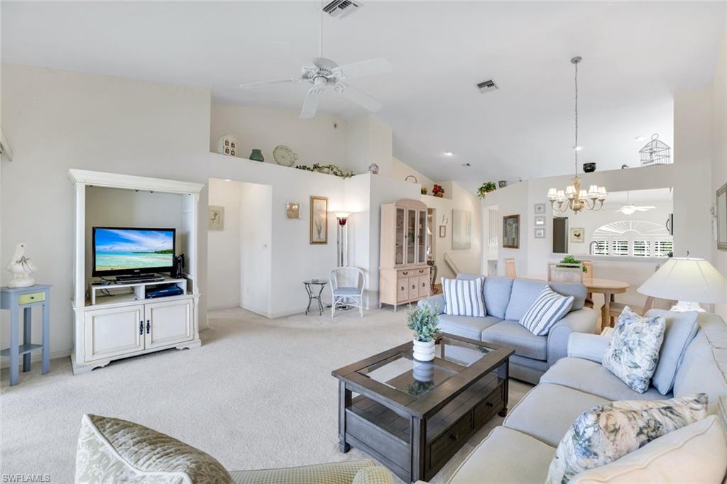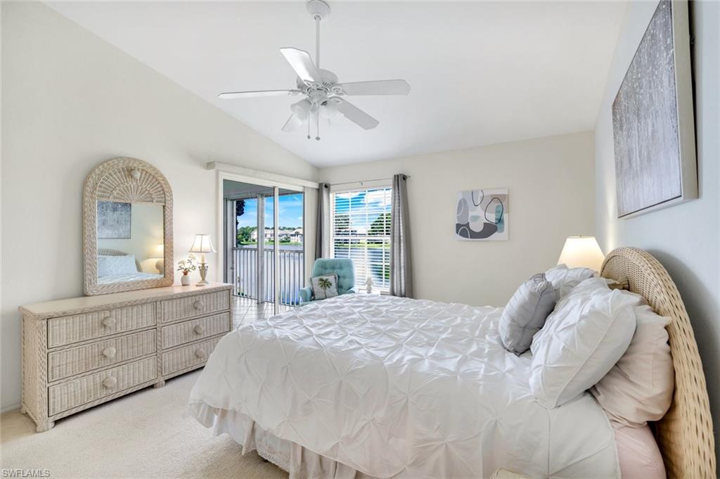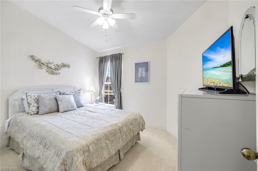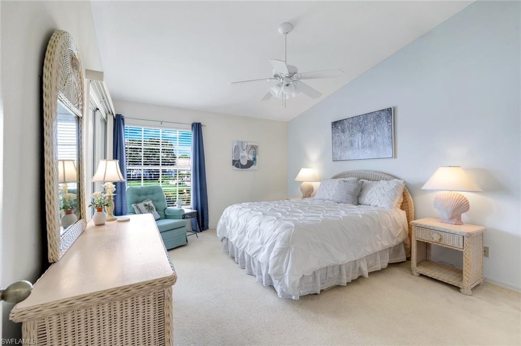 Wonderful lakefront condo with soaring ceilings, sparkling lake views and colorful sunsets from your own lanai. This meticulously maintained home is spacious and open with a split bedroom floor plan. The kitchen has great storage, large pantry and stainless steel appliances. Sip your morning coffee in the breakfast nook and revel in the beautiful sunrise. The large great room has dining and seating areas and opens up the the oversized lanai. The owner's suite encompasses a large walk-in closet, an extra storage closet and dual sinks. A separate wing has your guest enjoying privacy. The spacious lanai is enjoyed nightly while sipping cocktails and watching the sun set. This is a great location within Bermuda Greens with a short walk to the community center as well as to the bocce court. Get involved with social gatherings or spend quiet days basking by the pool. Bermuda Greens is located in Imperial which is a 5 minute drive to Wiggins state park on the beach. Close to Mercato and a plethora of dining/shopping options. Located in the hub of all North Naples has to offer and under 30 minutes to SW Florida regional airport.
