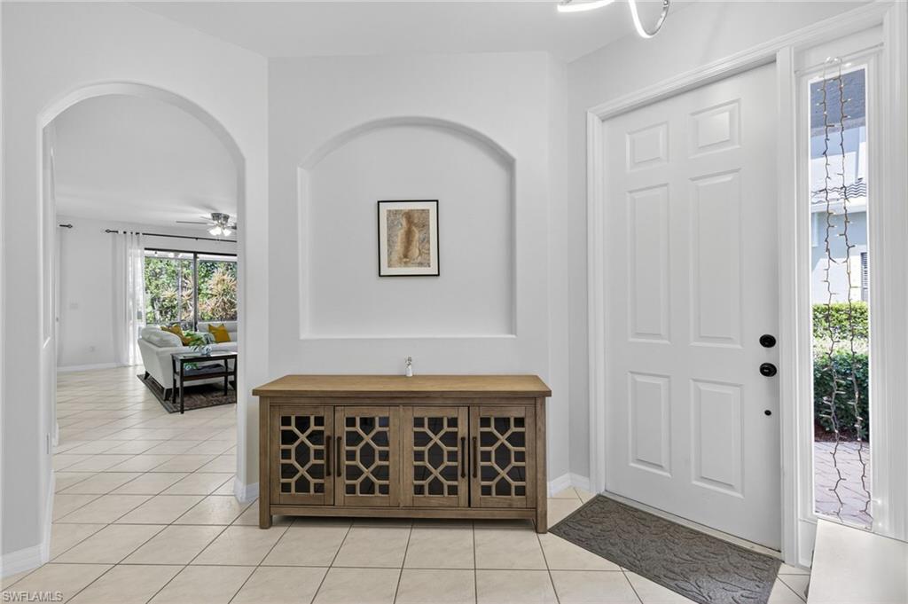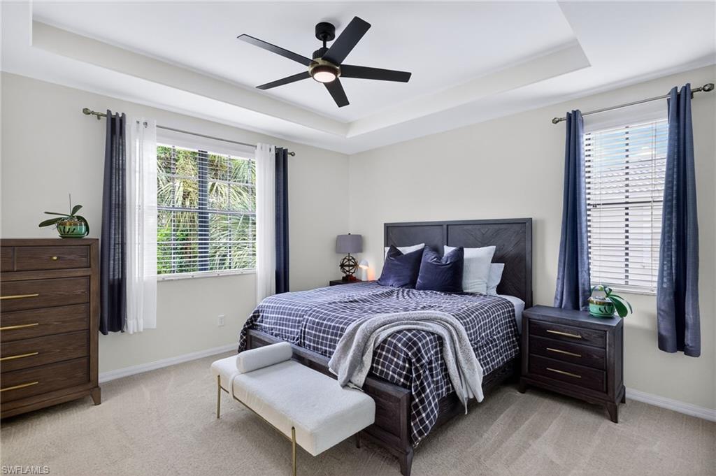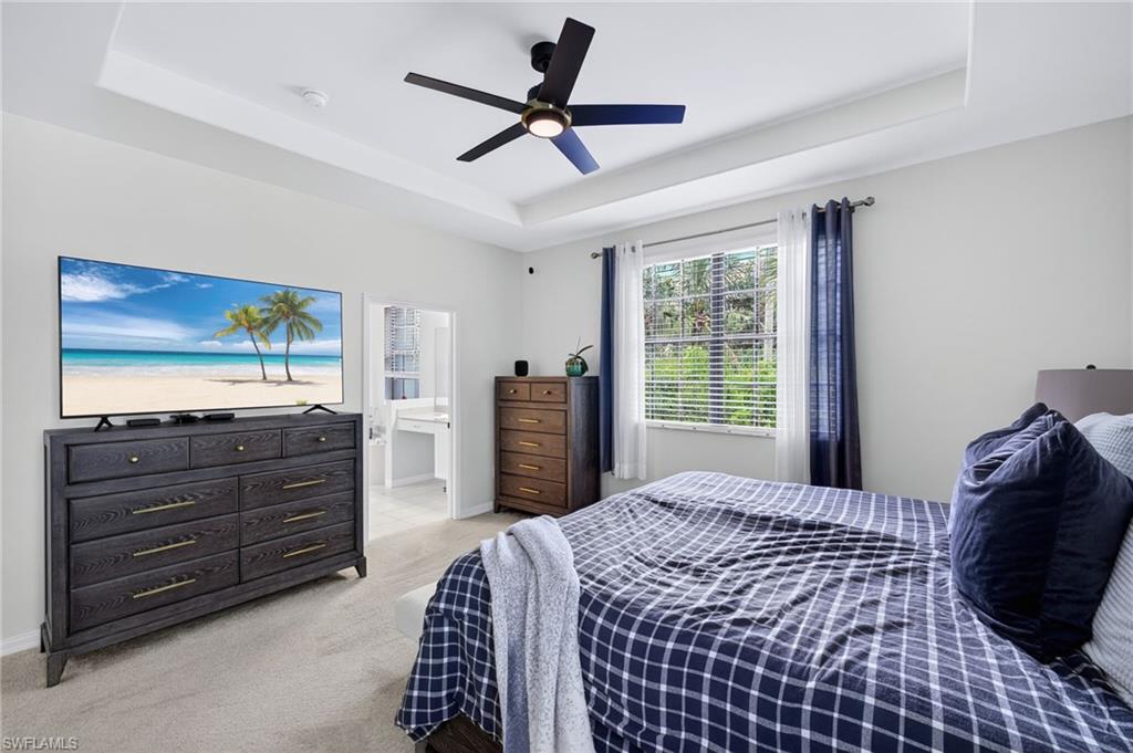 Welcome to 14653 Sutherland Avenue, a unique 2-story end unit in offering 2,276 square feet of thoughtfully designed living space. This is one of largest floor plans within the community. This home Features 3 bedrooms (2 master bedrooms), 2.5 bathrooms, and a two car attached garage. New roof, AC replaced in 2020 (includes a 10-year warranty). The home is equipped hurricane protection with accordion hurricane shutters on the second floor. The large kitchen that overlooks the living area is a great place to connect with friends while cooking. The kitchen has stainless steel appliances and a large walk-in pantry. The oversized lanai is a fantastic space to grill and entertain friends and family, making it perfect for gatherings. The main master suite is a true retreat, featuring a huge walk-in closet and elegant tray ceilings. The en-suite bathroom offers dual sinks, a separate shower, and a luxurious soaking tub. Residents of this community enjoy resort-style amenities, including a pool, spa, sauna, tennis courts, fitness center, basketball court, BBQ area, and a play area. This home is walking distance to amazing amenities, and if you have kids, it’s just a short walk to the front of the community where they can catch the school bus. With the close proximity to Oakridge Middle School, many students in the community either walk, bike, or ride a scooter to school, fostering a sense of neighborhood connection. Additionally, the home is conveniently located and walkable to both Founders Square and Mission Hills, offering easy access to dining, shopping, and entertainment options. 2.6 miles to Gulf Coast High School, 3.9 miles to Vineyards Elementary School. The location also provides peace of mind, being just 6 minutes away from NCH Healthcare - North East and 1 minute away from the Fire Department, ensuring quick access during emergency situations. Notably, during Hurricane Ian, this home and community were not impacted by power or water outages, while other areas experienced disruptions. High-speed internet and high-definition cable are included with the HOA dues, ensuring you're always connected. Located just moments away from Vanderbilt Beach and a plethora of restaurants and shopping options, this home offers a perfect blend of tranquility and accessibility.