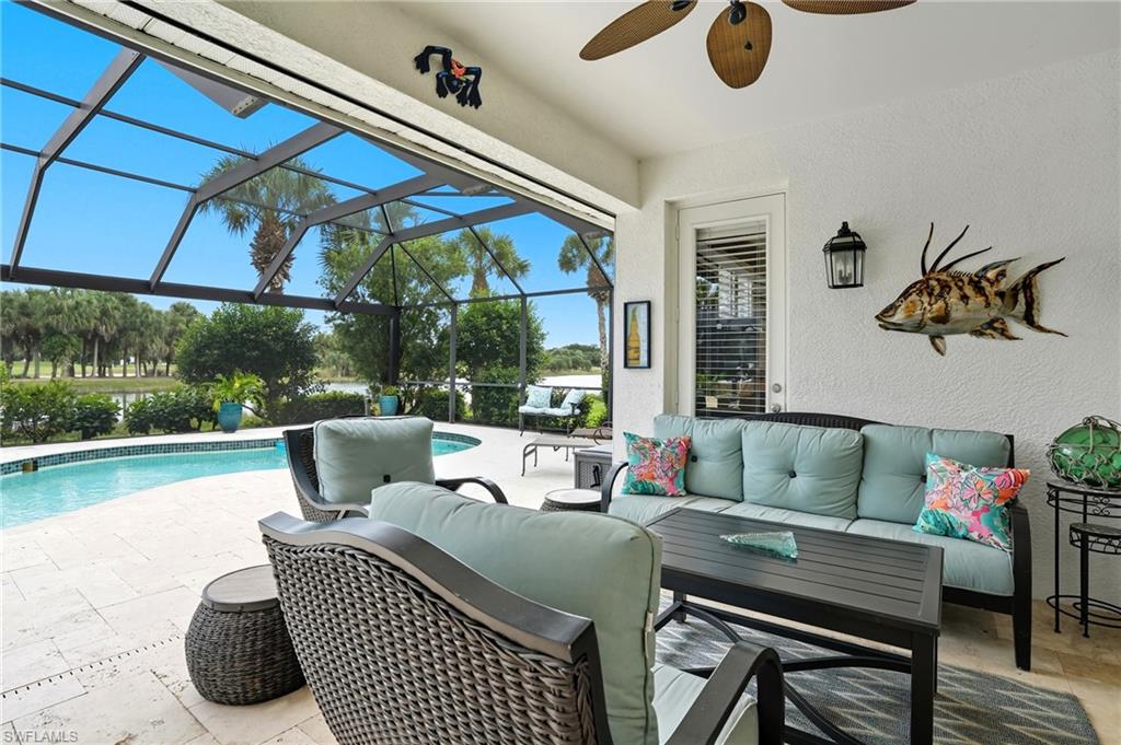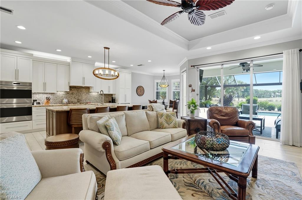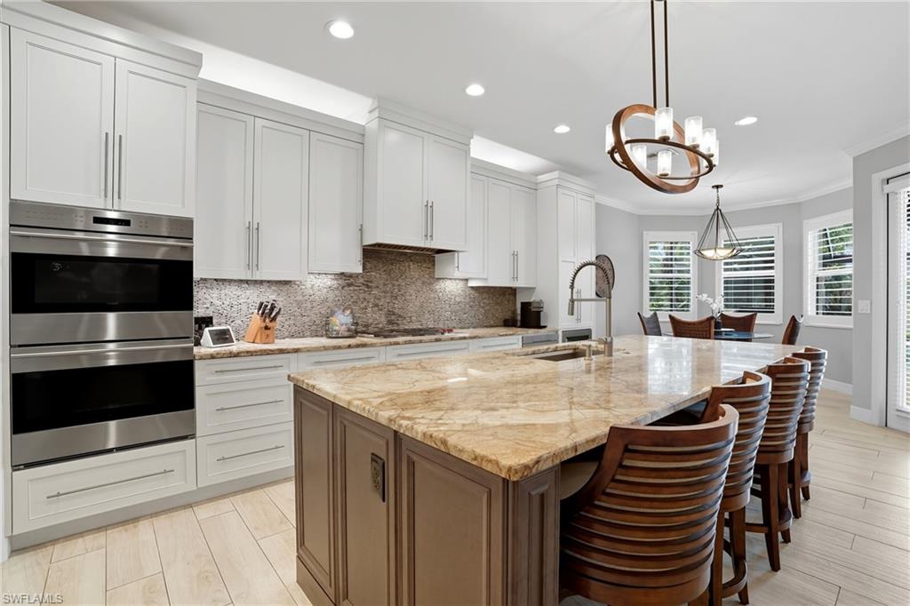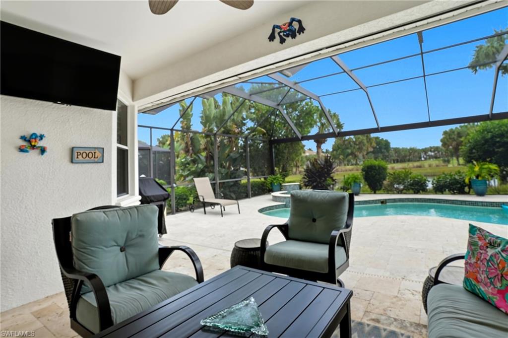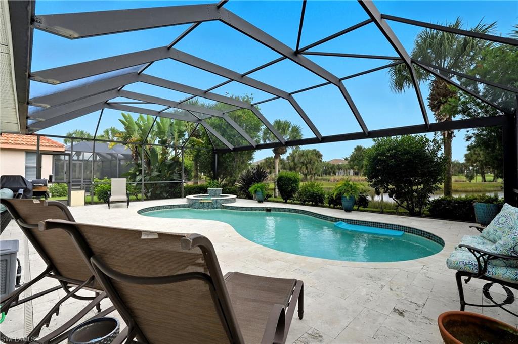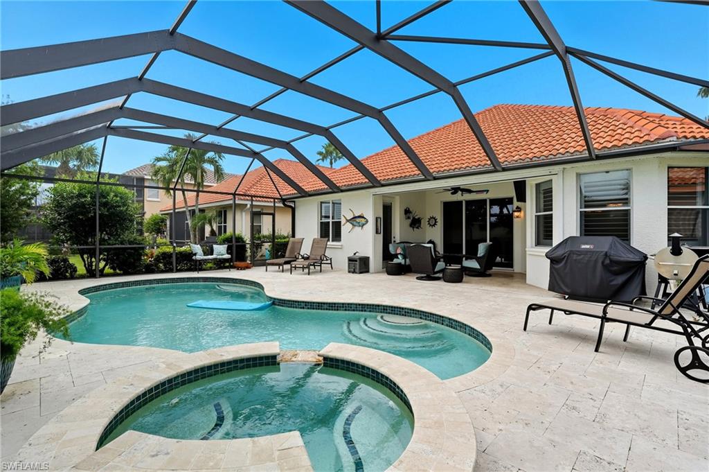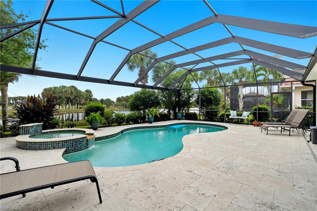 A truly beautifully reimagined 3-bedroom + den, 2.5-bath residence that blends timeless design with modern luxury. In 2018, the owners partnered with Randall Mitchell Builder for a complete renovation, featuring a redesigned kitchen, updated bathrooms, and a refreshed pool and outdoor living area.” full interior renovation, thoughtfully redesigning the entire living space for open flow and refined living. The kitchen and main living areas were reconfigured by removing walls for a open floor plan, complemented with elegant trim work. The chef’s kitchen boasts custom cabinetry, a walk-in pantry with electrical outlets, Wolf and Sub-Zero appliances, beverage and wine refrigerators, and a custom bar with beverage cabinet—perfect for entertaining. The master suite features a completely reimagined bathroom and a California Closets-designed walk-in, while the additional full and half baths have also been fully renovated. Plantation shutters add warmth in the dining area, second bedroom, and office. Outdoor living shines with a redesigned pool, hot tub, and travertine pool deck. Recent enhancements include Storm Smart retractable hurricane shutters (2018), low-voltage outdoor lighting (2019), new lanai screens with a picture-frame full-view enclosure (2024), new pool heater and pump (2023), and fresh exterior paint (2022). Additional upgrades include: replaced HVAC and water heater, new soffits with concrete treatment (2024), Tesla garage charger (2024), electric dog fence, and more. This property is truly move-in ready, offering peace of mind with major systems and features already updated—all within the highly desirable Via Romano community.