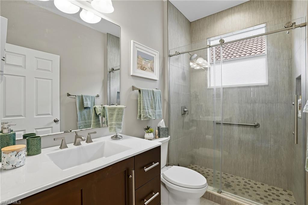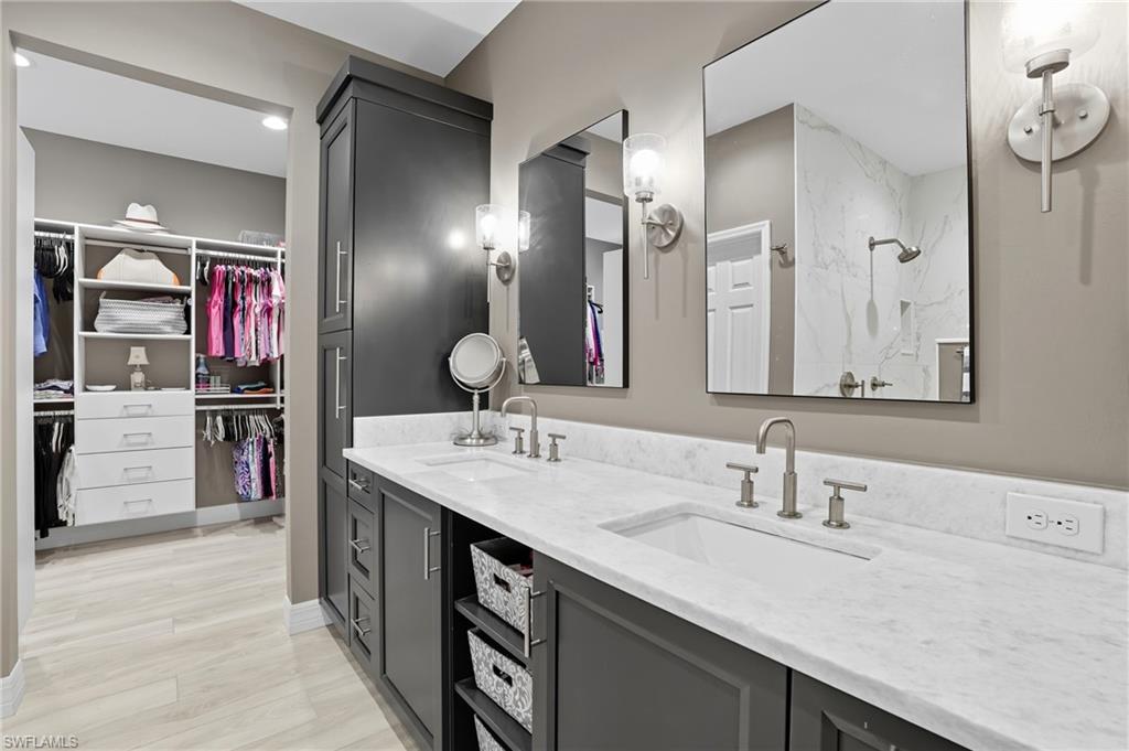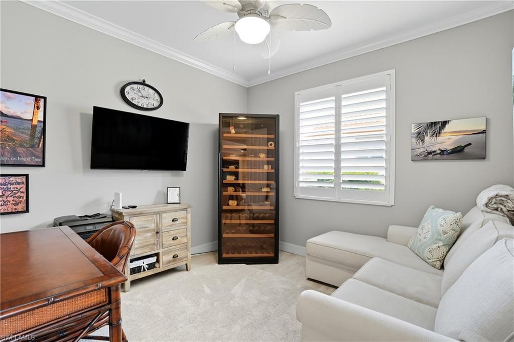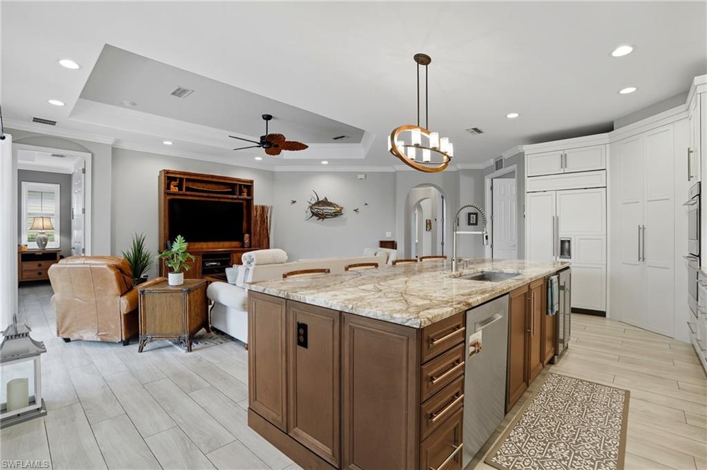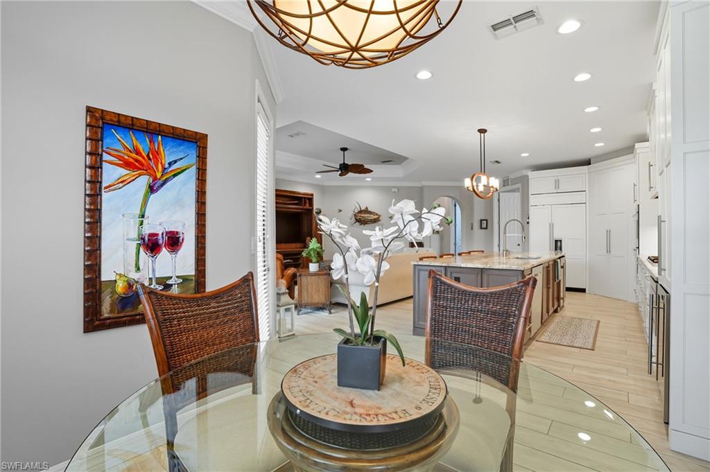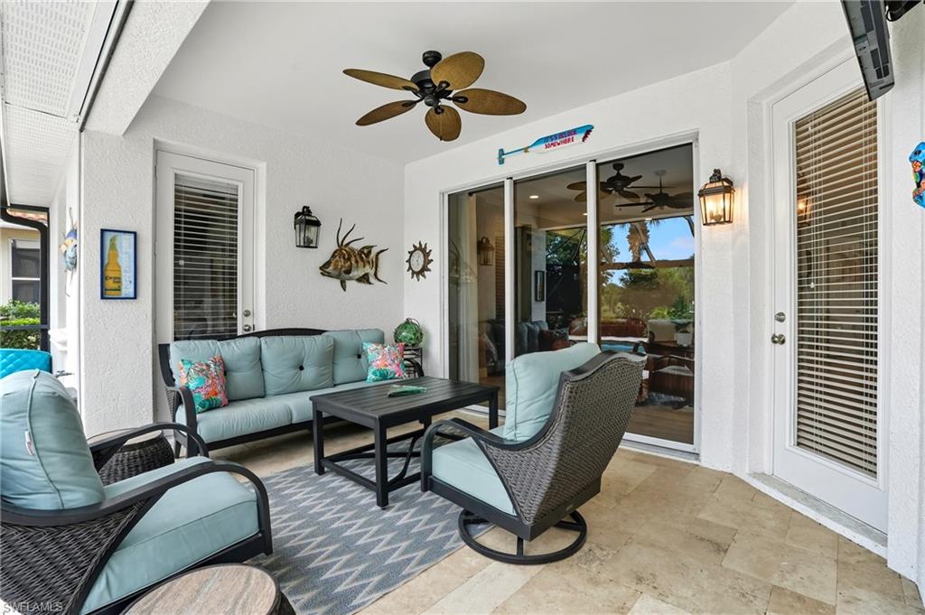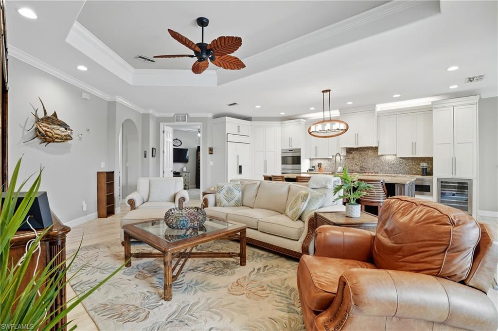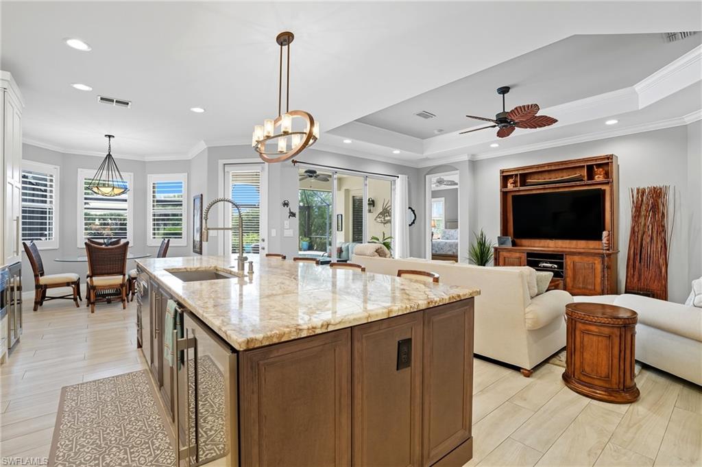 A truly beautifully reimagined 3-bedroom + den, 2.5-bath residence that blends timeless design with modern luxury. In 2018, the owners partnered with Randall Mitchell Builder for a complete renovation, featuring a redesigned kitchen, updated bathrooms, and a refreshed pool and outdoor living area.” full interior renovation, thoughtfully redesigning the entire living space for open flow and refined living. The kitchen and main living areas were reconfigured by removing walls for a open floor plan, complemented with elegant trim work. The chef’s kitchen boasts custom cabinetry, a walk-in pantry with electrical outlets, Wolf and Sub-Zero appliances, beverage and wine refrigerators, and a custom bar with beverage cabinet—perfect for entertaining. The master suite features a completely reimagined bathroom and a California Closets-designed walk-in, while the additional full and half baths have also been fully renovated. Plantation shutters add warmth in the dining area, second bedroom, and office. Outdoor living shines with a redesigned pool, hot tub, and travertine pool deck. Recent enhancements include Storm Smart retractable hurricane shutters (2018), low-voltage outdoor lighting (2019), new lanai screens with a picture-frame full-view enclosure (2024), new pool heater and pump (2023), and fresh exterior paint (2022). Additional upgrades include: replaced HVAC and water heater, new soffits with concrete treatment (2024), Tesla garage charger (2024), electric dog fence, and more. This property is truly move-in ready, offering peace of mind with major systems and features already updated—all within the highly desirable Via Romano community.