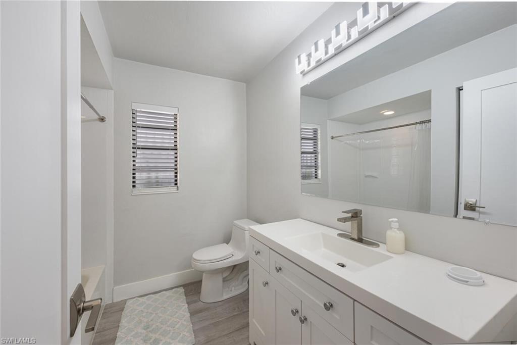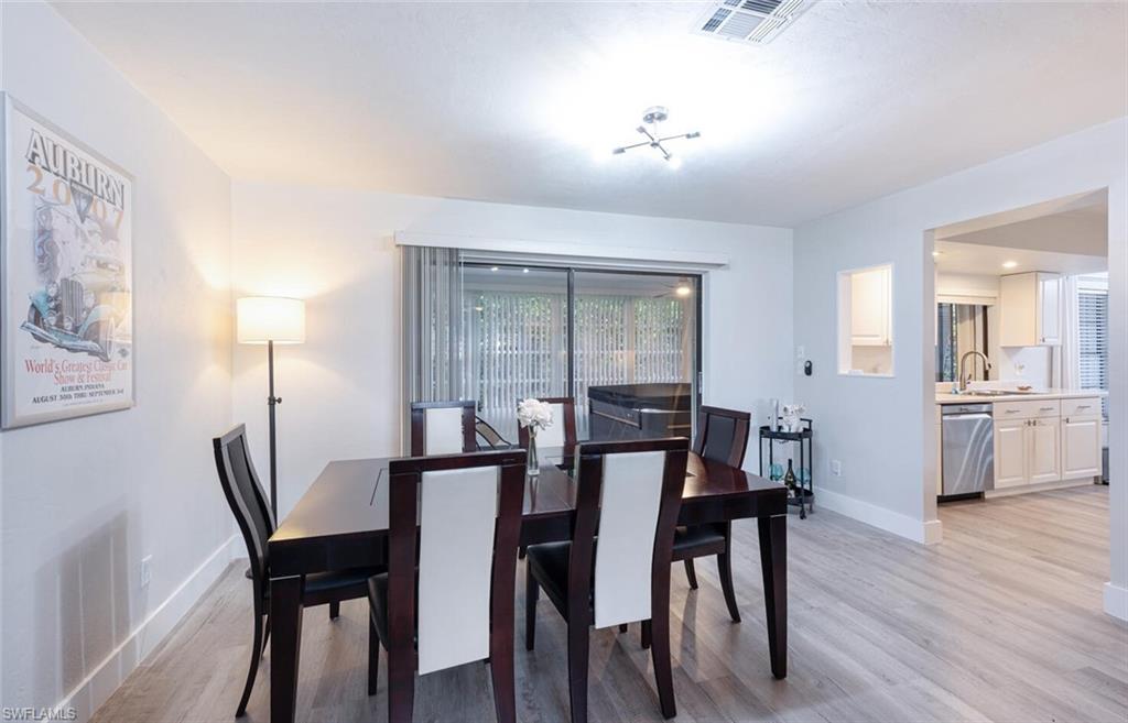 Nestled on a quiet cul-de-sac in Riviera Golf Estates, a 55+ community, this home is fully updated with a contemporary aesthetic and polished feel. The kitchen features stainless steel appliances, newer cabinets, newer countertops, and a tray ceiling. The vanities, countertops, and fixtures in both bathrooms have been upgraded. The flooring is a stylish vinyl plank. The garage has been enhanced with G-Flooring, a utility sink, and custom utility wall. There is a well for lawn irrigation, which cuts down on the water bill, metal shutters in case of a storm, and a UV tint to some windows. The glass-enclosed lanai features a high-end hot tub. All the big-ticket items are squared away: water heater (2024), A/C (2021), and roof (2018) with additional blown-in insulation added in 2024. Community amenities include a heated saltwater pool with lap lanes, tennis/pickleball/bocce/shuffleboard courts, exercise room, billiards room, and a huge clubhouse with a very active social calendar, all just a short drive from downtown Naples and its gorgeous beaches. The LOW HOA FREE of $144/mo. includes your basic internet. Move-in ready home to enjoy the beautiful Naples sunshine!