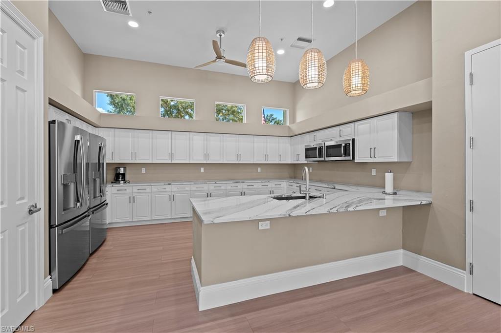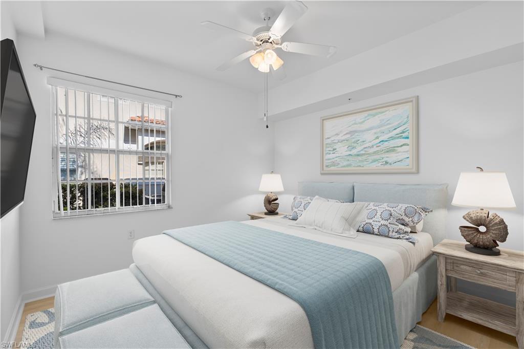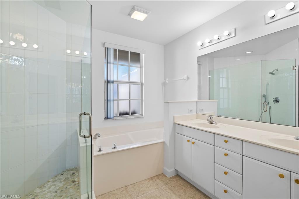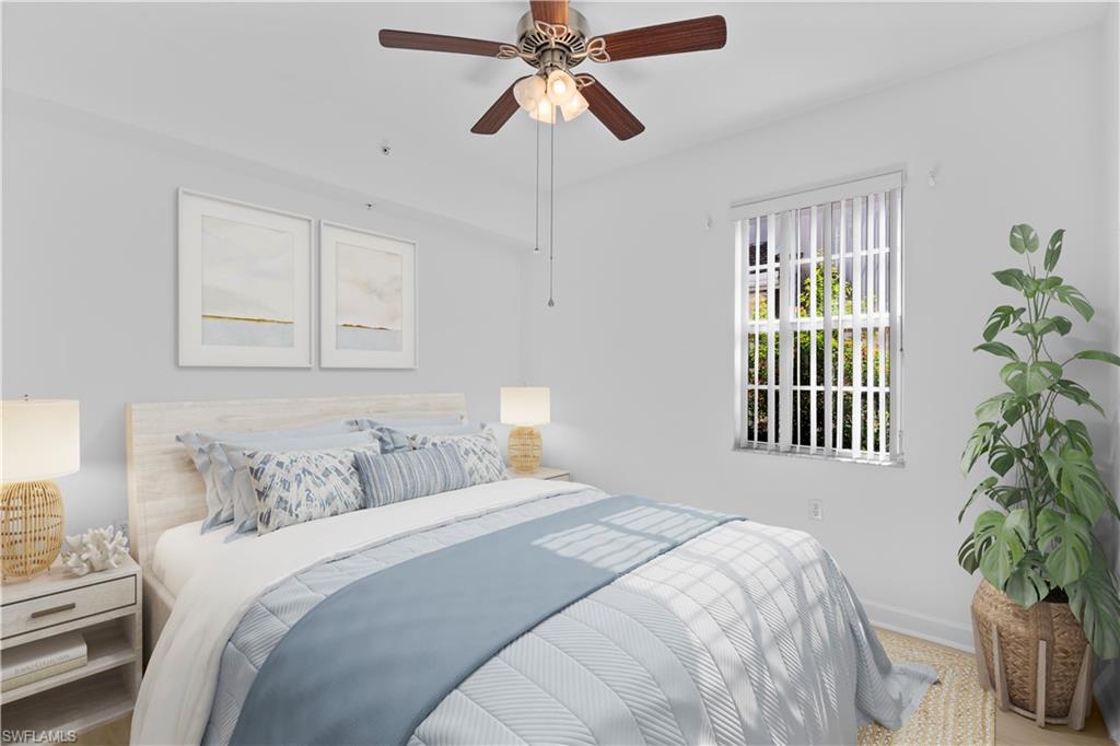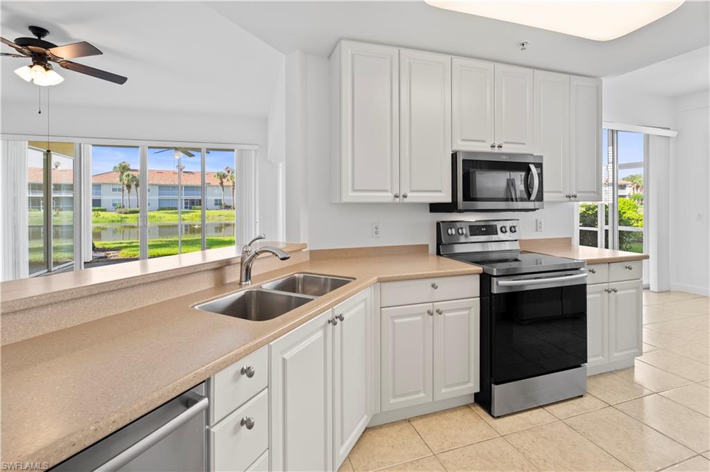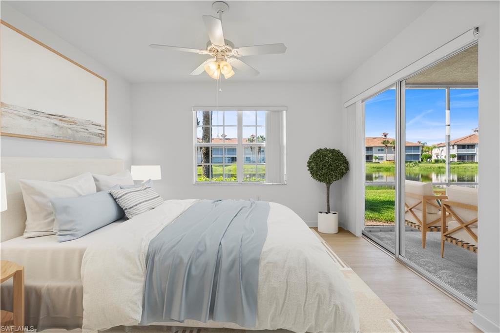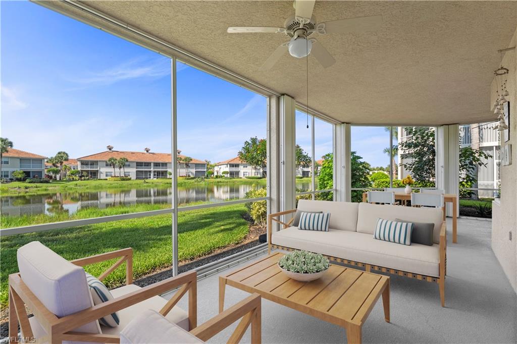 Lakefront Living in North Naples! This beautifully appointed first-floor condo in Bridgewater Bay offers serene lake views and unbeatable access to resort-style amenities. This 3-bedroom, 2.5-bath residence combines comfort, space, and convenience in one of North Naples' most sought-after communities. The expansive, light-filled floor plan opens to a oversized wraparound lanai—perfect for morning coffee or relaxing sunsets. The eat-in kitchen boasts Bright Cabinetry, Corian Countertops, pantry storage, and a full suite of Stainless-steel Appliances. Tile flooring runs throughout the Main Living areas and Bathrooms, with new laminate flooring in the bedrooms. The spacious primary suite is a private retreat, complete with two large closets and an ensuite bath featuring dual vanities, soaking tub, and a separate shower. Bridgewater Bay offers a vibrant lifestyle with amenities including pickleball, tennis, bocce, a resort pool, fitness center, and a calendar full of social events. Just minutes from Mercato, sought after top-rated school district, dining, shopping, and Naples’ white-sand beaches. Don't miss this opportunity to enjoy year-round comfort and community in one of Naples’ most desirable gated neighborhoods. Property comes with a One Year Home Warranty and Professional Cleaning at Closing! *Some images have been virtually staged to serve as an example of potential furniture and decor placement.