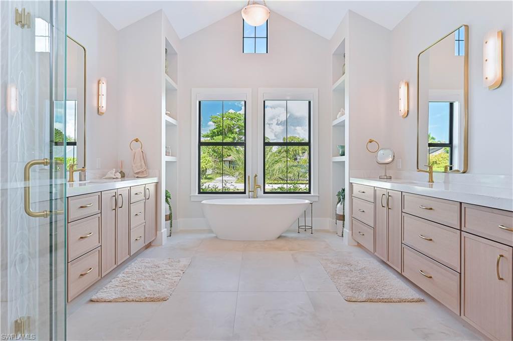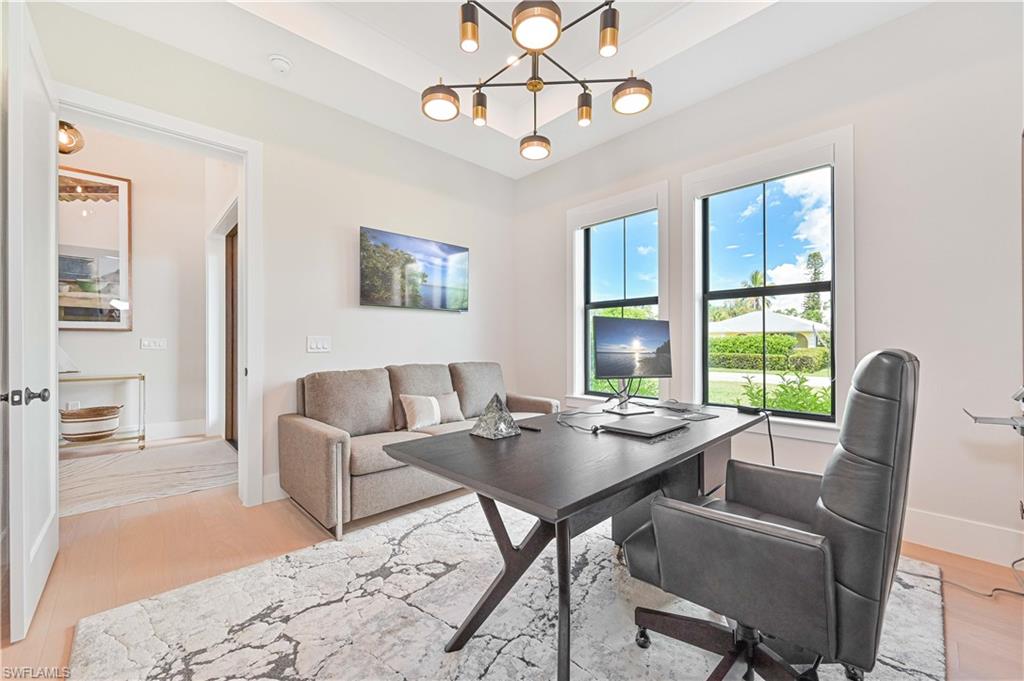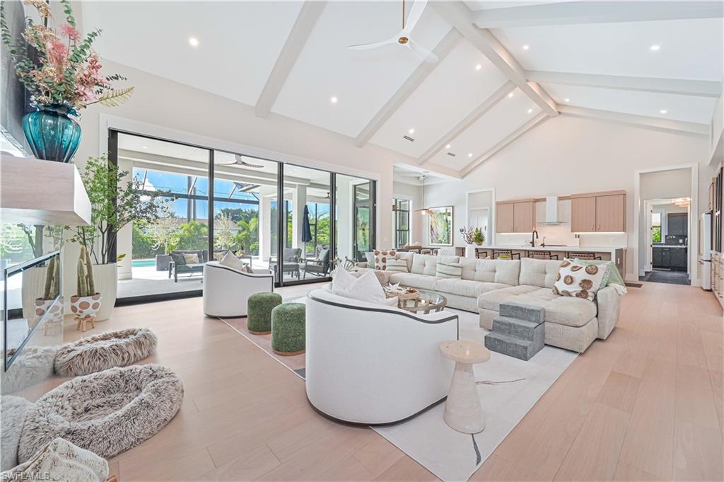 Experience the best of both worlds in this stunning custom-built estate in highly sought-after Naples Park, ideally situated just moments from Vanderbilt Beach and Mercato. Spend your days by the Gulf and your evenings enjoying world-class dining, shopping, and entertainment—all within easy reach. Completed in 2025, this exquisite residence offers over 3,000 square feet of luxurious living space on a rare double lot, showcasing exceptional craftsmanship and thoughtful details throughout. Highlights include engineered white oak floors, coffered ceilings with wood accents, and an open-concept floor plan filled with natural light. Each bedroom features its own private en suite bath, while the gourmet kitchen is a chef’s dream with quartz countertops, a walk-in pantry, white oak cabinetry, induction cooktop/oven, GE Café refrigerator, and upgraded appliances. The home is equipped with state-of-the-art systems including foam insulation, commercial-grade A/C units, reverse osmosis with Culligan whole-house water treatment, tankless water heater, Generac generator with 500-gallon propane tank, and Starlink internet. Additional conveniences include a spacious laundry room with custom cabinetry and drying racks, mudroom with built-in storage, and a three-car garage with epoxy floors and overhead racks. Outdoor living is equally impressive with extensive landscape lighting, irrigation from a private well, a full summer kitchen, and a screened-in covered lanai with color-changing LED lighting, all surrounding a heated saltwater pool. This exceptional residence embodies luxury coastal living at its finest.