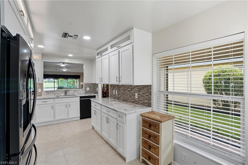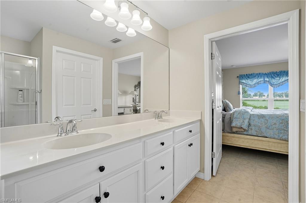 Experience the best of carefree living in this beautifully maintained Pulte Gray Mist model, offering 3 bedrooms and 2 baths on a premium lot in Del Webb Naples. Set along the 8th fairway, the home captures wide water and golf views with a southeastern exposure — the perfect backdrop for mornings on your screened lanai. A private screened front porch adds extra charm and functionality. Inside, the kitchen has been thoughtfully updated with stone countertops, new appliances, and accent lighting. Tile flooring runs throughout the main living areas, while fresh interior paint and abundant natural light create an inviting atmosphere. Living here means access to an incredible array of amenities — from the Oasis Club’s fitness center, steam room, and sauna to pickleball, tennis, bocce, billiards, and both resort and lap pools. Golf enthusiasts will love the optional membership at Panther Run Golf Course. Conveniently located just minutes from Ave Maria’s shopping and dining, and less than an hour from Naples’ renowned beaches and culture, this home combines comfort, convenience, and community.