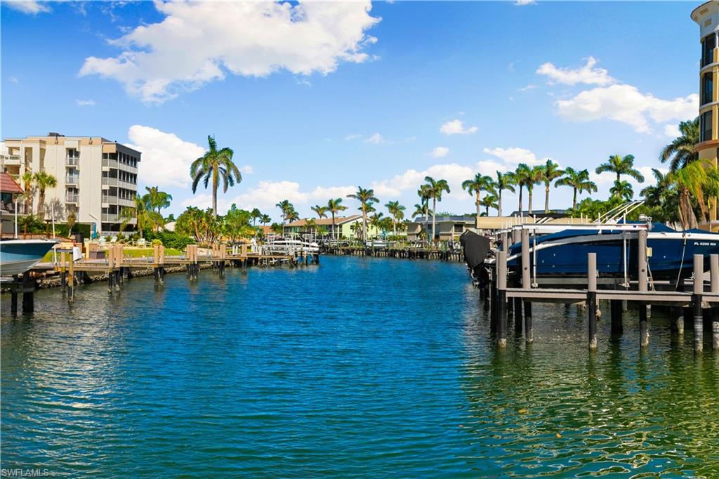 Looking for close proximity to the beach and waterfront views? This 2 bedroom, 2 bathroom condo at Moorings of Marco offers both of these conveniences on Marco's south end at a budget lower than most. Moorings rests right at the end of one of the Island's storied canals, resulting in optimal relaxation on the oversized lanai as boats take off on direct access waterways. New carpet in bedrooms, wood laminate in dining/living area, and tile in all other rooms. AC replaced 2020, hot water heater 2023. Washer and dryer included in the unit. Amenities include covered parking with assigned space, community pool, bike storage, boat launch, a cabana, and a car wash area. Additional conveniences include NEW electric shutters (2025) on the lanai, manual shutters on the windows, and a storm-resistant front door all installed 2025. The Moorings represents a spectacular opportunity to buy into the gorgeous south end of Marco Island, extraordinarily convenient to south beach access; come see for yourself!