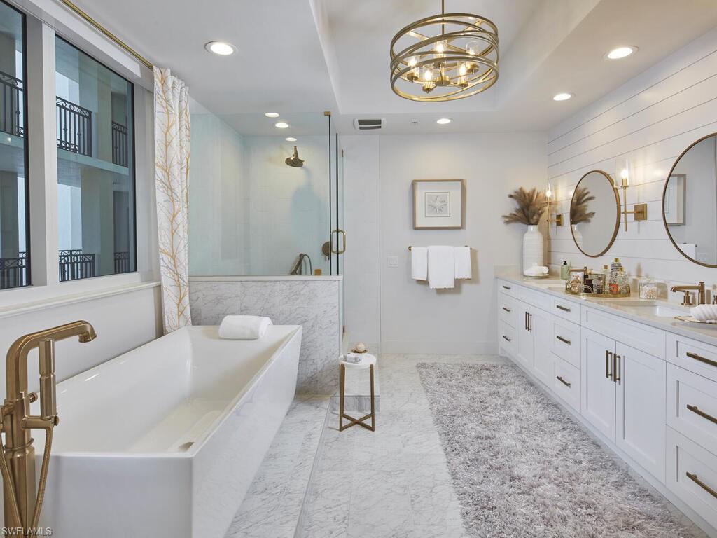 Experience Elevated Living in This Designer-Renovated Condominium with Unmatched Style and Panoramic Views If you’re in search of a sophisticated, residence that effortlessly blends modern design with timeless elegance—your search ends here. This impeccably renovated condominium, professionally curated and furnished by Clive Daniel Interiors, was proudly featured in Design & Decor magazine for its extraordinary style and attention to detail. Reimagined by the acclaimed luxury builder Imperial Homes of Naples, every element of this home reflects quality and refinement. The interior showcases wide-plank wood-look tile flooring, bespoke designer lighting, and custom window treatments throughout, creating a warm yet contemporary ambiance. The expanded, chef-inspired kitchen is the heart of the home—designed for both entertaining and everyday living. It features custom cabinetry with elegant glass-paneled doors, a generous center island, a counter-height bar, and premium, built-in appliances. Flowing seamlessly from the kitchen, the open-concept living and dining areas invite you to relax or host in style. Expansive sliding doors open to a wraparound lanai with new hurricane-rated screens, offering unobstructed sunset views and a tranquil backdrop of lush tropical surroundings. The serene primary suite offers a true retreat, complete with a luxurious, spa-like bathroom, a fully customized walk-in closet, and private access to the lanai. Each detail has been thoughtfully designed to enhance comfort and functionality. Set within the exclusive Castella enclave, nestled across 11 acres of tropical landscaping, you’re just steps away from the resort-style pool and spa. Additional recent upgrades include a newer HVAC system, a new water heater, and more. This residence is move-in ready—meticulously finished, professionally designed, and waiting for you to make it your own.