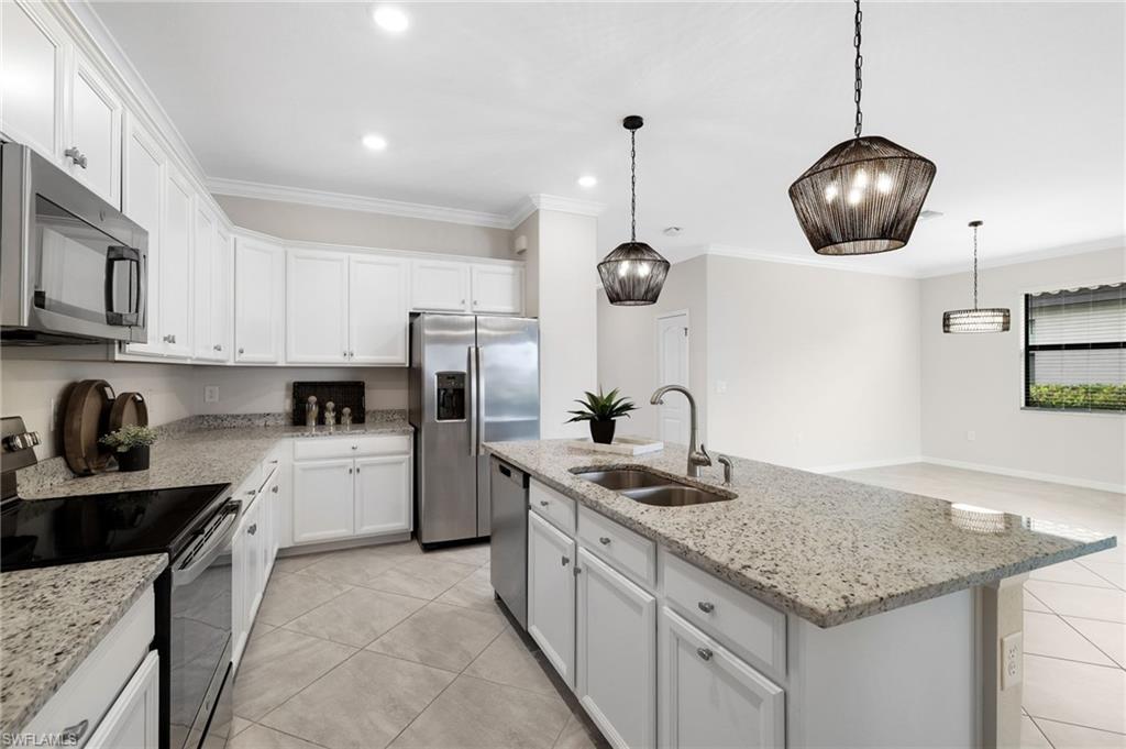 QUICK CLOSE! BE IN YOUR NEW HOME BY THE HOLIDAYS! Experience an unparalleled opportunity in the prestigious community of The Place at Corkscrew. This beautifully designed home offers 2,032 square feet of thoughtfully planned living space, blending comfort, style, and functionality—ideal as a full-time residence, seasonal retreat, or investment property. Featuring 4 BEDROOMS and 3 FULL BATHROOMS, this residence showcases a NEUTRAL COLOR SCHEME and an OPEN CONCEPT LAYOUT, perfect for both lively gatherings and peaceful evenings at home. The kitchen is a true centerpiece, boasting GRANITE COUNTERTOPS, STAINLESS STEEL APPLIANCES, custom lighting, white shaker cabinetry, walk-in pantry, and a generously sized center island ideal for entertaining. The living area flows seamlessly to a screened lanai with tranquil preserve views and NORTHWEST REAR EXPOSURE, the perfect setting to enjoy Southwest Florida’s breathtaking sunsets. The split floor plan is designed for privacy and convenience. The primary suite offers a serene retreat with a spacious, light-filled bedroom, TWO WALK-IN CLOSETS, and a spa-inspired en-suite bath with a comfort-height dual sink vanity, private water closet, and expansive walk-in shower. A secondary ensuite bedroom provides privacy for guests, while two additional bedrooms and full bathroom at the front of the home add flexibility for family, a home office, or hobbies. Additional features include TILE FLOORING THROUGHOUT, CROWN MOLDING, window blinds in every room, ceiling fans, and a GLASS-INSERT FRONT DOOR that adds a touch of elegance. The home also includes smart technology with a KEYLESS front door lock, thermostat, and RING doorbell for added convenience and security. A two-car garage with EPOXY FLOORING completes this residence with both style and function. Residents of The Place at Corkscrew enjoy a true resort-style lifestyle with an impressive array of amenities. From the indoor/outdoor restaurant and bar, Marketplace Café, and Bourbon Bar to the 11,000-square-foot zero-depth pool with waterslide, spa, splash pad, cabanas, and sand volleyball, every detail is designed for relaxation and fun. A 24/7 fitness center, childcare room, movement studio, playground, and dog park add to the convenience, while pickleball, tennis, bocce, and basketball courts create endless opportunities for recreation. Just beyond the gates lies the renowned Old Corkscrew Golf Club, a Jack Nicklaus Signature public course. With low HOA fees, NO FLOOD ZONE location (no flood insurance necessary), and close proximity to RSW Airport, FGCU, shopping, dining, and Gulf beaches, The Place at Corkscrew continues to shine as one of Southwest Florida’s most desirable communities.
