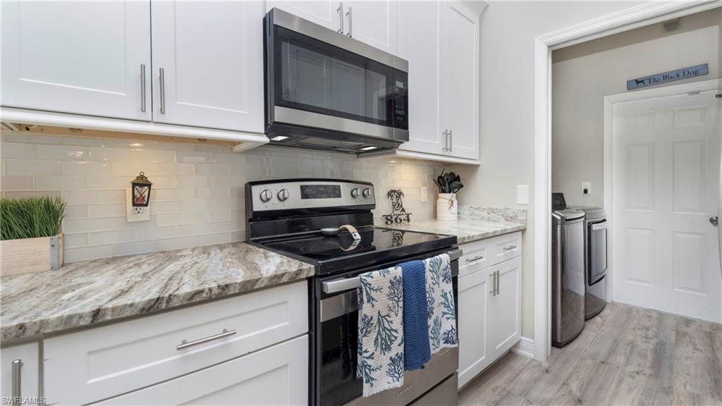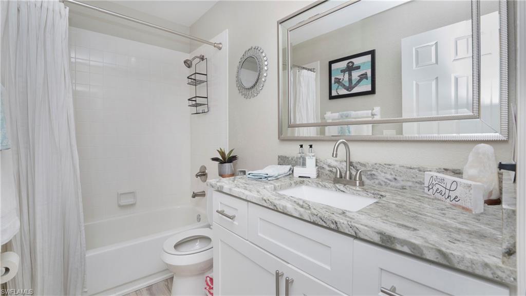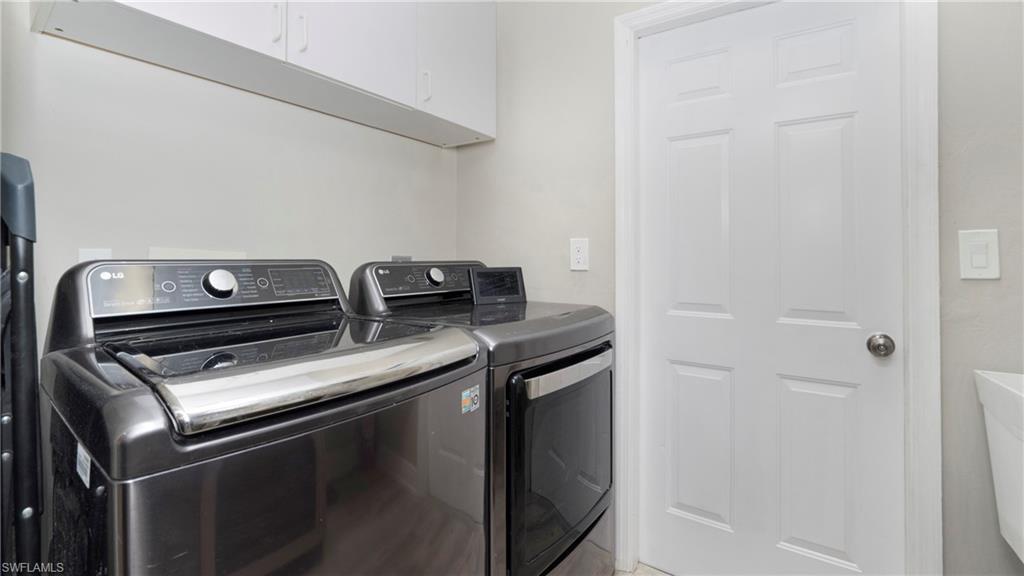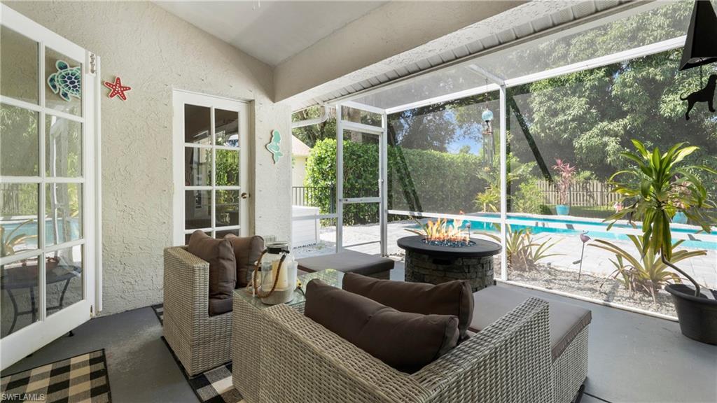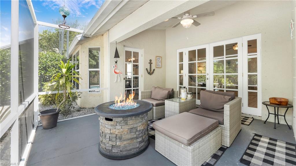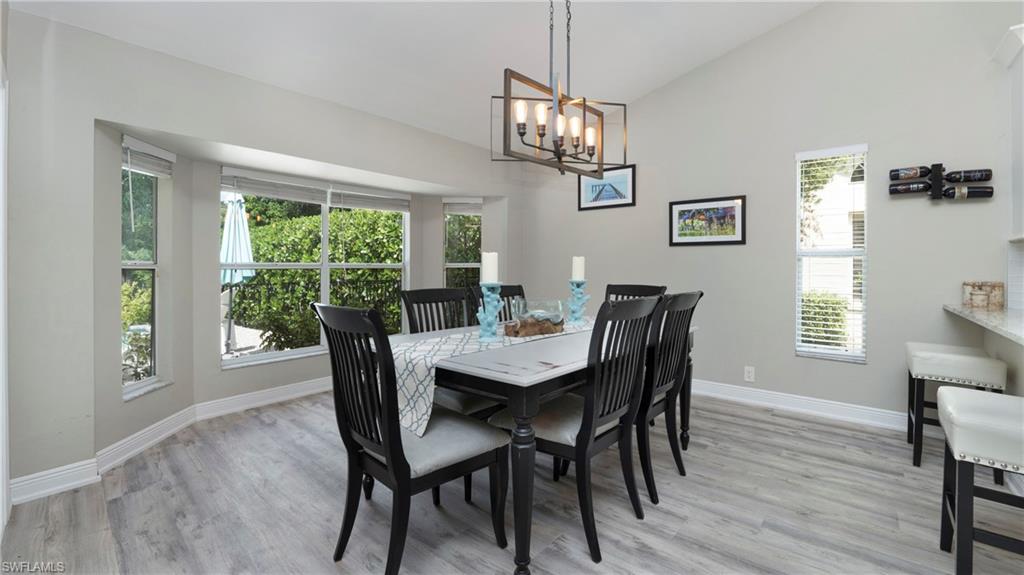 Highly sought after Berkshire Lakes home with a SALTWALTER POOL THATS ONLY 4 YEARS OLD! This 3-bedroom, 2-bathroom single-family home offers 1,587 sq ft of living space and modern upgrades throughout. Renovated in 2019 with stainless steel appliances, lighting, and cabinetry, plus granite countertops in the kitchen and bathrooms. Roof (2019), A/C (2021), LVP floors (2022). French doors lead to a screened lanai and open to a heated pool SALTWATER pool (2022) with a sunning shelf, creating a private backyard oasis. The fully fenced backyard is lushly landscaped for privacy and relaxation. Additional features include a 2-car garage, hurricane shutters and newly blown insulation for energy efficiency. Berkshire Lakes is a pet-friendly community with LOW HOA fees, tennis and pickleball courts, clubhouse, community pool, and walking trails. Conveniently located near Publix, Starbucks, dining, and only 15 minutes to Fifth Avenue South and Naples beaches.