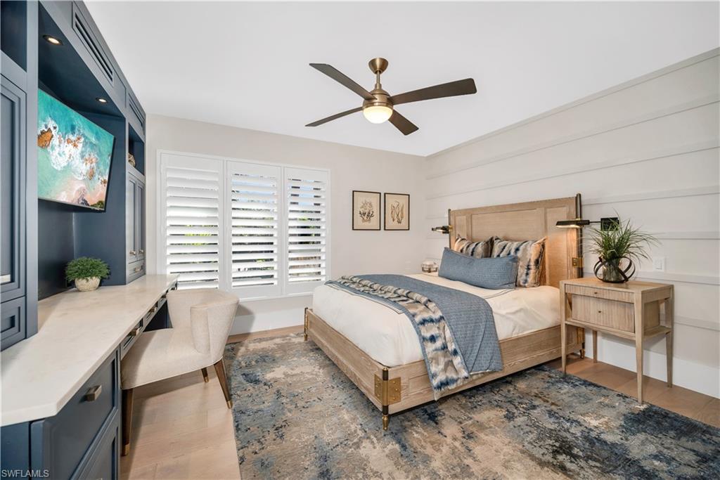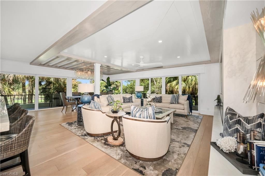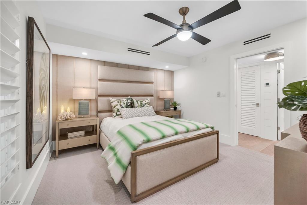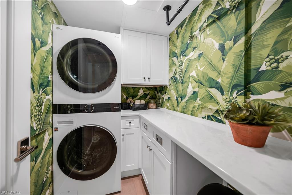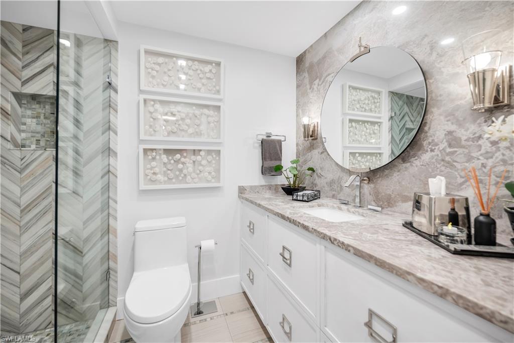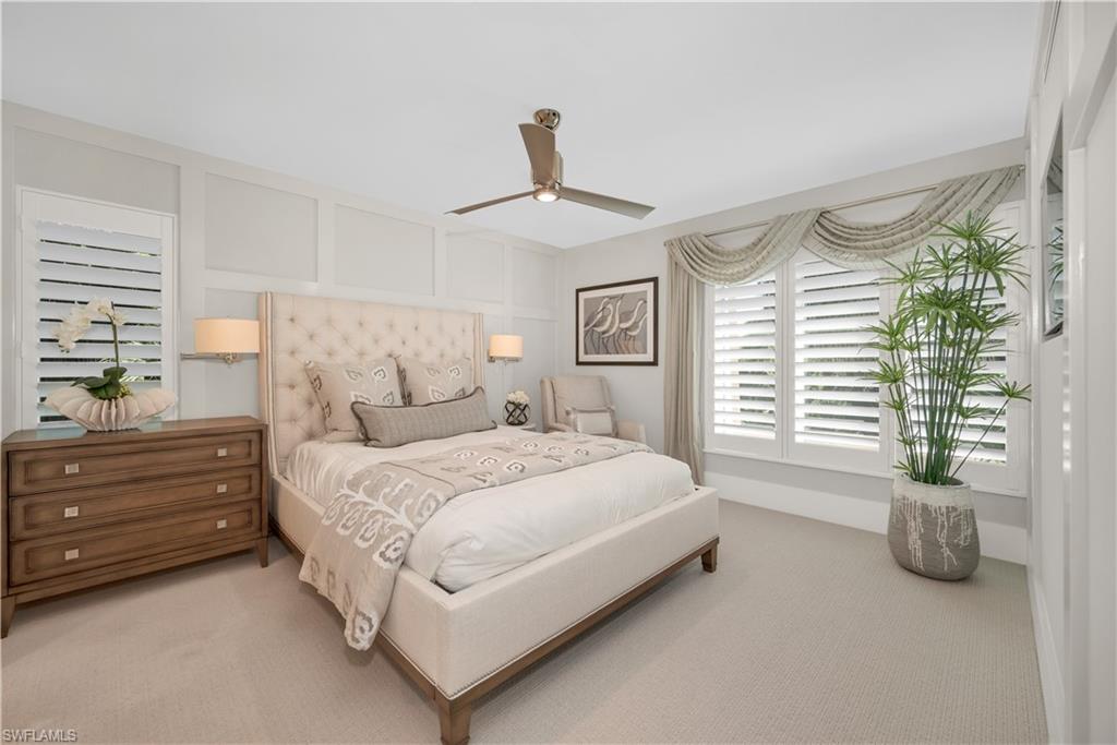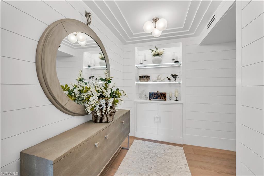Absolutely Stunning! This top-floor, furnished three-bedroom residence with a wide balcony in an elevator building has been completely reimagined with a tailored renovation that elevates every detail. Wide-plank French oak flooring sets the stage for a bright, modern interior. The chef’s kitchen boasts quartz countertops with a dramatic waterfall edge, a butler’s pantry with double ovens and a warming tray, and exquisite tile inlays. Multiple built-in wine coolers, climate-controlled wine storage, and beverage fridges make entertaining effortless. The open living area showcases an elegant marble entertainment wall with an electric fireplace, custom shiplap accents, and floor-to-ceiling impact-rated sliders framing sweeping views. A cozy breakfast cove with leather seating and power shades offers the perfect place to relax. Every detail has been thoughtfully designed, from custom closets and a built-in desk to designer light fixtures and intricate tilework throughout. Spa-like bathrooms feature seamless glass shower doors, herringbone tile, and luxurious finishes, while the primary suite includes both a soaking tub and a walk-in shower. Refined finishes in every room create a true private oasis that embodies modern elegance. Additional highlights include a fantastic golf cart with a lithium-ion battery and a dedicated golf cart storage area with custom cabinetry. Residents have exclusive access to the newly constructed state-of-the-art 5-star Clubhouse and practice facility, making this property a golfer's paradise. A golf cart and dedicated cart garage are included, conveniently located next to your assigned covered parking. Set within a stunning 200-acre gated community, you'll enjoy beautifully landscaped grounds and mature trees lining the roads. This community offers unlimited golf on an 18-hole Arthur Hills course, as well as five inviting pools, four tennis courts, bocce, croquet, and a dog park. This condo is a true gem, just minutes from the vibrant shopping and dining of 5th Avenue and Old Naples. Purchase of a Wilderness Country Club membership is required and immediately available, offering you an effortless transition into this luxurious lifestyle.
