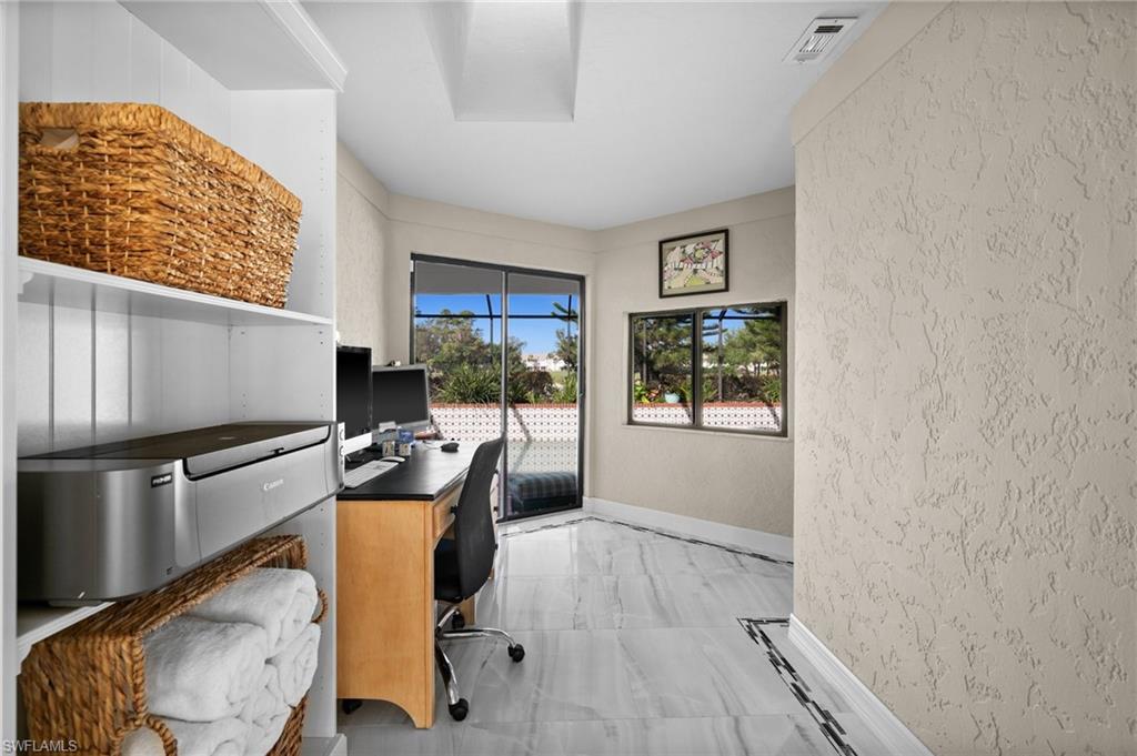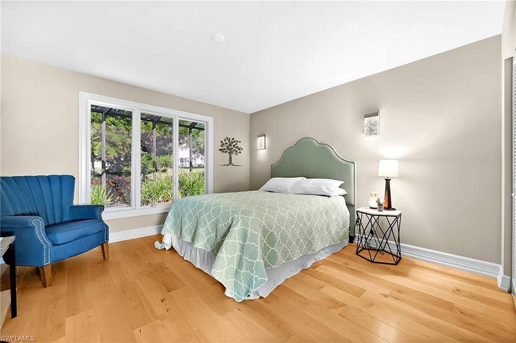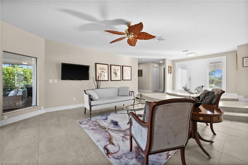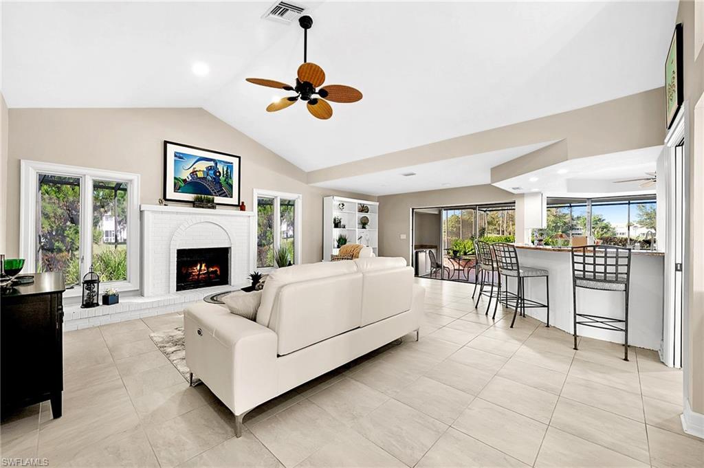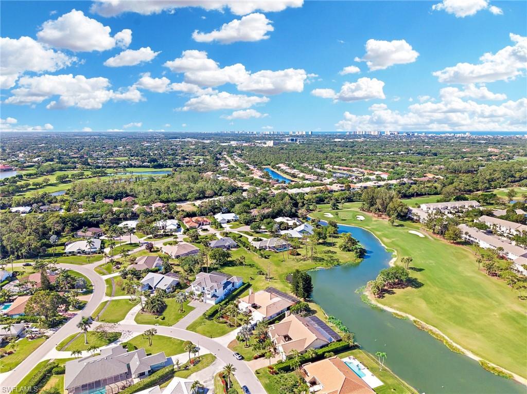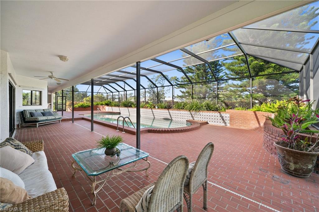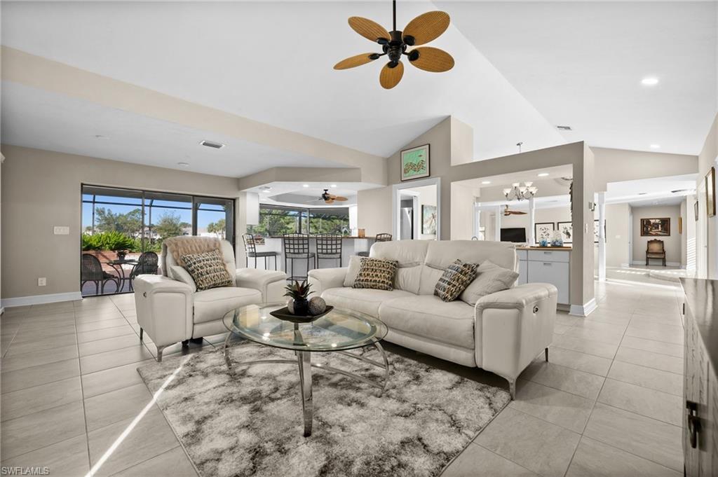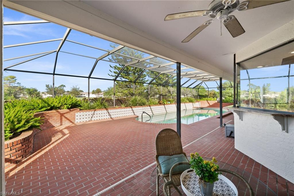 Unique & Rare opportunity .61 over half acre lot with golf & water views!! Take note most lots are only .30. Discover a harmonious blend of sophistication and serenity in this beautifully updated home. Be sure you click on Lifestyle video. The nearly 3,000 sq ft residence boasts breathtaking views of the lake and golf course. The inviting courtyard entrance makes a lasting first impression from the moment you arrive, setting the stage for the elegance that awaits inside. The grand entryway leads to the thoughtfully designed layout that is prime for entertaining and privacy, where every space exudes warmth and intimacy, from the formal living and dining rooms to the inviting family room with a cozy fireplace. A wet bar makes entertaining effortless, while the spacious kitchen inspires culinary creativity. Updates abound with wide-panel maple hardwood floors in every bedroom, custom porcelain and granite tile in the office, fully renovated bathrooms, a brand-new AC, and stylish recessed LED lighting with updated fixtures in the kitchen and baths. Three generously sized bedrooms, 2 1/2 baths and a versatile office space are strategically positioned for optimal privacy. The primary suite boasts a beautifully updated ensuite bath with a freestanding soaking tub, dual sinks, and a separate shower. Outdoor living is just as impressive. A sprawling screened lanai offers multiple lounging and dining areas, all overlooking the oversized pool. Recent updates—including brand-new tinted screening, a paved deck, and lush landscaping—enhance the ambiance of this serene retreat. Ideally located just minutes from Gulf beaches, shopping, and fine dining—with easy access to both US-41 and Livingston Rd. This exceptional home offers the perfect balance of tranquility and convenience. Schedule your private showing today!