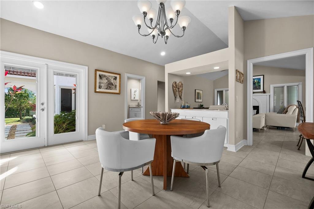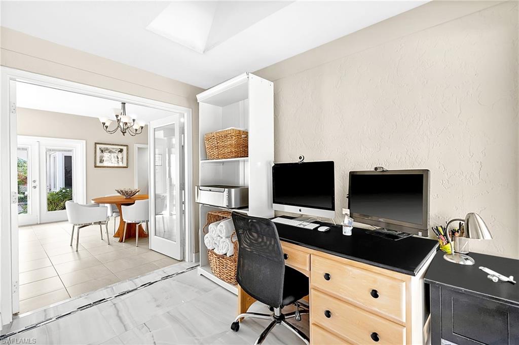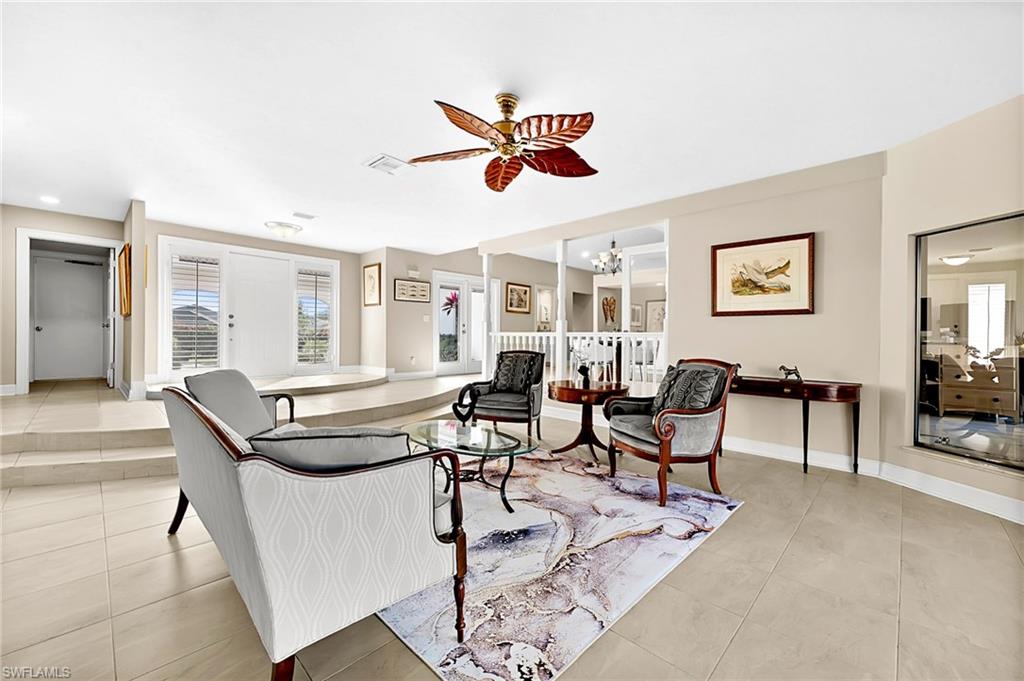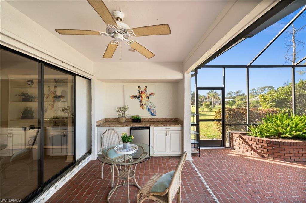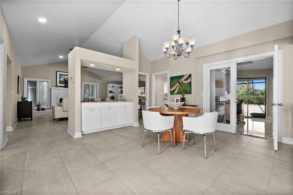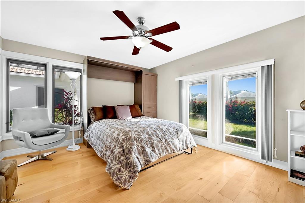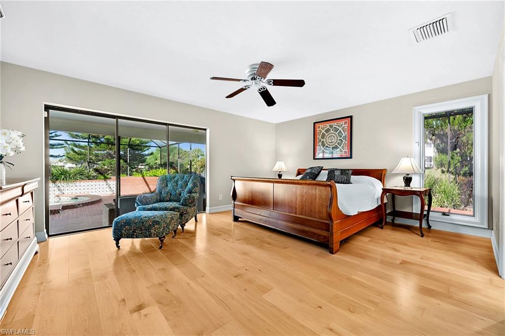 Unique & Rare opportunity .61 over half acre lot with golf & water views!! Take note most lots are only .30. Discover a harmonious blend of sophistication and serenity in this beautifully updated home. Be sure you click on Lifestyle video. The nearly 3,000 sq ft residence boasts breathtaking views of the lake and golf course. The inviting courtyard entrance makes a lasting first impression from the moment you arrive, setting the stage for the elegance that awaits inside. The grand entryway leads to the thoughtfully designed layout that is prime for entertaining and privacy, where every space exudes warmth and intimacy, from the formal living and dining rooms to the inviting family room with a cozy fireplace. A wet bar makes entertaining effortless, while the spacious kitchen inspires culinary creativity. Updates abound with wide-panel maple hardwood floors in every bedroom, custom porcelain and granite tile in the office, fully renovated bathrooms, a brand-new AC, and stylish recessed LED lighting with updated fixtures in the kitchen and baths. Three generously sized bedrooms, 2 1/2 baths and a versatile office space are strategically positioned for optimal privacy. The primary suite boasts a beautifully updated ensuite bath with a freestanding soaking tub, dual sinks, and a separate shower. Outdoor living is just as impressive. A sprawling screened lanai offers multiple lounging and dining areas, all overlooking the oversized pool. Recent updates—including brand-new tinted screening, a paved deck, and lush landscaping—enhance the ambiance of this serene retreat. Ideally located just minutes from Gulf beaches, shopping, and fine dining—with easy access to both US-41 and Livingston Rd. This exceptional home offers the perfect balance of tranquility and convenience. Schedule your private showing today!