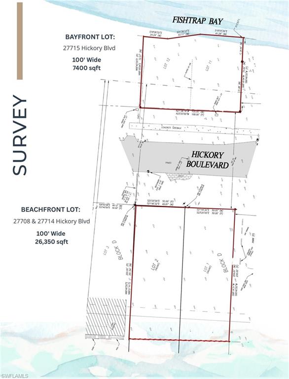 A Once-in-a-Lifetime BEACH TO BAY OPPORTUNITY on Bonita Beach! When people dream of owning a Gulf-front retreat, they imagine toes in the sand, sweeping sunset views, and the sound of the waves just outside their door. But what if that dream could be elevated? Imagine walking across the street to your own private dock, stepping aboard your boat, and cruising directly into the Gulf of Mexico. This is that rare and remarkable opportunity. For the first time, an offering unlike any other on Bonita Beach: a 100-foot wide Gulf-front lot (27708 Hickory Blvd & 27714 Hickory Blvd) paired with a 100-foot Bay-front lot directly across the street (27715 Hickory Blvd), complete with a private dock and unrestricted Gulf access. Together, they create the potential for an extraordinary Beach-to-Bay compound, blending coastal elegance with boating convenience in one seamless estate. The Gulf-front site, double the width of standard 50-foot lots, offers unmatched design flexibility, architectural freedom, and privacy—ideal for crafting an iconic custom estate without the constraints of neighboring proximity. The Bayfront lot provides endless versatility: perfect for a guest cottage, boat house, or income-producing rental. With a private dock and direct Gulf access, it elevates the lifestyle even further, creating the ultimate waterfront experience. This is more than property—it’s an opportunity to build a legacy compound that embodies the very best of coastal living—one that captures the essence of waterfront living on both sides of the shoreline.