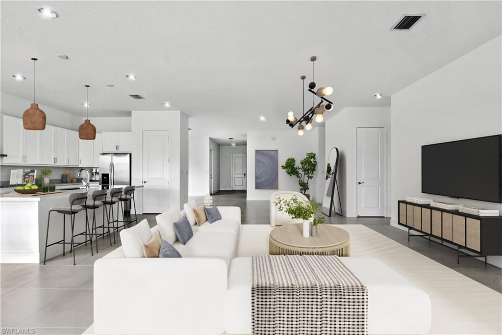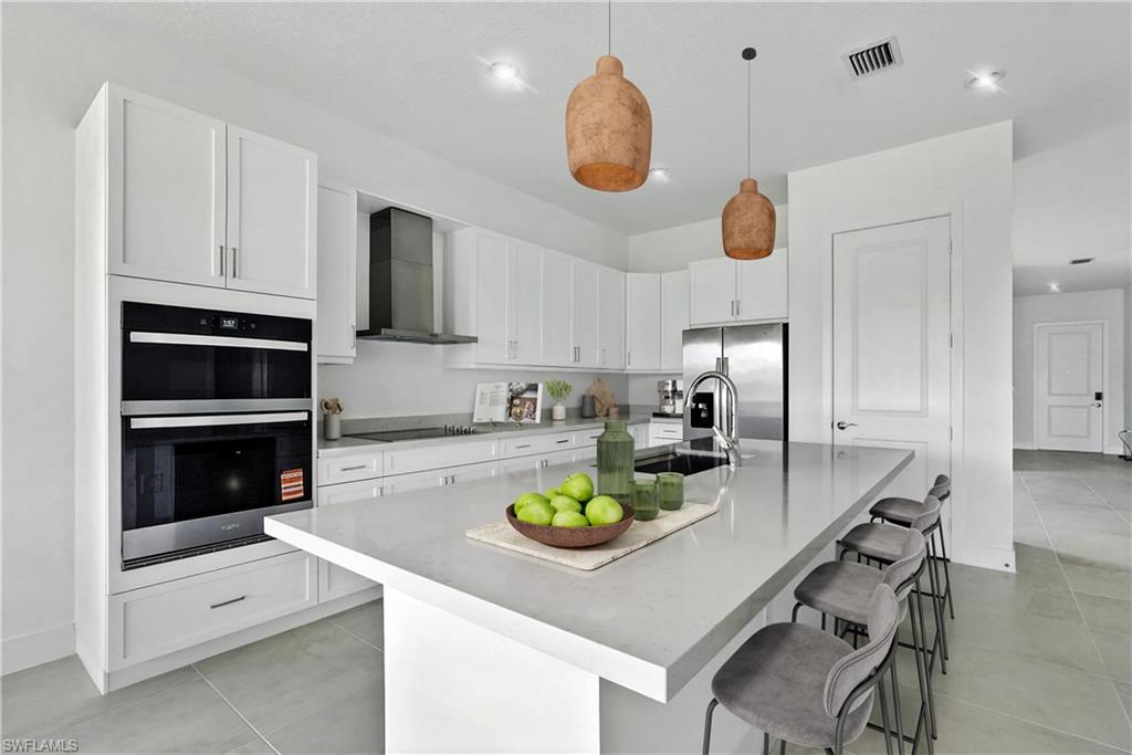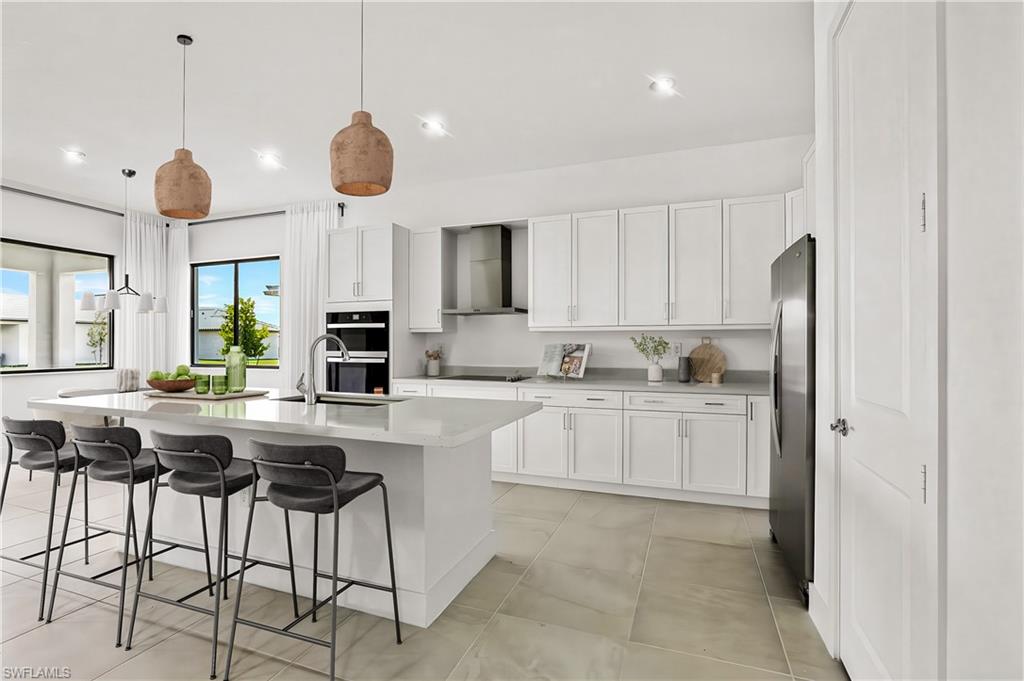 Discover this Gulf home, featuring one of the most desirable and spacious floor plans in Maple Ridge. Situated on an oversized lot with plenty room for a pool, enjoy outdoor dining from large covered terrace. Automatic sprinkler system and front and rear gutters already in place. This ready home is available for quick move-in, offering the perfect blend of style, comfort, and convenience. The chef’s kitchen showcases the premium stainless steel appliance package with exterior ventilation, stainless steel hood, cooktop, and micro/oven tower. Upgraded Level 3 cabinets include a deep cabinet and tall refrigerator enclosure panel, balanced lighting, and stunning Level 4 quartz counters with a squared edge. Undermount sinks are included in the kitchen and all bathrooms. Throughout the home, you’ll find thoughtful design touches such as impact windows and doors, extra electrical outlets, a wall-mount TV bracing package in the great room, and stucco garage walls. The owner’s suite and baths are equally elevated, huge walk in closets with upgraded cabinets in the master bath, quartz counters in all baths, upgraded tile selections in the master and secondary baths, plus a shower in lieu of a tub in Bath #2. Flooring selections include Level 5 tile in the main living areas and den, plush carpet in bedrooms, and upgraded tiles in all baths. This beautiful home is set in a prime location just minutes from shops, restaurants Publix supermarket & Ave Maria University. Community amenities include an award- winning, state-of-the-art clubhouse, gym, resort-style pool, pickleball courts, picnic & BBQ areas, walking, jogging, biking trails, and a dog park – everything you need for a balanced, active lifestyle!