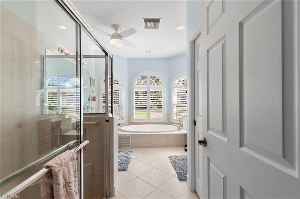 Discover elegance and comfort in this updated home located in the gated community of Forest Park. Enjoy a private pool and spa with a custom water feature, screened lanai with northern exposure, and remote-controlled storm shades for convenience and protection. Fresh paint, new luxury vinyl flooring, and a split-bedroom floor plan create a modern, move-in-ready feel. A versatile den with bamboo glass French doors offers the perfect office or flex space. The kitchen, fully remodeled in 2025, shines with brand-new white shaker cabinets, quartz countertops, under-cabinet lighting, pantry, breakfast nook, and all new stainless steel appliances. A formal dining room with crown molding provides the ideal space for entertaining. The spacious primary suite offers lanai access, a soaking tub, walk-in shower, dual vanities, and custom closets. Additional updates include a brand-new guest shower, new AC, new washer/dryer, and hurricane-impact windows. Forest Park residents enjoy resort-style amenities including a clubhouse, fitness center, billiards room, and community pool. Just minutes from downtown Naples, world-class beaches, shopping, and dining, this home perfectly balances tranquility and convenience.