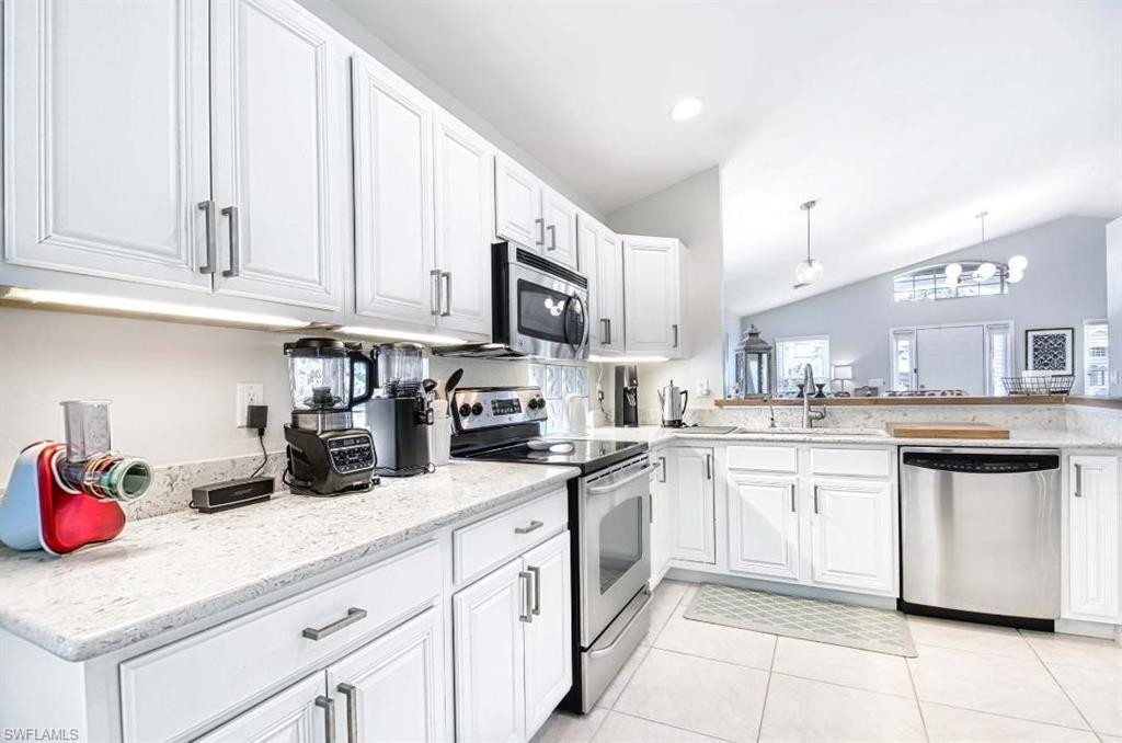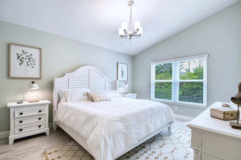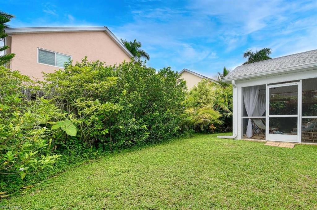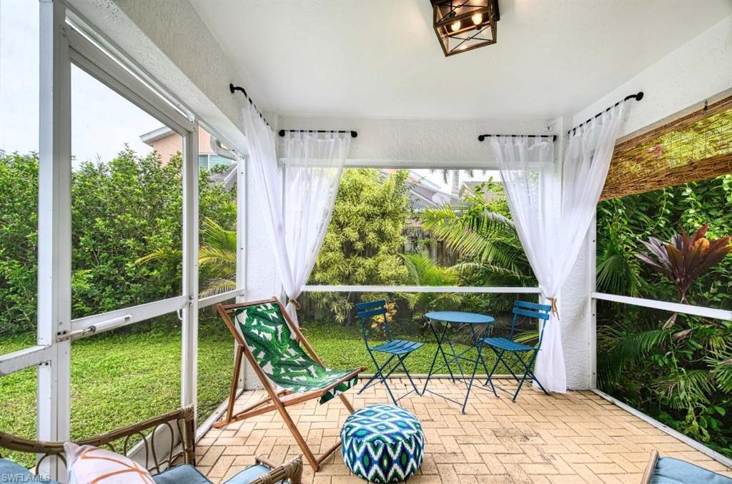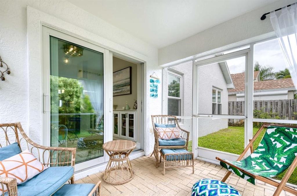 On Zillow you may see the 3D virtual tour in the facts and features section. Discover this beautifully renovated 2 bedroom 2 bathroom residence tucked away on a tranquil court in one of Naples desirable neighborhoods. Step inside to a bright, open concept living space with soaring vaulted ceilings and sunlit windows that fill the home with natural light throughout the day. Enjoy recent high-value upgrades, including a tankless water heater, central air conditioning (2018), a new shingle roof (2021), fresh interior and exterior paint (2021), all impact-rated windows and front door rolldown (2023), and elegant quartz countertops in both bathrooms (2022). An oversized one car garage flows seamlessly into a utility room with a washer and dryer, offering convenience and extra storage. Relax in the private, screened-in lanai surrounded by lush greenery, your perfect outdoor retreat. This rare detached villa in the Queen's Park Bougainvillas community offers the convenience of condominium ownership benefits with feeling of a single family house, low HOA fees covering landscaping, outside pest control, irrigation water and added peace of mind : no flooding from previous hurricanes. Flooding zone is AE. Located less than 5 miles from Naples finest beaches, shopping and dining, this move-in ready property blends comfort, convenience, and an unbeatable location. Don't miss your chance to call this adorable oasis, home. Schedule your private tour today!