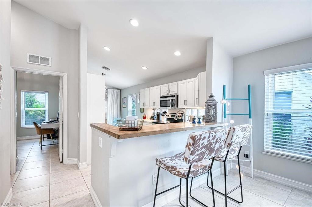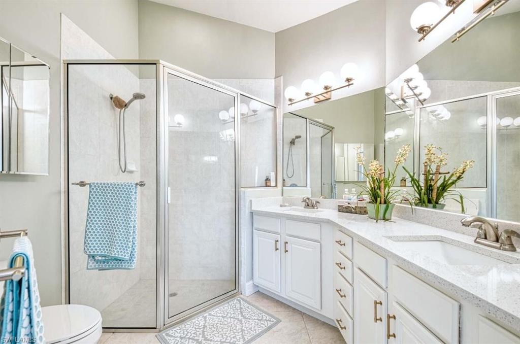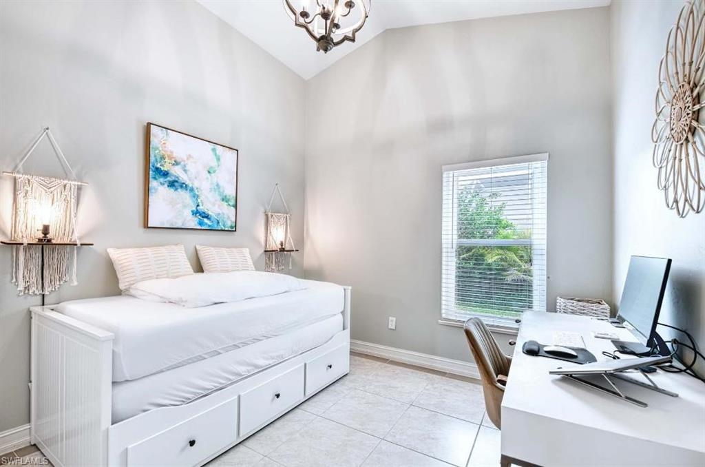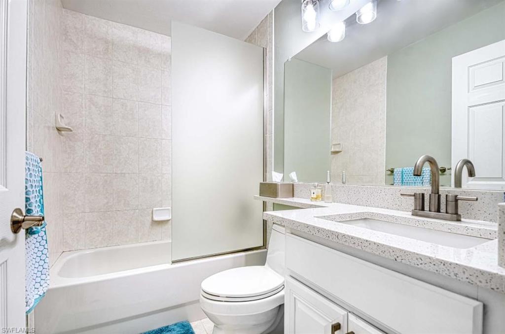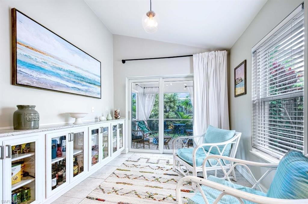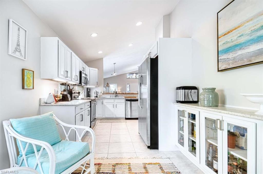 On Zillow you may see the 3D virtual tour in the facts and features section. Discover this beautifully renovated 2 bedroom 2 bathroom residence tucked away on a tranquil court in one of Naples desirable neighborhoods. Step inside to a bright, open concept living space with soaring vaulted ceilings and sunlit windows that fill the home with natural light throughout the day. Enjoy recent high-value upgrades, including a tankless water heater, central air conditioning (2018), a new shingle roof (2021), fresh interior and exterior paint (2021), all impact-rated windows and front door rolldown (2023), and elegant quartz countertops in both bathrooms (2022). An oversized one car garage flows seamlessly into a utility room with a washer and dryer, offering convenience and extra storage. Relax in the private, screened-in lanai surrounded by lush greenery, your perfect outdoor retreat. This rare detached villa in the Queen's Park Bougainvillas community offers the convenience of condominium ownership benefits with feeling of a single family house, low HOA fees covering landscaping, outside pest control, irrigation water and added peace of mind : no flooding from previous hurricanes. Flooding zone is AE. Located less than 5 miles from Naples finest beaches, shopping and dining, this move-in ready property blends comfort, convenience, and an unbeatable location. Don't miss your chance to call this adorable oasis, home. Schedule your private tour today!