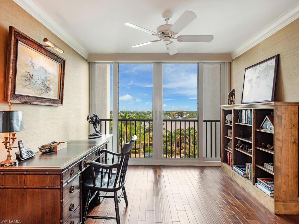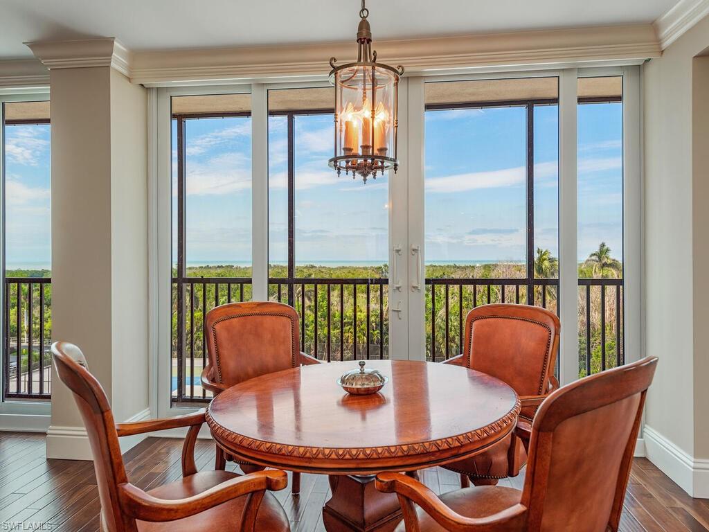 This spacious and beautifully renovated residence offers comfort and privacy, with over 3,100 air-conditioned square feet of living space. A pleasant surprise to see that the 4th floor is a 6th FLOOR VIEW, due to the unique ELEVATED design of the building. Bask in breathtaking SUNRISE and SUNSET GULF views from every room, thanks to west, north, and east exposures. The heart of the home is the true GOURMET kitchen equipped with a Sub-Zero refrigerator, induction cooktop, built-in wine/beverage refrigerators and exquisitely HANDCRAFTED cabinetry. Warm wood flooring flows throughout the main living areas, which include three generously sized bedrooms with generous closet and storage space, a versatile den, and a cozy family/TV room. The home is outfitted with ALL IMPACT-RATED FLOOR to CEILING SLIDERS and WINDOWS for safety and peace of mind. The Stratford is Boutique Tower with only 81 residences, tucked away off the main thoroughfare, but with IMMEDIATE BERM TO BEACH ACCESS. Celebrated for its sophisticated style and amenities, including a large pool and spa, summer kitchen, fire pit, pickleball and tennis courts, a state-of-the-art fitness facility, and chic social room for gatherings. As a resident of Pelican Bay, you’ll enjoy exclusive DIRECT access to all its premier amenities, including two private BEACHFRONT restaurants and bars, attended beach service, kayaks, paddle boards, 18 Har-Tru tennis courts, Pickleball, an advanced fitness center, and scenic nature trails for walking and biking. Perfectly situated near Artis Naples, Waterside Shops, and Mercato, this residence provides unparalleled convenience to world-class shopping, dining, and entertainment options.