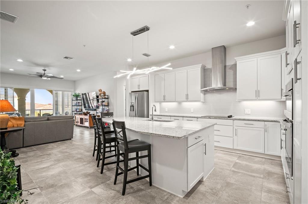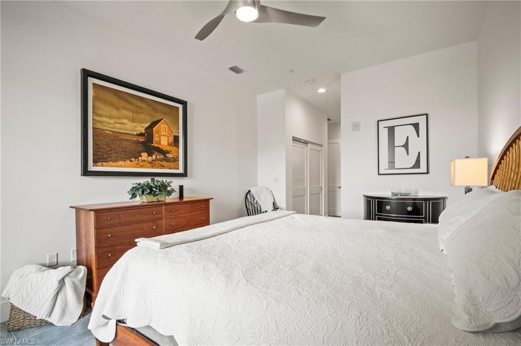 Introducing the highly sought-after fourth-floor end unit penthouse condo you've been dreaming of! This pristine two-bedroom, two-bathroom residence combines luxury, comfort, and convenience in one of Southwest Florida’s most desirable locations. Step inside to discover a bright, open floor plan flooded with natural light thanks to its prime southern exposure. The contemporary, spacious living area seamlessly connects to a stylish white kitchen with a 9Ft extended Island and dining space, creating an inviting atmosphere for both relaxation and entertaining. The generously sized primary bedroom features double closets and leads to a spa-like ensuite bathroom complete with a large shower and dual vanities. Your guests will appreciate the privacy of a separate guest bedroom and bath, while a spacious laundry room offers additional storage solutions. One of the standout features of this condo is the expansive two-car garage with an epoxy floor—an uncommon find! Plus, for extra storage, this unit comes with two additional storage spaces, ensuring you have room for all your belongings. Additional highlights include impact-resistant windows and doors, an electric hurricane screen and plantation shutters, and the benefit of no flood insurance required. The community exudes a welcoming vibe and boasts meticulously maintained amenities, such as a resort-style community pool, indoor lap pool, fitness center, bocce court, sauna, and ample walking paths. With Estero Community Park right next door, you’ll enjoy a peaceful and enriching lifestyle. Conveniently situated near shopping, dining, beautiful beaches, RSW airport, and a wealth of recreational activities, this is your chance to embrace the pinnacle of modern living. Don’t miss out! PLEASE VIEW THE ATTACHED VIDEO!