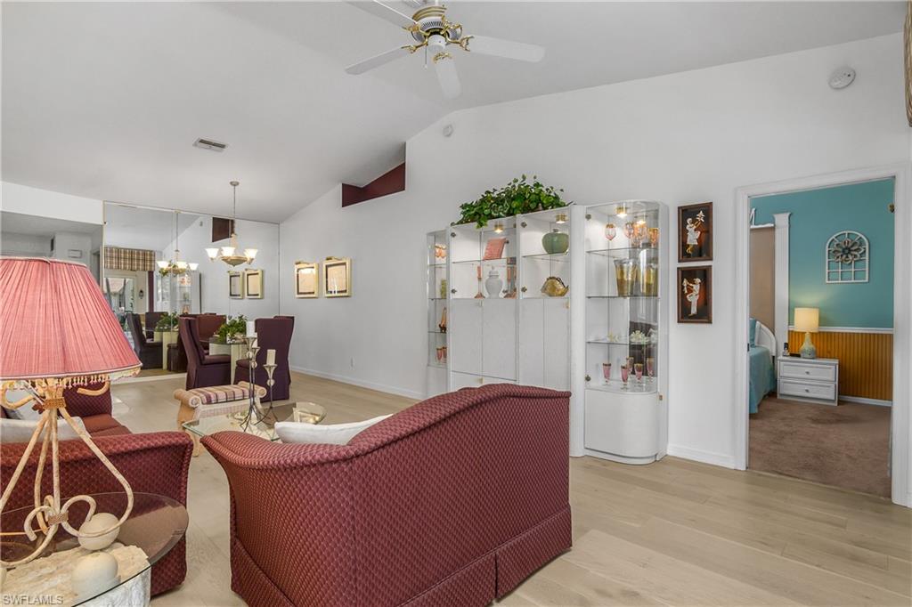 Welcome to this beautifully maintained second-floor residence in the Strand that offers 2 bedrooms, 2 baths, plus a versatile den-ideal for a home office or guest space. Lovely, light and bright eat-in kitchen to enjoy your morning coffee, and open great room and dining room ideal for entertaining . The open, light-filled floor plan features wood and tile floors in the main living areas, soft carpet in the bedrooms, and an air-conditioned glass enclosed lanai that extends your living space while showcasing peaceful lake and pool views showcasing an outstanding view of our lake along with three cascading waterfalls plus pool and clubhouse. A new roof adds peace of mind. The Strand is one of Naples premier gated communities, known for its newly remodeled clubhouse, outstanding dining, golf tennis, pickleball, fitness center and endless social activities. With its prime location and resort-style amenities, this condo is the perfect blend of comfort, style and Florida living. Don’t miss this one!!!!