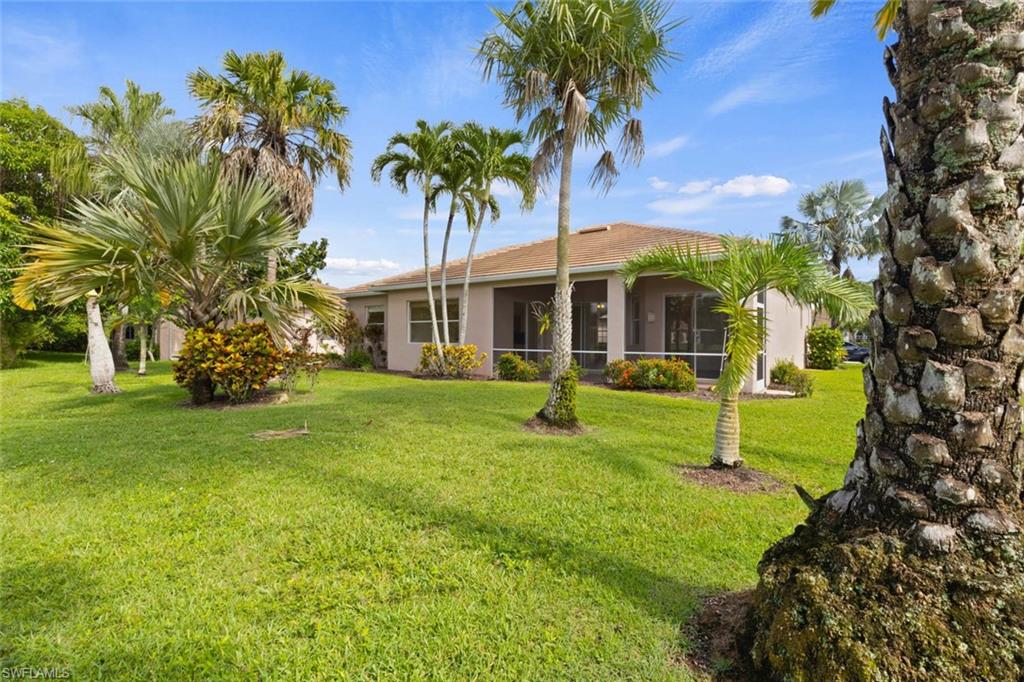 Lowest price in Waterways!! Freshly Painted inside, Oversized Lot with Water Views + 2 Car Garage, No Flood Insurance Needed! New Roof in 2019, 3 Beds + Den, 2 Bath home on a Cul-Du-Sac has a beautifully lush landscaped yard, tile throughout (no carpet), updated kitchen with granite countertops and large screened lanai. Backyard is huge with enough room to build your dream pool! Enjoy this open concept floor plan with a den you can use as a study and huge primary suite. Waterways of Naples is one of North Naples most desired gated communities surrounded by 150 Acres of Lakes, known for its LOW HOA Fees ($236/month) & countless amenities: Cable & WIFI included, Boat/RV Storage Lot, Community Pool, Fishing Pier, Fitness Center, Tennis Courts, Playground and Basketball Court. Conveniently located next to VPK-12 Schools, Publix, Big Corkscrew Regional Park and tons of new development.