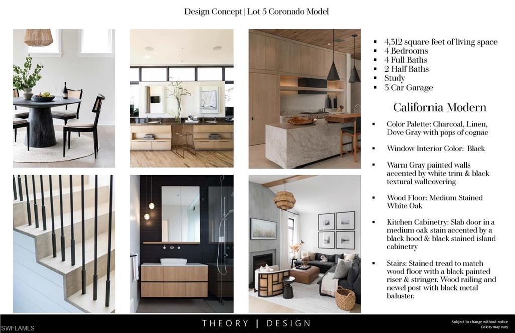 FULLY FURNISHED HOME READY EARLY WINTER 2026. Seagate Development Group and Theory Design present the professionally designed and furnished Coronado Model Custom Home in Palisades, one of Seagate’s newest, gated communities in the heart of Naples. This custom home is a collaboration between Seagate Development Group and Theory Design with Architecture by JMDG Architecture, and custom landscape & hardscape design by Outside Productions. Enjoy a modern design with charcoal, linen and dove gray tones, warm stained European White Oak flooring, and wood and wall covering accents throughout. This custom home features 4 bedrooms, study, clubroom, 4 full and 2 half baths, and an oversized 3-car garage. The outdoor living area features electric roll down screens, tongue and grooved stained ceiling, outdoor kitchen, lounge space, pool bath, custom pool with spa and lush landscaping. The main floor has an open floor plan with double stepped tray ceilings throughout. The gourmet kitchen includes custom stacked cabinetry, natural stone backsplash, custom hood, island with waterfall countertop, paneled Sub Zero/Wolf appliance package. The master suite features a sitting area with sliding glass doors leading to the covered lanai. The master bathroom features honed marble floors and comes equipped with Kohler plumbing fixtures including a private water closet, dual vanities, soaking tub, and spacious shower with 3 showerheads. The custom staircase leads to the second floor which offers 2 VIP guest suites and a clubroom with a built-in bar with undercounter beverage fridge. Additional luxury features include 9.45” European White Oak wood floor throughout the main floor and clubroom, custom built-in closets, 1 ¾” solid interior doors, Emtek door hardware, linear HVAC diffusers in common areas, level 5 drywall, double pane Andersen impact windows & doors, Control4 home automation system, sound system, spray foam insulation, custom iron front door, natural gas, lush landscaping, and interior designer selected custom light fixtures and furnishings. Palisades is an enclave of 25 custom homes situated in a premier Naples location with abundant amenities. Palisades is only minutes away from Mercato, Waterside Shops, 2 Ritz-Carltons, and other exceptional shopping, dining, and beachfront destinations. Seagate’s portfolio of companies specialize in custom homes, renovations, interior design, estate management, and land development. Together, bringing exceptional concierge levels of service to everything we do. SALES CENTER OPEN DAILY. This listing contains rendering photos.