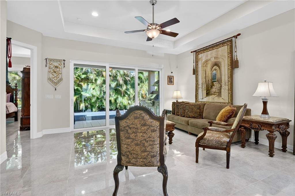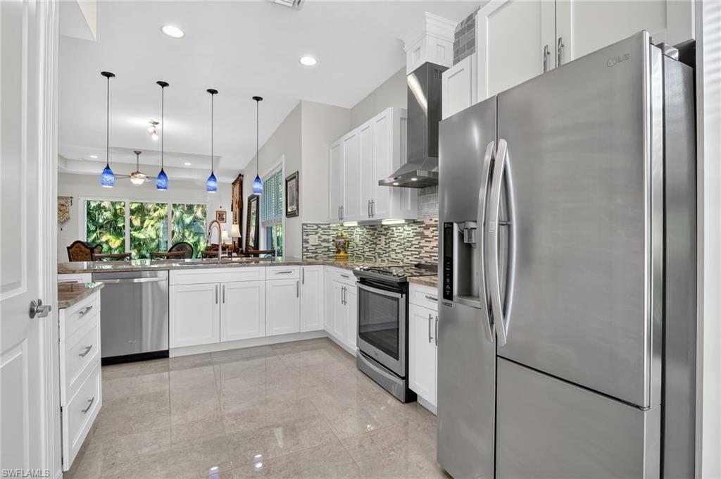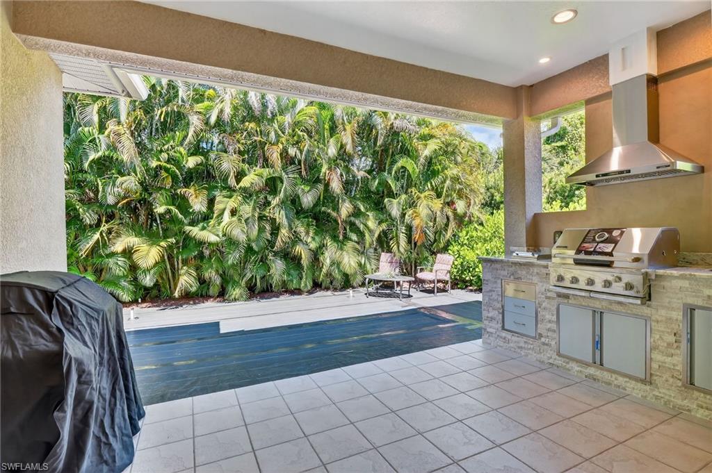 STUNNING BUILDER'S PERSONAL HOME: BUILDER/OWNER UPGRADES ($300,000+/-)! THIS 3 BEDROOM, 3 BATH, 2 CAR GARAGE HOME HAS IT ALL INCLUDING HIGH 12' CEILINGS AND 8" DOORS. THE ENCLAVE, a small private, gated development situated in "Naples Newest Arts, Food & Wine" District! Big open floor plan with all IMPORTED 24" TILE FLOORS THROUGHOUT THE WHOLE HOME FOR EASY MAINTENANCE. "CHEFS" kitchen with WHITE SHAKER CABINETRY, LEVEL 5 GRANITE TOPS, ALL STAINLESS STEEL HIGH END APPLIANCES. Master Bedroom has HIS & HERS WALK-IN CLOSETS, DUAL VANITIES, GLASS & TILE WALK-IN SHOWER. Both guest rooms have en-suite bathrooms for complete guest & family privacy. All windows have custom finished "LEVOLOR" Mini blinds and all lighting is additionally upgraded. Dining room has a custom "Wet Bar" with large commercial sink, 42" wall units and granite top finish. ALL WINDOWS AND DOORS ARE "IMPACT" HURRICANE RESISTANT. Home has central vac system, NEW A/C, NEW WATER HEATER, AND SURGE PROTECTORS TO THE ELECTRICAL PANEL. Out side lanai has a beautiful NEW SUMMER KITCHEN, with stainless steel sink, steel doors and drawers, 6 burner w/63,000 BTU's, Rotisserie w/18,000 BTU's, steel mounted hood w touch-less activation, granite top and custom marble ledger stacked stone finish and all mounted against a new Hurricane installed wall. Rear yard a 12" x 24" cement perimeter footing w/rebar, is cage screen ready and already installed "rain water" drainage system for the cage area. Driveway and walk way are all paver stone that has been sealed and sanded and gives the home a beautiful curb appeal. With its prime location just minute ride to NAPLES FAMOUS BEACHES, shopping, dining, and entertainment options in the nearby areas close to world known 5th AVENUE and old Naples Bay, this home truly embodies the best of Naples living. AND WILL BE EASY TO SEE IT'S VALUE IMMEDIATELY. The open floor plan allows for seamless indoor-outdoor living, with ample natural light pouring in from every angle. The beautifully landscaped yard blends with outdoor kitchen and covered lanai, offers a serene retreat for relaxing or entertaining guests. this home has mature lush landscaping on both sides and offers complete privacy. Home buyers Warranty Included, for total buyer comfort. SELLER OFFERING A $2,500 CREDIT FOR COMPLETION OF SIDE YARD PAVER STONE.
