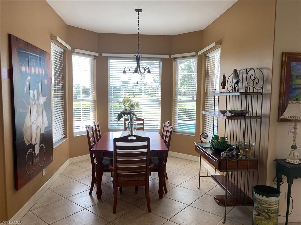 Welcome to this spacious 4-bedroom, 3.5-bath residence, the largest two-story home in the highly sought-after private, gated community of Spanish Wells. Perfectly positioned on the 8th hole of the east golf course, this home combines comfort, functionality, and resort-style living. Step inside to a vaulted foyer and living room flooded with natural light. The open layout flows seamlessly into the spacious kitchen, dining, and living areas, making it ideal for both family living and entertaining. Tile flooring runs throughout, creating a timeless and low-maintenance finish. The primary bedroom is located on the first floor and features an en-suite bathroom with a soaking tub, walk-in shower, and dual vanities. A guest bedroom is also conveniently located downstairs. Upstairs, you’ll find an open loft space with access to a private lanai patio, along with two additional bedrooms/office and a full bath—perfect for family or guests. Outdoors, enjoy a screened-in pool with desirable southern exposure, overlooking serene golf course views. An outdoor shower and pool bath completes the space. The three-car garage provides ample storage and parking. A new roof (2019) and hurricane impact-resistant windows add peace of mind. The Main Air conditioning unit is 6 months old with a 10 year warranty and the left side one was replaced last year with a 10 year warranty. Main water heater replaced in 2021 and smaller one. was replaced in 2020. Spanish Wells offers a 24-hour guarded security gate and low HOA fees that include basic cable and internet Residents enjoy access to a 27-hole championship golf course (membership optional, not mandatory), pickleball courts, tennis courts, a fitness center, and a clubhouse with a restaurant. You’re just minutes from the beach and close to premier destinations including Mercato, Coconut Point, and the upcoming Downtown Bonita Springs and close to RSW airport. Memberships are available to purchase for different activities at the Club but are not mandatory This property also presents a fantastic investment opportunity, as rentals are permitted up to 12 times per year with a 30-day minimum lease.