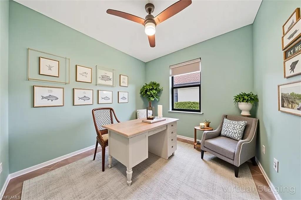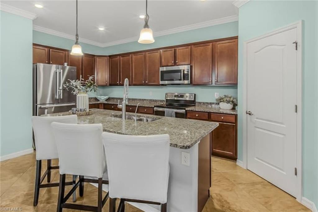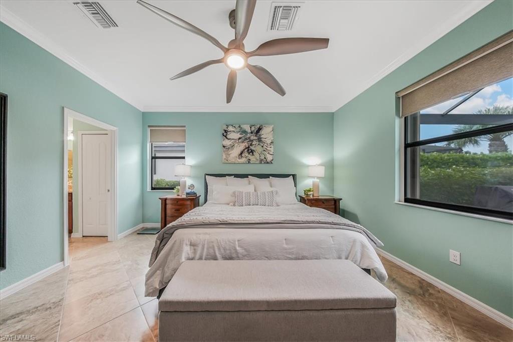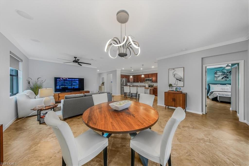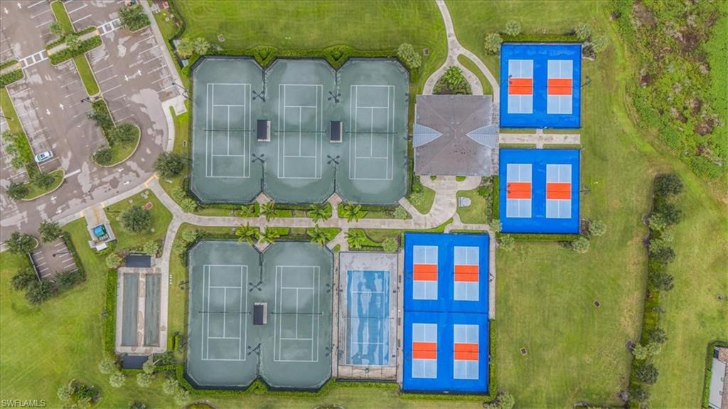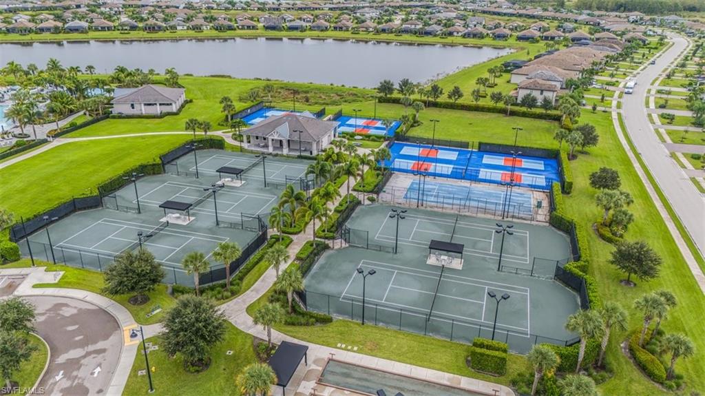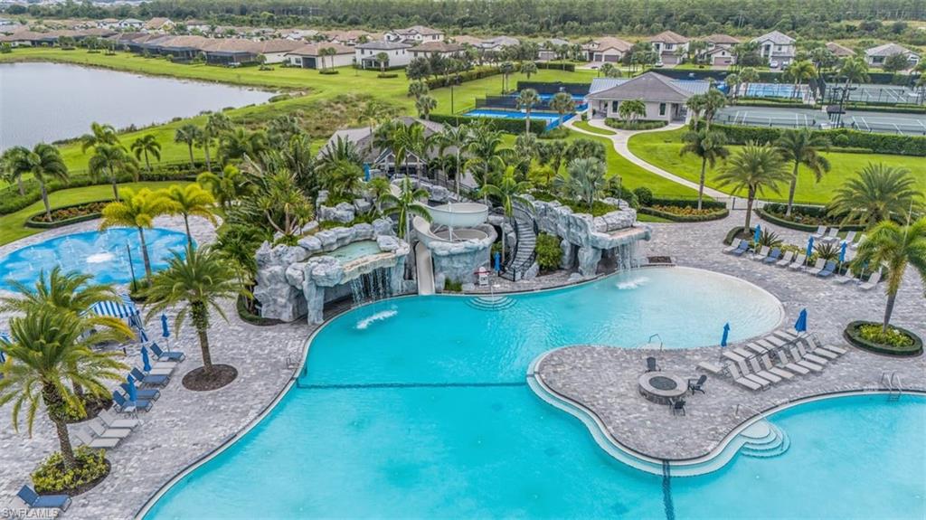 NORTHWEST LAKEFRONT VIEWS, CUSTOM POOL & SPA, WHOLE HOME GENERAC GENERATOR, ATTACHED ACCORDIAN HURRICANE SHUTTERS, STORM SMART HURRICANE SCREENS ON THE LANAI- this home is FULLY LOADED WITH HIGH END UPGRADES!!! Offering 3 BEDROOMS + DEN, 3 FULL BATHS, AND 2,032 SQFT of interior living space this stunning home blends the best of SW Florida living with peace of mind. Additional UPGRADES include TILE FLOORING THROUGHOUT, BOSCH KITCHEN APPLIANCES, SURROUND SOUND SPEAKER SYSTEM, CUSTOM WOOD PANTRY SHELVING, and a WHOLE HOME REVERSE OSMOSIS SYSTEM. The primary suite offers DUAL WALK-IN CLOSETS WITH CUSTOM SHELVING (one with a built-in ironing board), a soaking TUB, and frameless glass shower. The GARAGE is INSULATED & AIR-CONDITIONED WITH EPOXY FLOORS, OVERHEAD RACKS, & ATTIC STORAGE—ideal for hobbies or valuables. Step outside to your private oasis: a 3-SIDED PANORAMIC SCREEN ENCLOSURE, no-see-um screening, a HEATED POOL & SPA, additional lanai privacy screens, plus the OUTDOOR FURNITURE & TV IS INCLUDED —perfect for entertaining on day one! Located in the highly sought after resort style community - THE PLACE AT CORKSCREW - where you will enjoy WORLD-CLASS AMENITIES: a resort-style pool with 100’ WATERSLIDE & SPLASH PAD, poolside RESTAURANT & BAR, 2-story FITNESS CENTER, movement studio with daily classes, TENNIS, PICKLEBALL, BOCCE, BASKETBALL, VOLLEYBALL, CAFÉ, BOURBON BAR, DOG PARK, and more. Just 10 minutes to shopping, dining at Miromar Outlets and Gulf Coast Town Center, 15 mins to RSW AIRPORT, and 40 mins to Southwest Florida’s top beaches. All the projects are DONE! Just move in and start enjoying a low maintenance and stress free lifestyle!