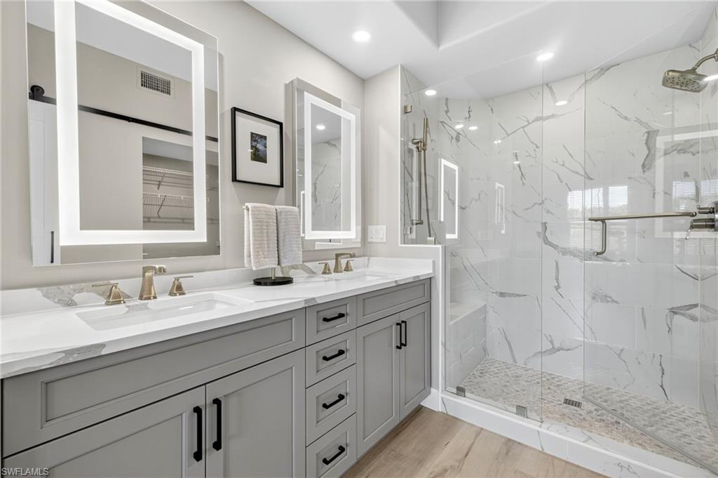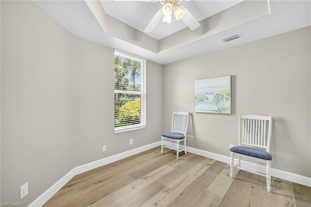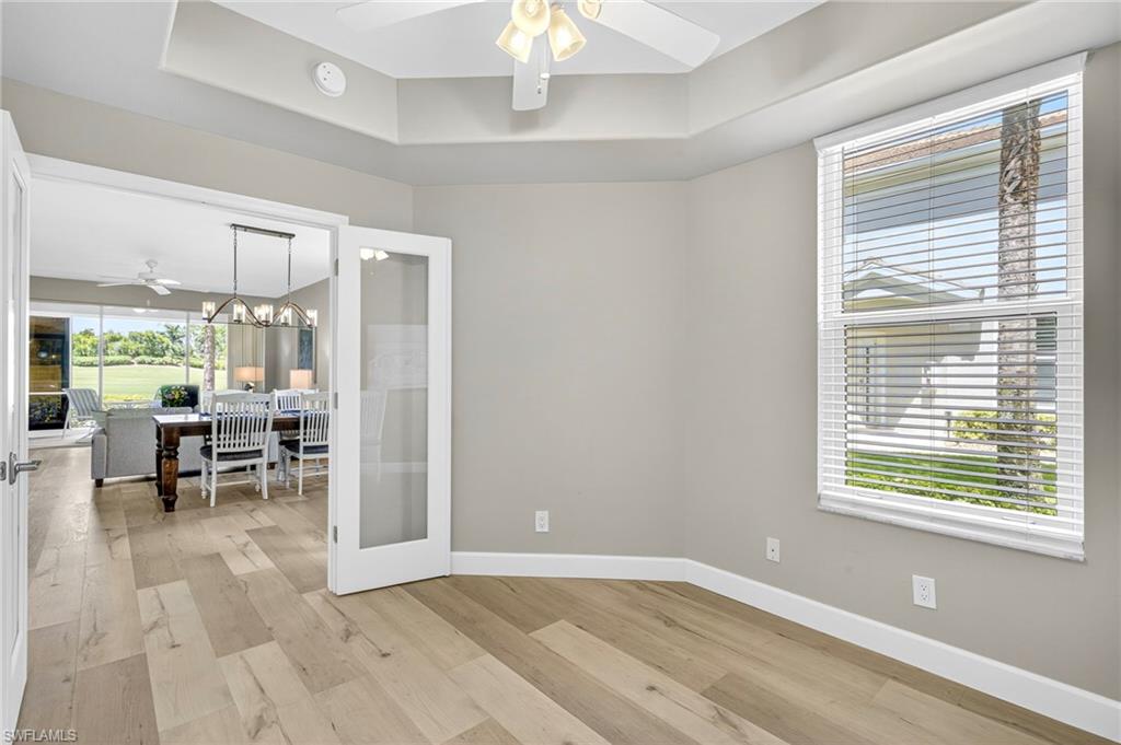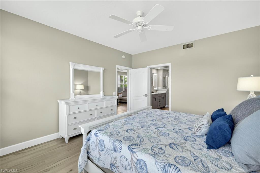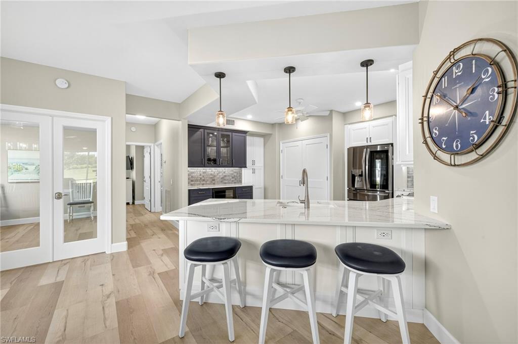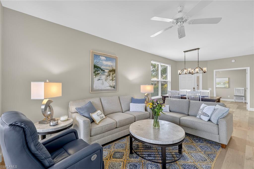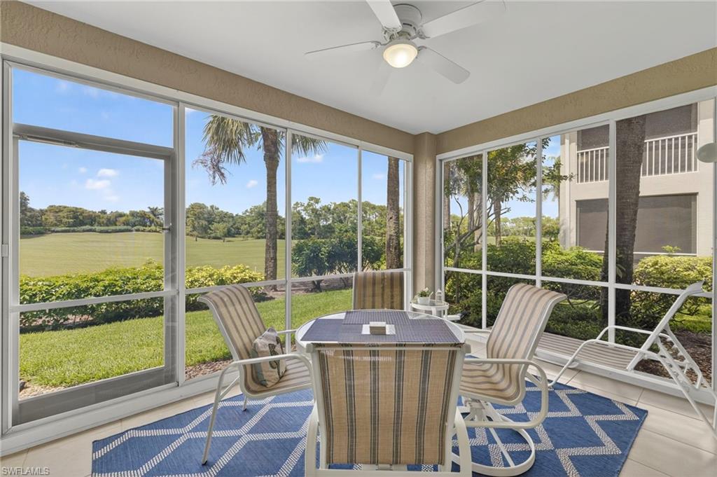 Stunning Renovated 1st-Floor Corner Unit in Spring Run at The Brooks – Sunset Stream Welcome to this beautifully reimagined 2-bedroom plus den residence, fully remodeled top-to-bottom with new finishes and thoughtful design. Overlooking the 8th green of Spring Run's coveted golf course, this home blends modern updates with a comfortable, move-in-ready feel. Inside, you will find quartz countertops, luxury vinyl plank flooring, modern new lighting, mirrors, hardware, and interior doors throughout. The kitchen is equipped with pull-outs in every cabinet including the pantry, LG dark stainless appliances and a built-in bar with wine fridge. The generous living space opens to a lanai with seamless screens and sweeping views of the 8th fairway—a serene backdrop for both relaxation and entertaining. This residence is offered turnkey with designer furnishings, blending style and comfort for a truly move-in-ready opportunity. Added peace of mind comes with a 2019 roof, 2021 impact windows, 2022 Hurricane rated front door with sidelight, 2025 HVAC with UV light and electrostatic filter, and all newer appliances. Beyond the home itself, Spring Run at The Brooks offers an enviable lifestyle with championship golf, vibrant social opportunities, clubhouse dining, tennis, bocce, and fitness amenities—all just minutes from fine dining, upscale shopping, and Gulf beaches. Optional memberships to The Commons Club offer access to private beach facilities, pickleball, dining, and more. Don’t miss this rare opportunity—schedule your private showing today!