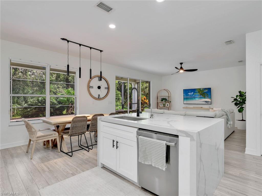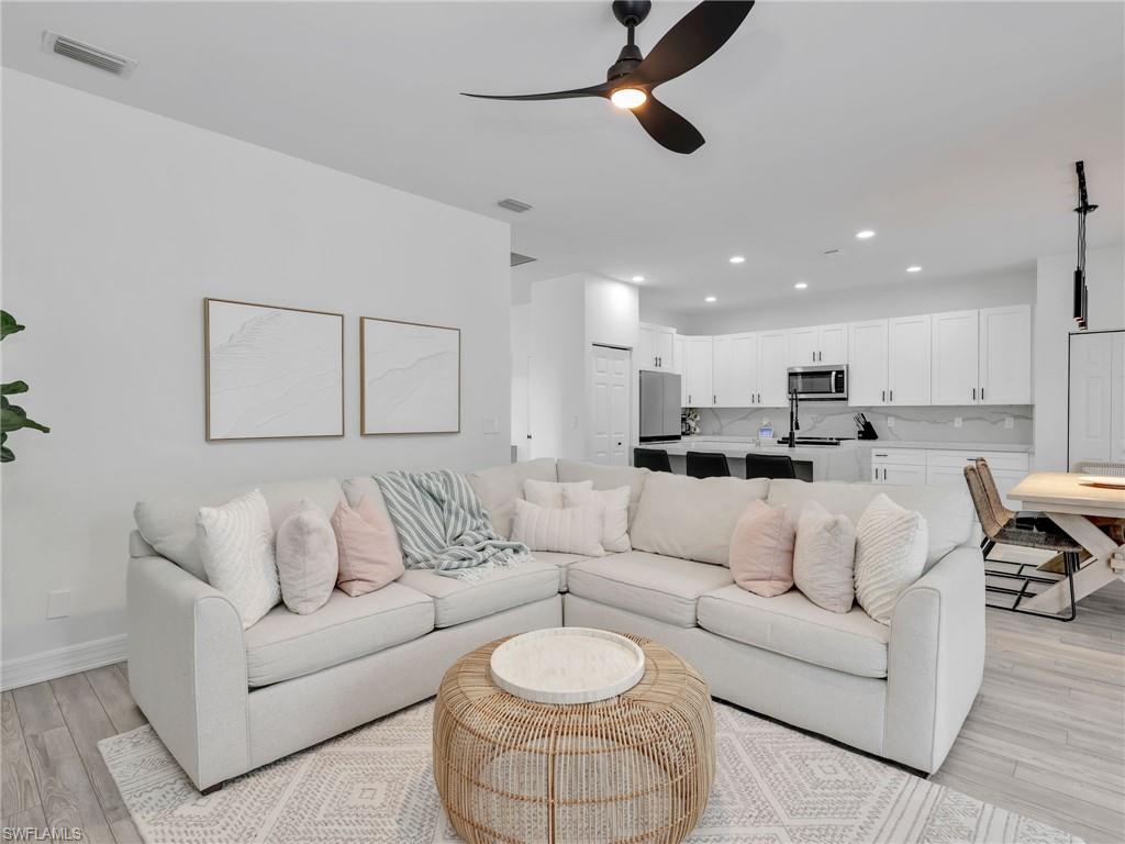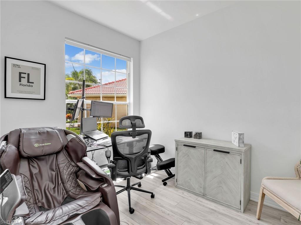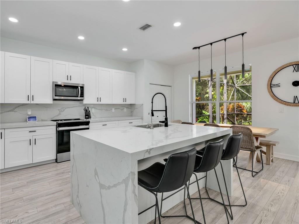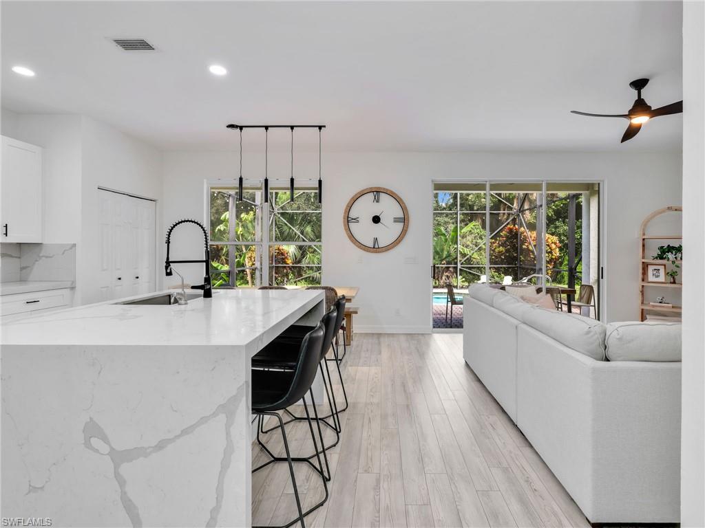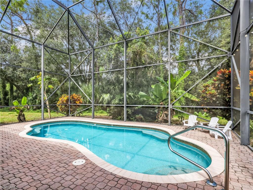 THIS HOME WILL TAKE YOUR BREATH AWAY!! Stunning North Naples POOL home, 4BR+DEN, RENOVATED KITCHEN, FLOORING, & BATHS! CULDESAC LOT, HUGE YARD backing to woods, and peaceful lake views!! Interior freshly painted! Unique Pool cage with upper deck off Master Bedroom where you can enjoy views of the pool and the woods while you sip a beverage or read a book! Light, bright interior with modern neutral accents and updated light fixtures. Convenient first floor DEN allows for a private workspace away from the bustle of the Kitchen/living areas. All 4 bedrooms are upstairs, including a spacious Primary suite with your own private balcony overlooking the pool and backyard, and views of the community lake! This home is in pristine, move-in condition! Beautifully decorated and furnished, and the Seller is willing to negotiate the furnishings separately, as well. ROOF has just been power-washed!! "Saturnia Lakes" Community Clubhouse and Amenity Center offers endless activities that will appeal to all ages, with 2 pools, Kids play pool & playground, Lap pool, putting course, Tennis, Basketball, Pickleball, Fitness center, Pool tables, Card & game room, Grand Ballroom, Sauna/Spa, Internet Cafe, walking paths, and HOA office onsite! Quick drive to the beautiful Gulf Beaches and Sunsets!! This is SOOO much more than a home, this is a lifestyle that you will want to enjoy!!