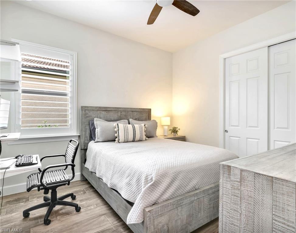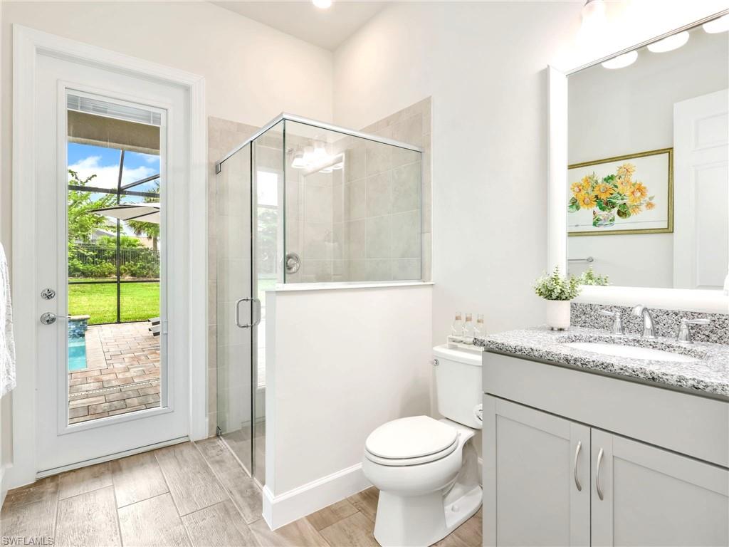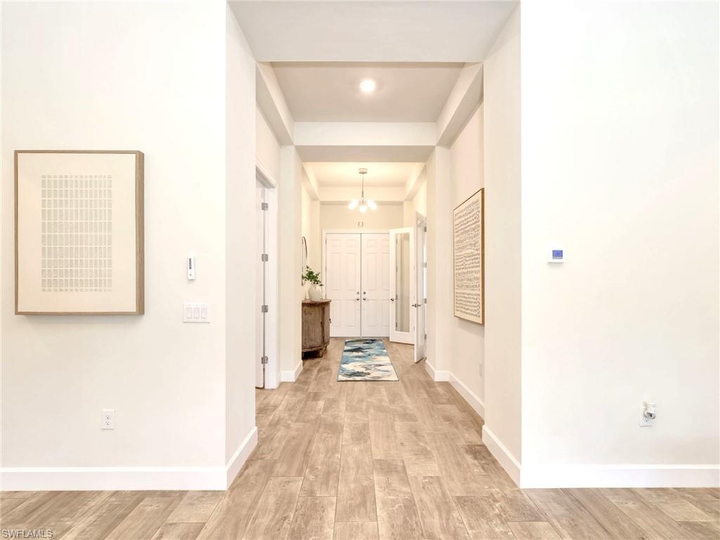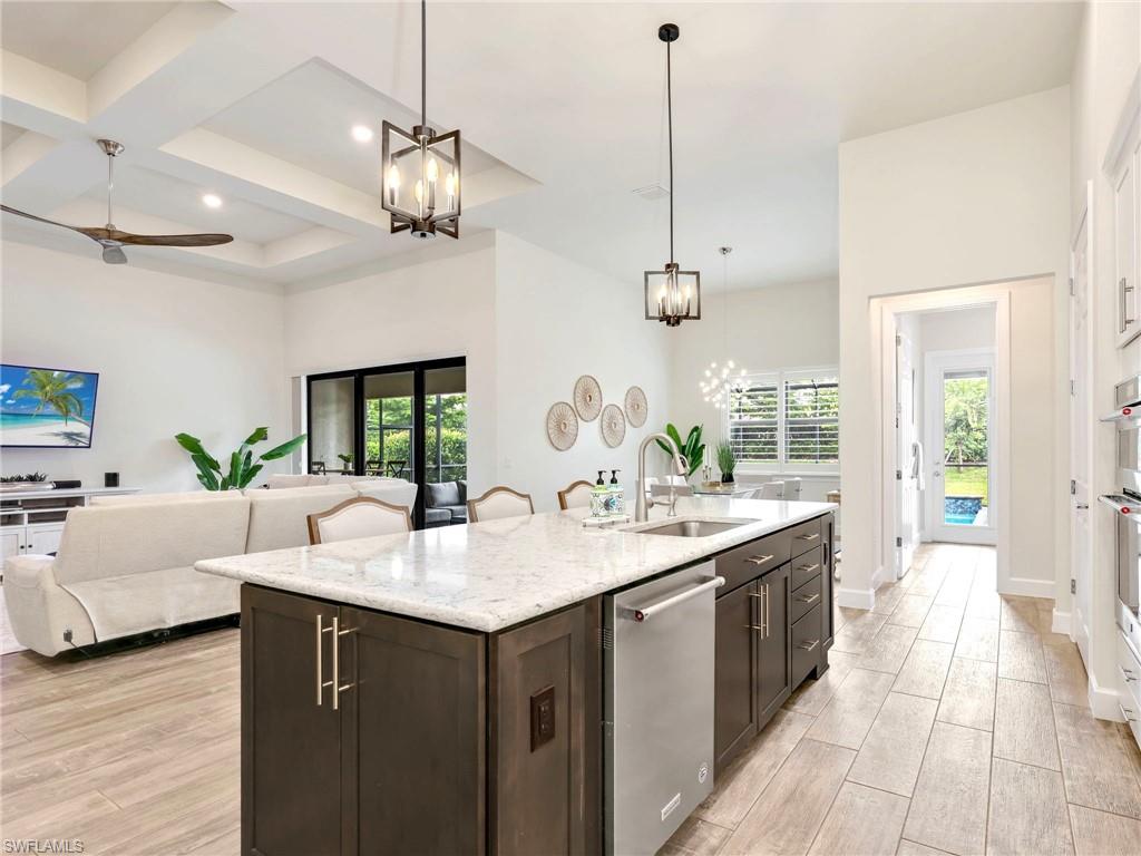 A rare offering of the coveted Clubview floorplan, a spacious single-level home featuring nearly 3,100 Sqft, 4 full bedrooms, 3 full baths (one with direct access from lanai) and two separate flex rooms with French doors for additional privacy. Because of the versatility of this floorplan, it can accommodate a growing family, offer a convenient mother-in-law suite or be that perfect vacation retreat for the whole family. Enjoy a private outdoor oasis with an oversized covered lanai, extended patio, custom heated saltwater pool & spa, tranquil fountains, plus an outdoor kitchen with built-in grill, fridge, and prep sink perfect for entertaining. Outside, lovely curb appeal includes a stone-accented façade, spacious front porch and hurricane-impact windows and doors. Inside, the owner’s suite impresses with dual custom walk-in closets rarely found in this community, premium plant tile flooring throughout (no carpet), a gourmet KitchenAid kitchen with built-in cabinetry and appliances, comfortable air-conditioned 3-car garage with attic storage and the owner’s suite with dual custom walk-in closets add exceptional convenience. Corkscrew Shores is a lakefront resort-style community packed with organized activities and events, pickleball, tennis, bocce, a restaurant and bar, a fishing pier, firepits, walking trails, kayak/canoe launch and a 240-acre sparkling lake at the heart of the community. Only 15 minutes to SWFL airport and close to Hertz Arena, Gulfcoast Town Center, FGCU, Coconut Point Mall, Miromar Outlets and so much more. No flood zone, No additional CDD fees and no club fees.