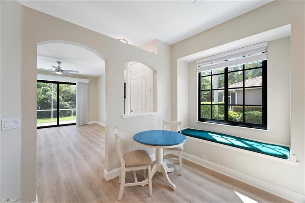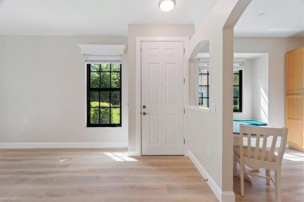 Welcome to The Preserve at The Shores! This beautifully updated 3-bedroom, 2-bath end-unit villa offers the perfect blend of comfort, convenience, and peace of mind. Move right in and enjoy upgrades throughout, including a newer roof, impact-resistant windows and doors, new hot water heater, custom wood window cornices, luxury vinyl plank flooring and new baseboards throughout. The light and bright interior features all-new fixtures and ceiling fans, giving the home a modern, fresh feel. The spacious floor plan includes a private attached garage, generous living and dining areas, and a well-appointed kitchen ready for your personal touch. As an end-unit, you’ll enjoy extra privacy and natural light, along with the ease of low-maintenance living in this gated community. The Shores offers resort-style amenities, including a clubhouse, fitness center, sparkling community pool, tennis, bocce and pickleball courts —all just minutes from shopping, dining, and Naples’ beautiful Gulf beaches. Whether you’re looking for a year-round residence or seasonal retreat, this villa is ready to welcome you home. Just bring your bags!