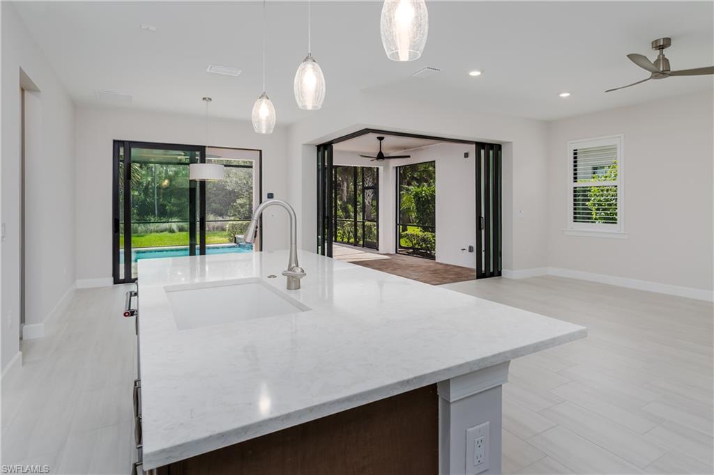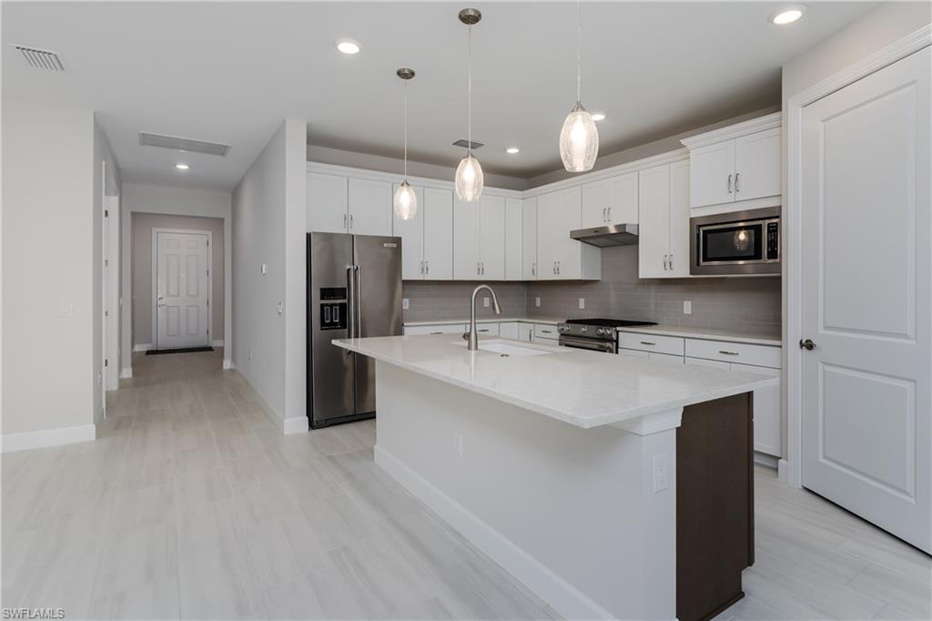 Sense the comfort and beauty of this magnificent home the minute you enter the foyer and see the view out to the inviting pool and spa. This 3 bedroom, plus separate den, great room floor-plan is perfect for entertaining or just a lovely place to call home. These original owners have impeccably maintained the home making it feel brand new. Built in 2021 it boasts a chef's delight kitchen with stainless steel appliances, center island and breakfast bar, natural gas cooktop/range, pull-out drawers, quartz counter-tops, recessed and pendant lighting, and more! The cook of the house will love it! The great room and dining area are adjacent to the kitchen. An extra plus is the den with double raised paneled doors and a window for natural light. The main bedroom is approx 14' x 16' and sits on its own separate wing from the other bedrooms. You will love the main bathroom with its 9' x 3'3" tiled shower with multiple shower heads, dual sinks, quartz counter-tops, walk-in closet and separate toilet closet. It is very spacious! Another plus to this home is the zero corner doors off the great room extending your great room out to your covered lanai. The extended lanai is all plumbed for the outdoor kitchen of your liking. Enjoy the Florida sunshine in your pool and spa in the privacy of your own backyard which backs up to a preserve. Some of the other features of this lovely home are a 9' x 7' laundry room with cabinets, folding counters, sink, and storage closet, 2 car garage with a 4 foot extension and epoxy flooring, and impact resistant windows and sliders. The home boasts beautiful tile and light colors throughout. The white plantation shutters in many of the rooms add to the character of the home. Winding Cypress is a newer, well maintained community offering an abundance of amenities. You will find a resort-style pool and separate spa, cabanas, Shady Palm Cafe, pickleball, bocce, tennis, state-of-the-art fitness center, community garden and a dog park for your fur babies. Winding Cypress sits in a great location in Collier County, less than 30 minutes from beautiful 5th Avenue in Naples, and the white sand beaches of Marco Island. This home is a must see!