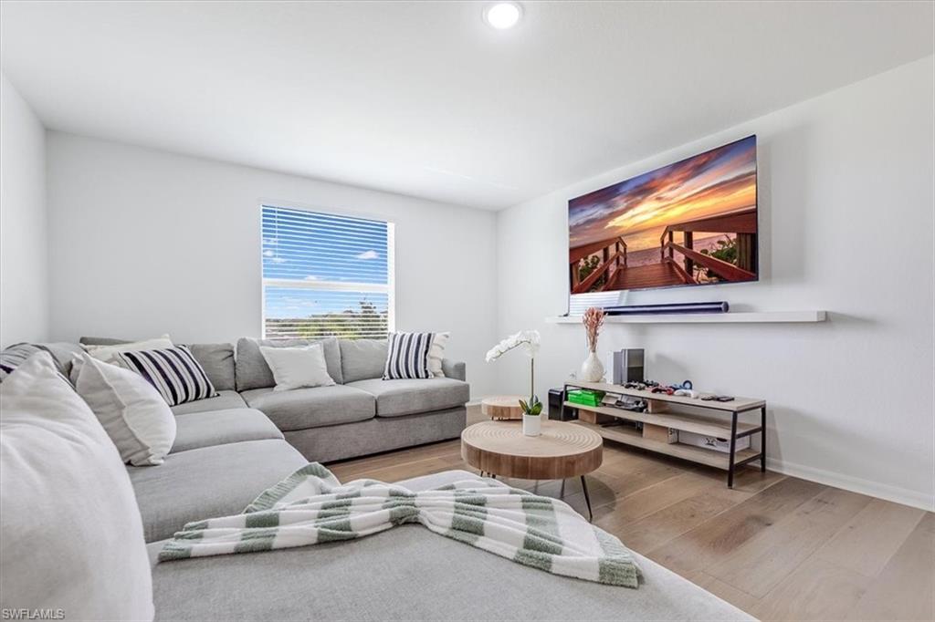 Luxury meets everyday comfort in this UPGRADED Orange Blossom Ranch home! Step inside this stunning 5-bedroom PLUS bonus room, 3-bath, 3-car tandem garage home offering 3,231 square feet of beautifully upgraded living space — far beyond builder-grade. Every inch has been thoughtfully designed for both elegance and functionality. The first floor features 24x24 porcelain tile set on the diagonal, creating a sleek, high-end feel that flows seamlessly throughout the main living areas. Upstairs, you’ll find genuine Anderson Tuftex hardwood floors—no carpet anywhere—for a refined and modern look. The gourmet kitchen stands out with quartz countertops, an added built-in wall oven, stylish tile backsplash, and stainless steel appliances. Perfect for those who love to cook and entertain! The primary bathroom feels like a private spa, showcasing a standalone soaking tub, frameless glass shower, and 12x24 porcelain tile for a contemporary, luxurious touch. Additional highlights include crown moulding, an ADT security system with motion and open/close sensors, and a coveted corner lot surrounded by a lush Clusia hedge for ultimate privacy. Located in the sought-after Orange Blossom Ranch community, residents enjoy resort-style amenities—two pools, a fitness center, clubhouse, tennis, basketball, playground, spa, and even a fishing pier—all with LOW HOA fees. Conveniently close to top-rated schools, Big Corkscrew Island Regional Park, and the new Publix shopping center. This home truly stands out from the rest—showcasing premium finishes, thoughtful upgrades, and the quality you won’t find in standard builder models.