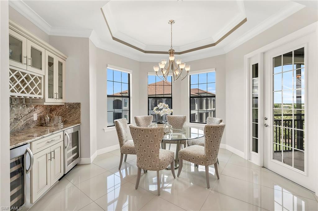 Welcome to Cielo at The Colony, where elegance and comfort blend seamlessly with resort-style living. This 3,000 square-foot residence is thoughtfully designed with a split floor plan, offering privacy and connection in all the right places. The heart of the home is an open-concept living and dining space, enhanced by a chef-inspired kitchen and a stylish bar complete with wine and beverage coolers, ideal for entertaining with ease. Walls of sliding glass invite natural light inside and lead to the expansive wraparound lanai, protected by Storm Smart Kevlar screens, where golf course breezes and serene views create the ideal backdrop for daily living. Three spacious bedrooms, each with its en-suite bath, provide luxurious comfort for family and guests, while the den, with its private lanai, offers a quiet retreat for work or relaxation. A private elevator lobby welcomes you home with exclusivity and convenience. Just a short distance away, enjoy the community pool and hot tub, complete with an outdoor kitchen for casual gatherings under the sun. Beyond your doorstep, The Colony’s renowned amenities await such as tennis, pickleball, bocce, attended fitness, kayak parks, sailing and a private beach pavilion. Residents also enjoy exclusive access to The Bay Club, offering exceptional dining on Estero Bay. This Cielo residence offers not just a home, but a lifestyle where every detail is designed for comfort, convenience and coastal sophistication.