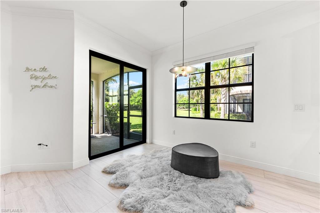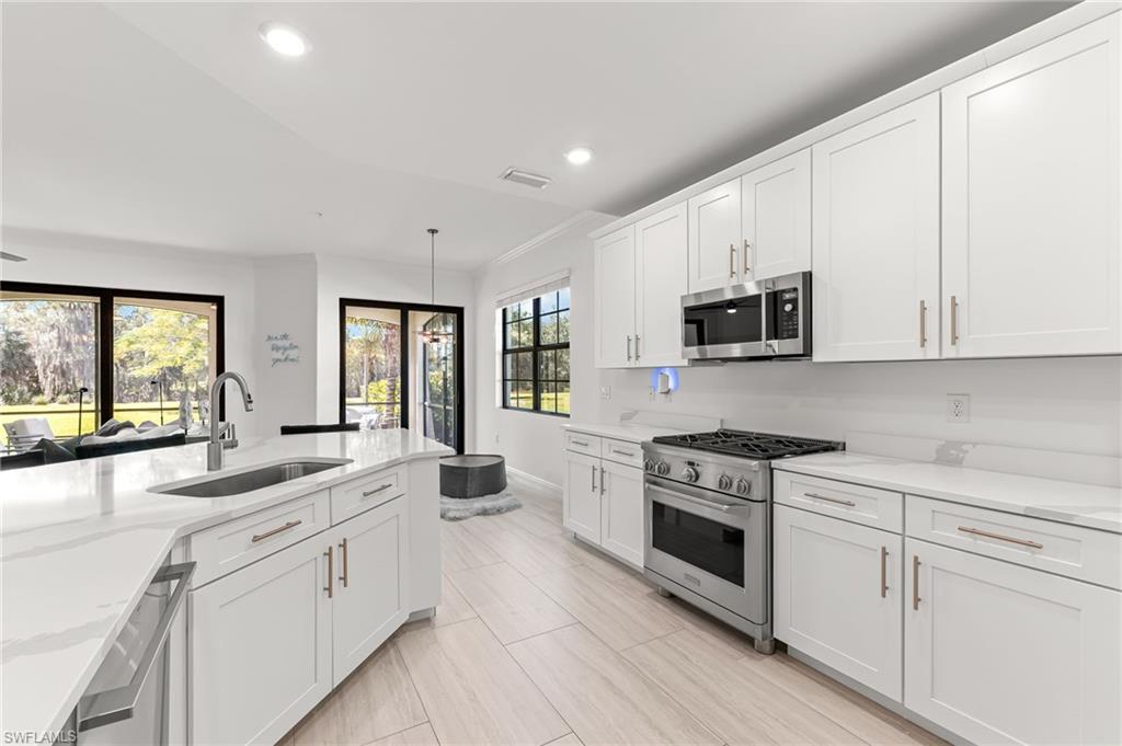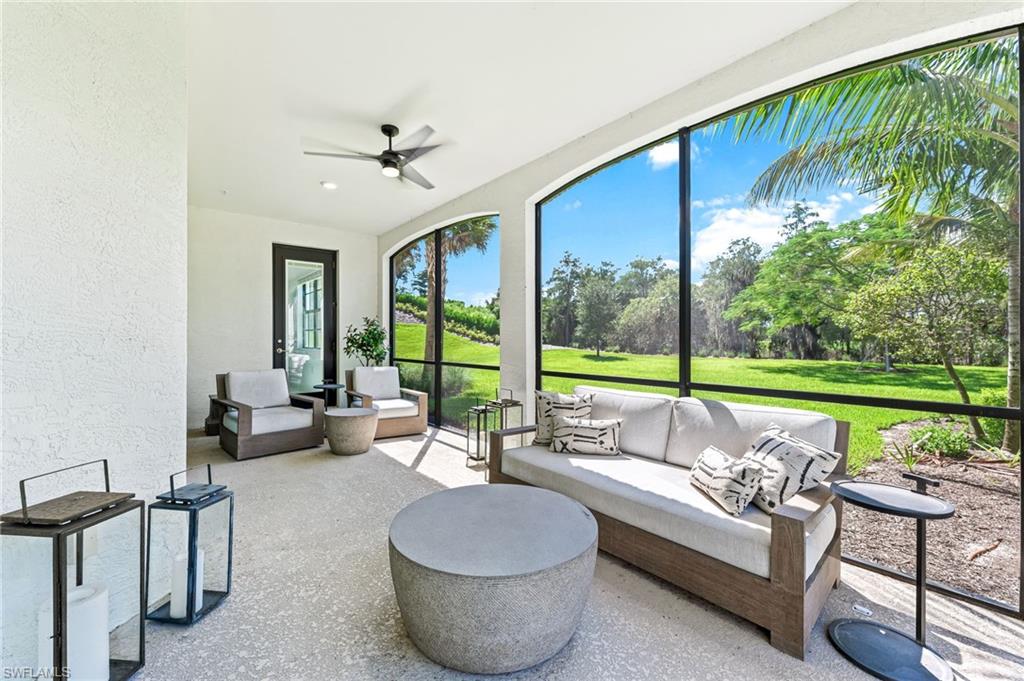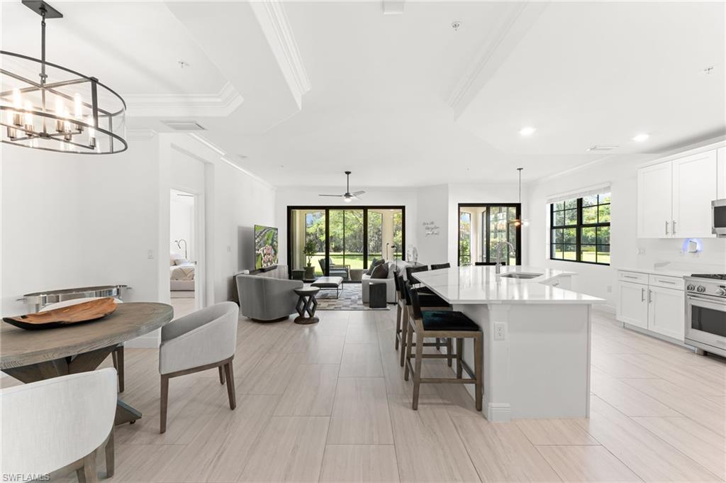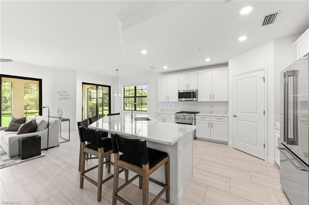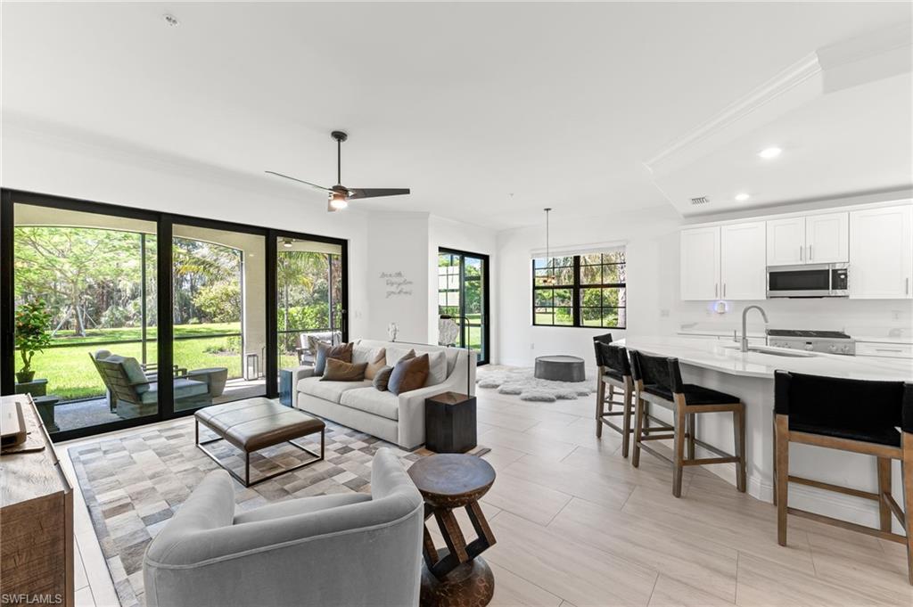 Welcome to an exquisite modern Coach Home in the heart of Talis Park, one of Naples’ most exclusive golf and lifestyle communities. This first-floor walk-in residence is offered fully turnkey and professionally curated with Restoration Hardware furnishings—artisan-crafted, hand-finished, and designed exclusively for this home. Every detail has been carefully selected by top interior consultants, creating a one-of-a-kind living experience where no two pieces are alike. The open floor plan spans 1,710 square feet, featuring three spacious bedrooms, two full baths, and a two-car attached garage. Soaring 9’ ceilings, impact glass windows, and upgraded tile flooring create light-filled, inviting spaces. The kitchen is appointed with quartz countertops and shaker-style cabinetry, blending modern elegance with function. Step into the open-concept living and dining area, or retreat to your private lanai overlooking a lush green backyard—a serene space perfect for morning coffee or evening gatherings. Living in Talis Park means access to world-class amenities. The centerpiece, the Vyne House clubhouse, offers elegant and casual dining, the Core Fitness Center, Esprit Spa, Fiona’s Market Café, and vibrant community events. For more relaxed entertainment, Casa Cortese provides a full-service sports pub with billiards, darts, ping pong, shuffleboard, and a state-of-the-art TrackMan golf simulator. Golf enthusiasts will appreciate the acclaimed 18-hole Greg Norman & Pete Dye championship course, ranked among Florida’s Top 20 by Golf Digest. Beyond golf, residents enjoy a sports complex with tennis, pickleball, bocce, dog parks, scenic walking paths, a resort-style pool, lap pool, kids’ playground, and even a Beach Runner shuttle to Vanderbilt Beach, complete with towels, chairs, and refreshments. Personal golf cart privileges allow effortless movement throughout the community. Talis Park is ideally located just 20 minutes from RSW Airport and minutes from Naples’ finest white sand beaches, luxury shopping, fine dining, and cultural attractions. Golf membership is optional, adding flexibility to suit your lifestyle. This rare opportunity combines turnkey designer luxury, a private and peaceful residence, and the unmatched amenities of one of Southwest Florida’s most desirable communities. Experience how Talis Park redefines the Naples lifestyle at 16348 Viansa Way, Unit 102. Experience the lifestyle in person Call to set up a private tour.