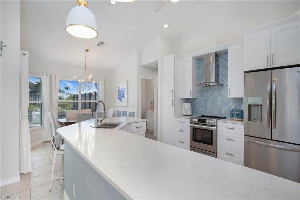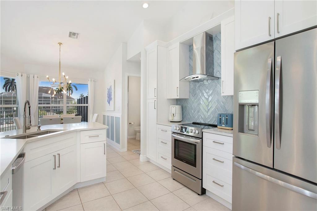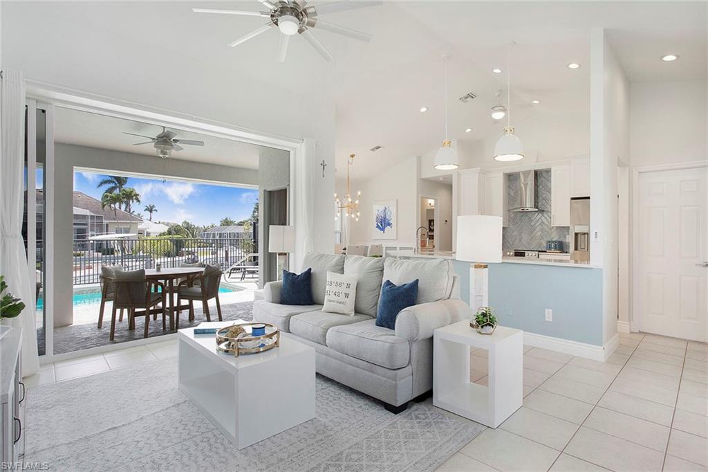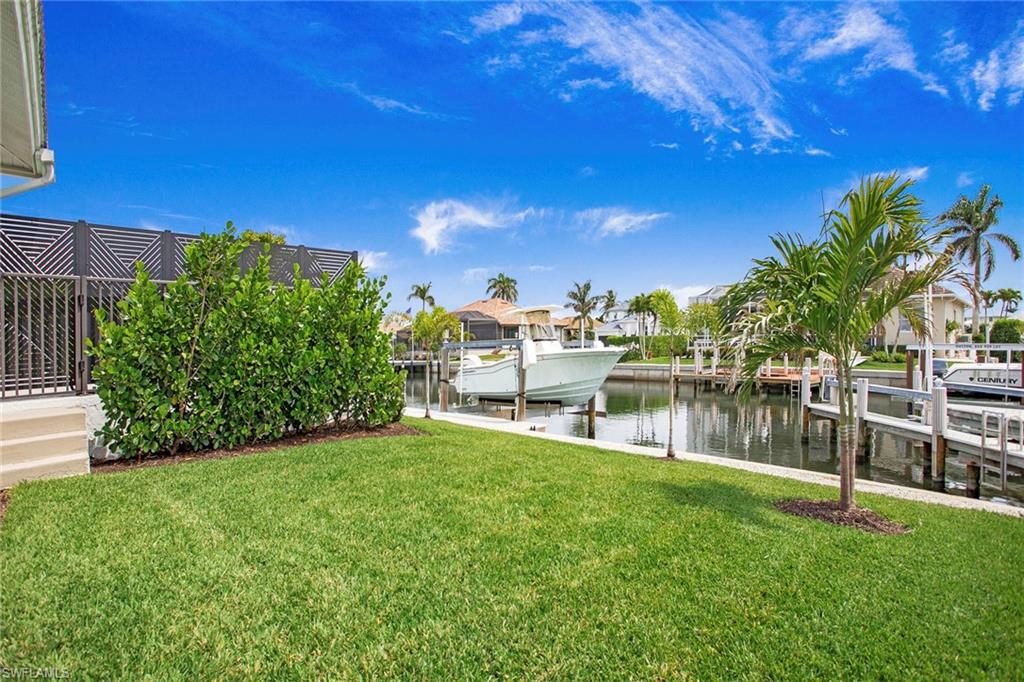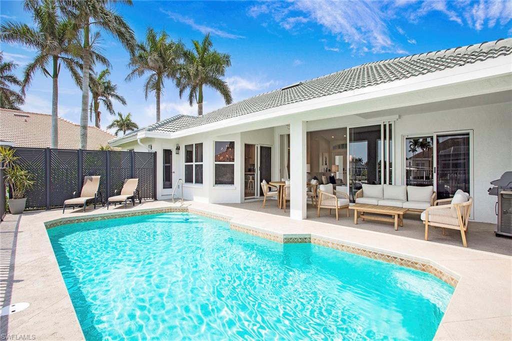 Discover your ultimate winter retreat at this exquisite waterfront residence on Marco Island, designed for those seeking a serene escape in sunny Florida. This luxurious home boasts three spacious bedrooms and two full baths, featuring an open, split floor plan that maximizes space and privacy. The heart of the home is the stunning remodeled kitchen, adorned with elegant white shaker cabinets, gleaming quartz countertops and top-of-the-line stainless steel appliances. The wrap-around island with seating is ideal for casual dining and entertaining. The living area impresses with high-volume ceilings and new hurricane impact sliders, allowing natural light to flood the space. The expansive primary suite offers impact sliders that open to the lanai, a large walk-in closet, dual sinks, a soaking tub and a walk-in shower. The home includes numerous updates such as new lighting, electric and plumbing fixtures, and new landscaping (2024). The HVAC system with Wi-Fi thermostat was updated in 2021, the water heater in 2022, and the interior and exterior paint was completed in 2022. The two-car garage features epoxy flooring and a built-in electric vehicle outlet. Go outside to your private lanai and soak up the Florida sunshine by the large in-ground pool. Boating enthusiasts will appreciate the new 10,000-pound boat lift and quick access to the Gulf. The privacy fence ensures your outdoor oasis remains serene and secluded. Ideally located, this home offers easy access to Resident's Beach, the new Publix, YMCA, and a variety of restaurants and shops. Whether you're looking for a relaxing retreat or an active lifestyle, this Marco Island gem has it all. Come relax and enjoy life in sunny Florida!