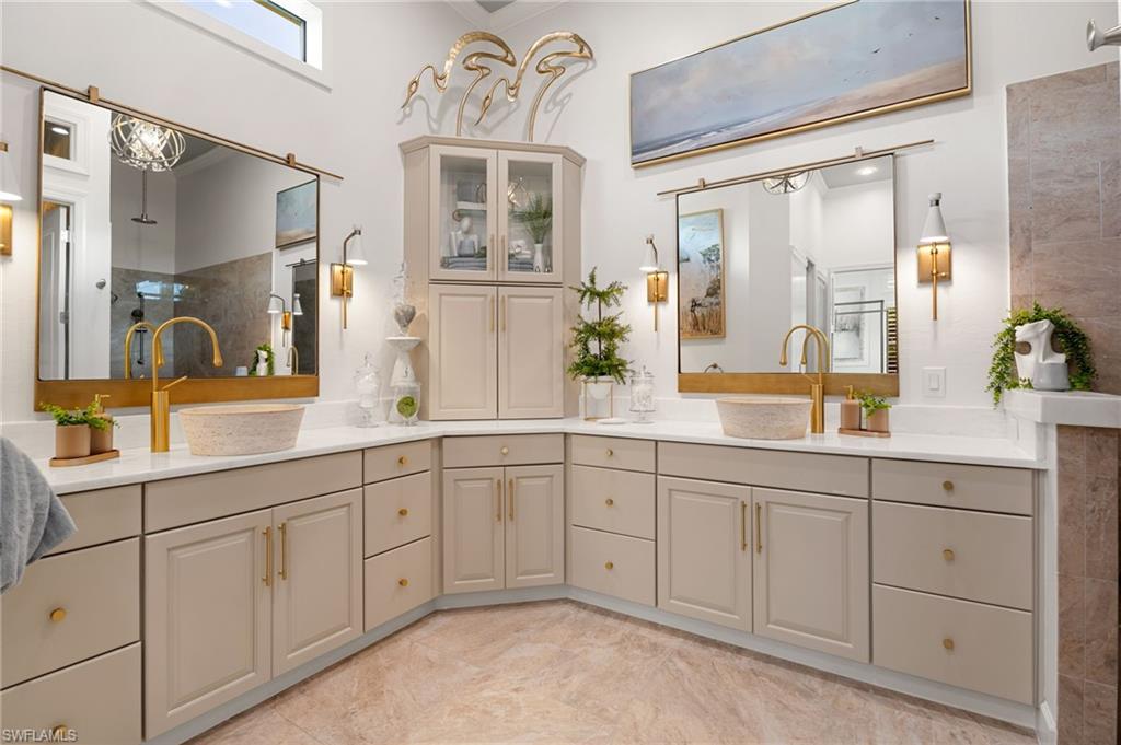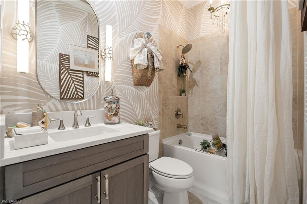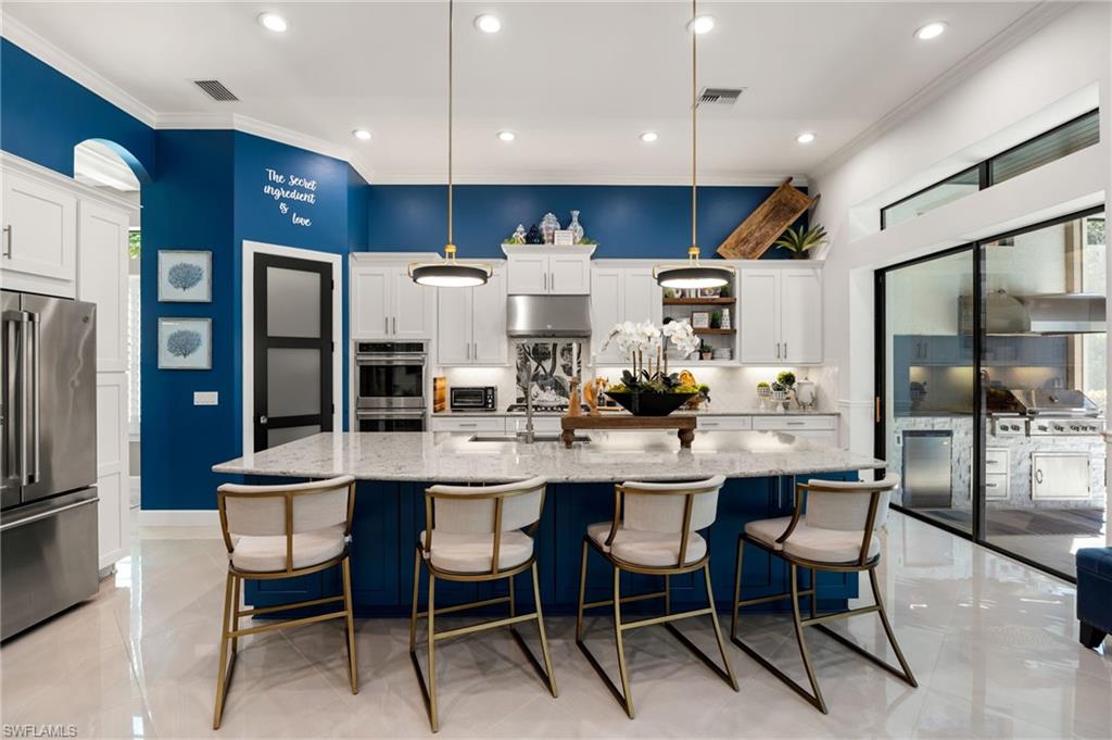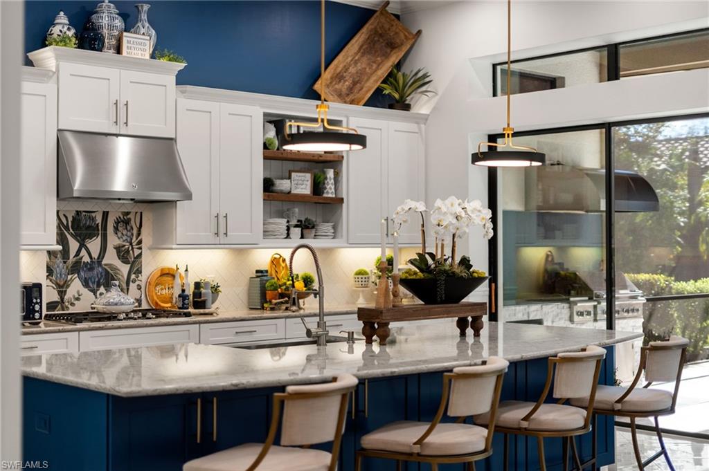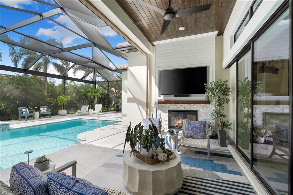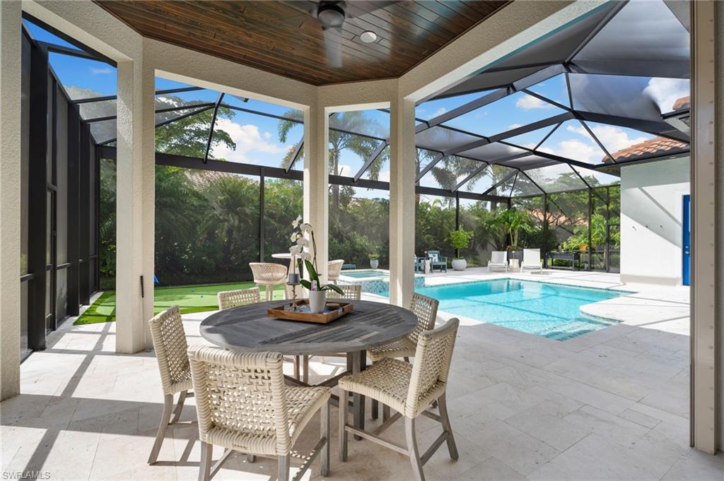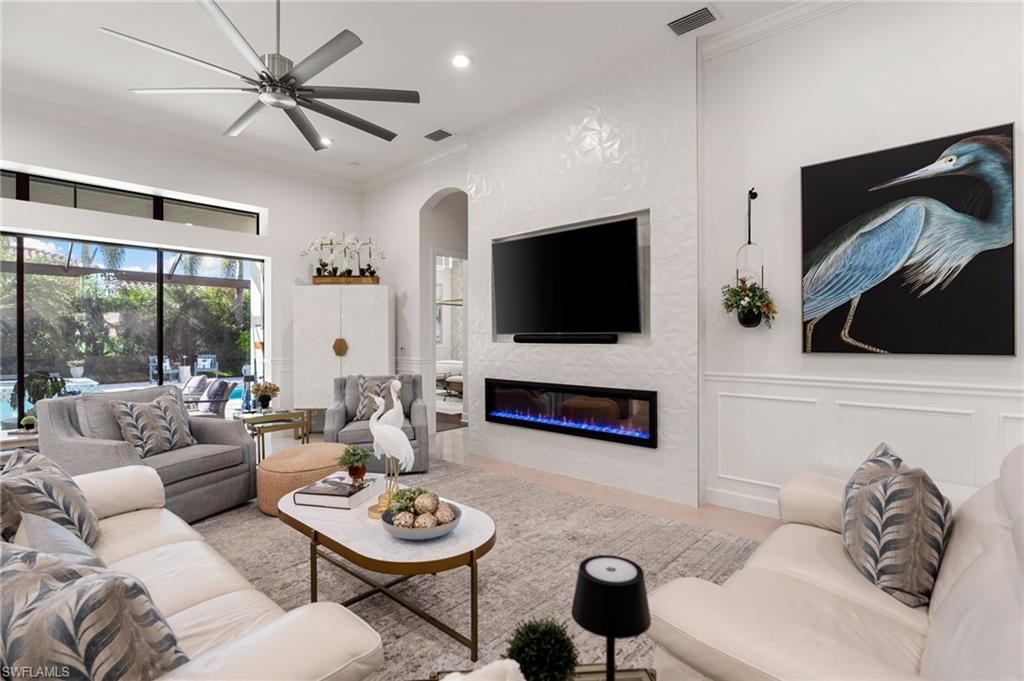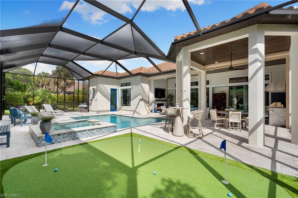 Discover unparalleled luxury and sophistication at 8655 Amour, every inch of this Francesco floor plan is completely reimagined, professionally designed, and is offered fully furnished. Nestled in the prestigious Esplanade Golf & Country Club of Naples, this home sits on an oversized lot and includes a FULL GOLF MEMBERSHIP. After walking in through the custom double doors and one-of-a-kind chandelier reveals all the beauty within 8655 Amour - true indoor outdoor living and meticulous renovations that usher in timeless elegance. The expansive living space flows seamlessly to the outside through large pocketing sliders opening to an extraordinary outdoor oasis, featuring brand new Ivory travertine pool deck surrounding a 282-square-foot gas-heated pool and waterfall spa. Or work on your short game with the professional putting green ON the lanai. All enclosed within an huge 2,000 sq ft pool cage equipped with UV Blocking, 20/20 bug screens and extra-large picture windows, adding to the privacy and tranquillity that is Esplanade. Entertain effortlessly anywhere - with two cozy spaces complete with built-in electric fireplaces with custom media cabinets. Inside, the home shines with premium features everywhere you look - from the designer light fixtures to the plantation shutters and even the hardware on the doors - 8655 Amour is not your average community home. Each room holds its own unique motif - custom wallpaper, tile work, handpicked furniture, and the endless design elements will astonish you. Even the guest bedrooms provide peace and tranquillity with private en-suite baths and their own warm retreat. Mechanically, the home is clean as a whistle - upgraded HVAC system incorporating UV light and ozone purification; a 22kW natural natural gas generator; full hurricane protection; a whole-home Kinetico reverse osmosis/mineralizing system - the list never ends! Your 3-car-garage includes elevated storage, EV charging, and full workbench/cabinets. Even the land it sits on is unique as the 0.33 acres offers a large side yard (taken care of by the HOA, of course) for all your pet and children needs. Esplanade offers the ultimate Florida lifestyle, granting access to world-class amenities including an 18-hole private golf course, resort-style pool with cabanas and Bahama Bar, tennis, pickleball, bocce, Koquina Day Spa, fitness center, dog parks, 14 miles of biking and walking trails, and a 15,000-square-foot clubhouse with fine dining, bar, wine tasting room, wine lockers, and a Starbucks-style café—all covered under low quarterly dues with no additional fees. Don't miss this rare opportunity to own a slice of paradise; schedule your private showing today!