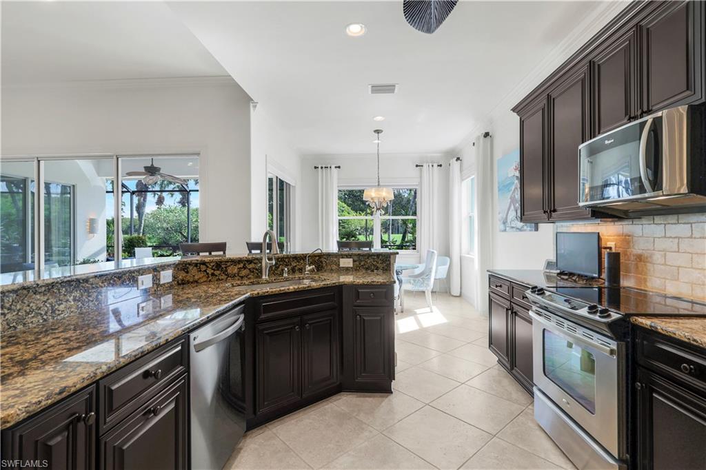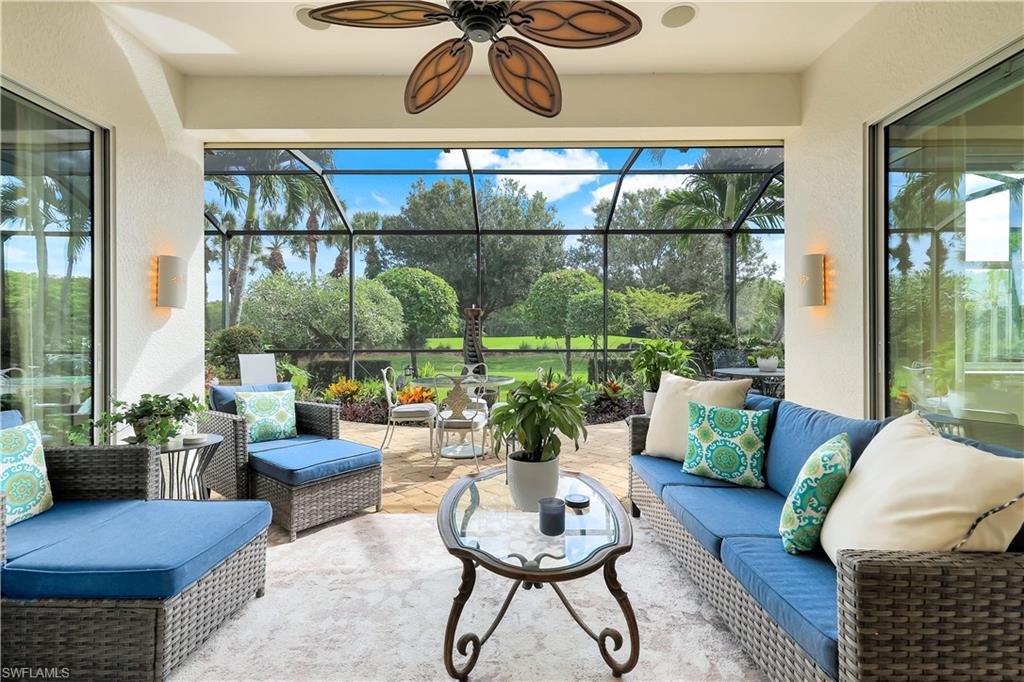 THE VIEWS from this gem in Naples’ Quarry is pure wow! Picture yourself in a stunning two-bed, two-bath with a den that’s basically a flex space for whatever you crave. Every inch screams luxury: freshly painted inside and out, sleek upgraded cabinets, newer appliances, gleaming floors, elegant crown molding, chic lighting, a killer sound system, an insulated garage for your toys and a Generac 20K watt automatic standby generator. The extended lanai equipped with electric storm screens so you can sip wine through any weather, gazing at jaw-dropping views of the seventh fairway and pristine preserve. Oh, and there’s room for YOUR dream pool! The Quarry's got everything for that ultimate Naples vibe with over five hundred acres of lakes for boating, jet-skiing, wakeboarding, or just chilling on a paddleboard. There's a resort-style beach club with a private sandy shore, perfect for picnics. There is tennis, pickleball, bocce ball, plus a tiki bar and indoor/outdoor restaurant with poolside service-grab a cocktail without moving. Fitness center, lap pool, walking paths through preserves, and an activities director keeps things buzzing with events. It's living in a gated resort, right in your backyard. Various optional memberships are offered at the privately owned Quarry Golf Club. Designed by world-renowned architectural team of Dr. Michael Hurdzan and Dana Fry in 2007, this Championship golf course wraps around the water with eighteen holes of pure scenic bliss. It’s not a home-it’s your VIP Naples escape!